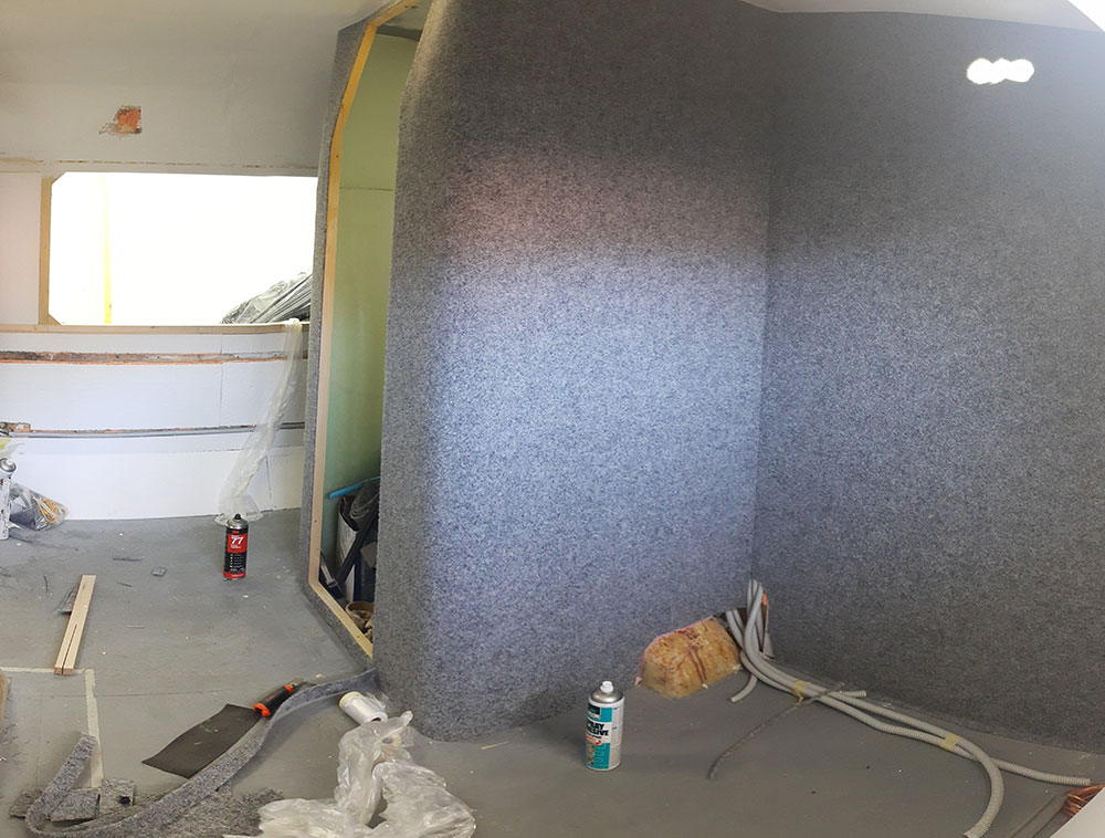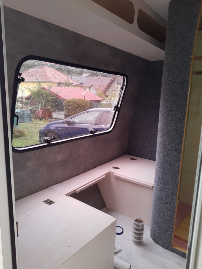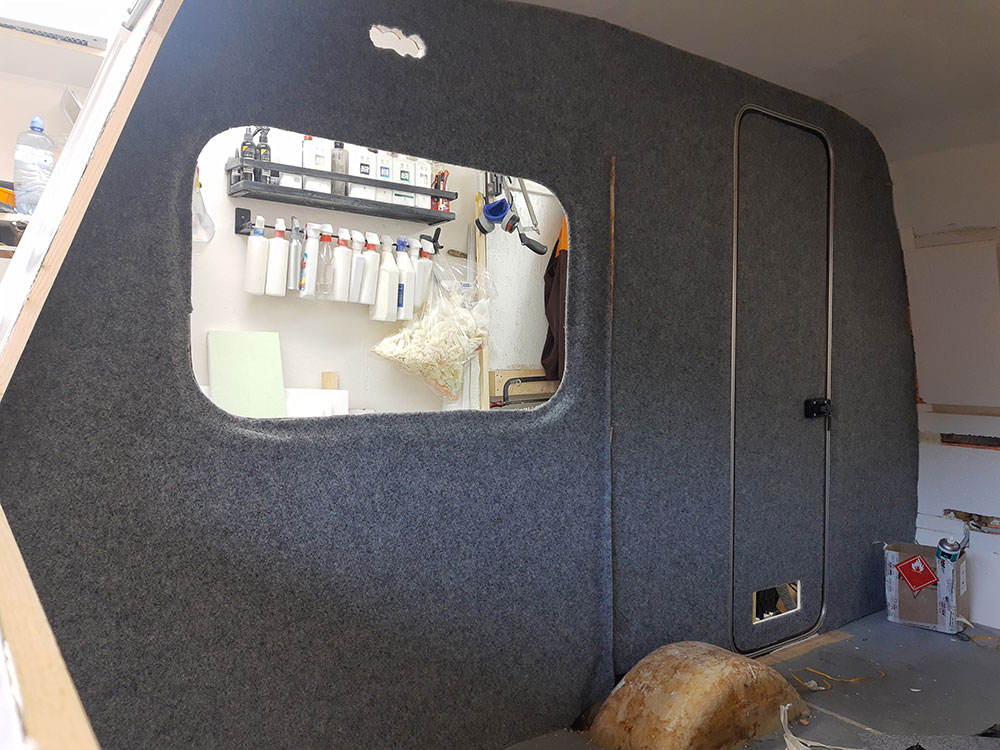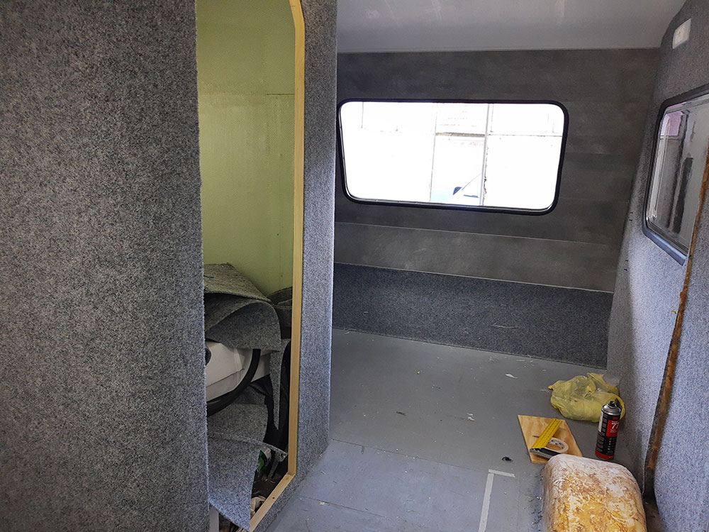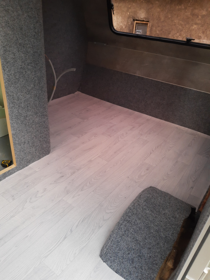Na przednią i tylną ścianę zastosowałem lekką wykładzinę PVC Vilo Motivo, której waga na m2 była porównywalna z wykładziną dywanową.