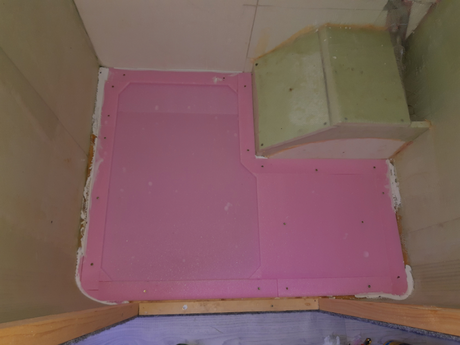 Miejscami przykleiłem wykładzinę PCV do kleju mamutowego i przykręciłem w miejscu pod uszczelki.
