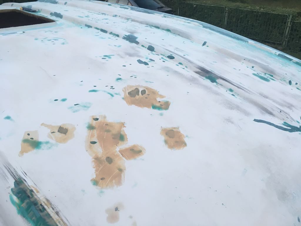 Ubytki łatam żywicą z włóknem szklanym Bolla, później szpachla uniwersalna a na to soft. Końca jeszcze nie widać ale mnie już cieszy