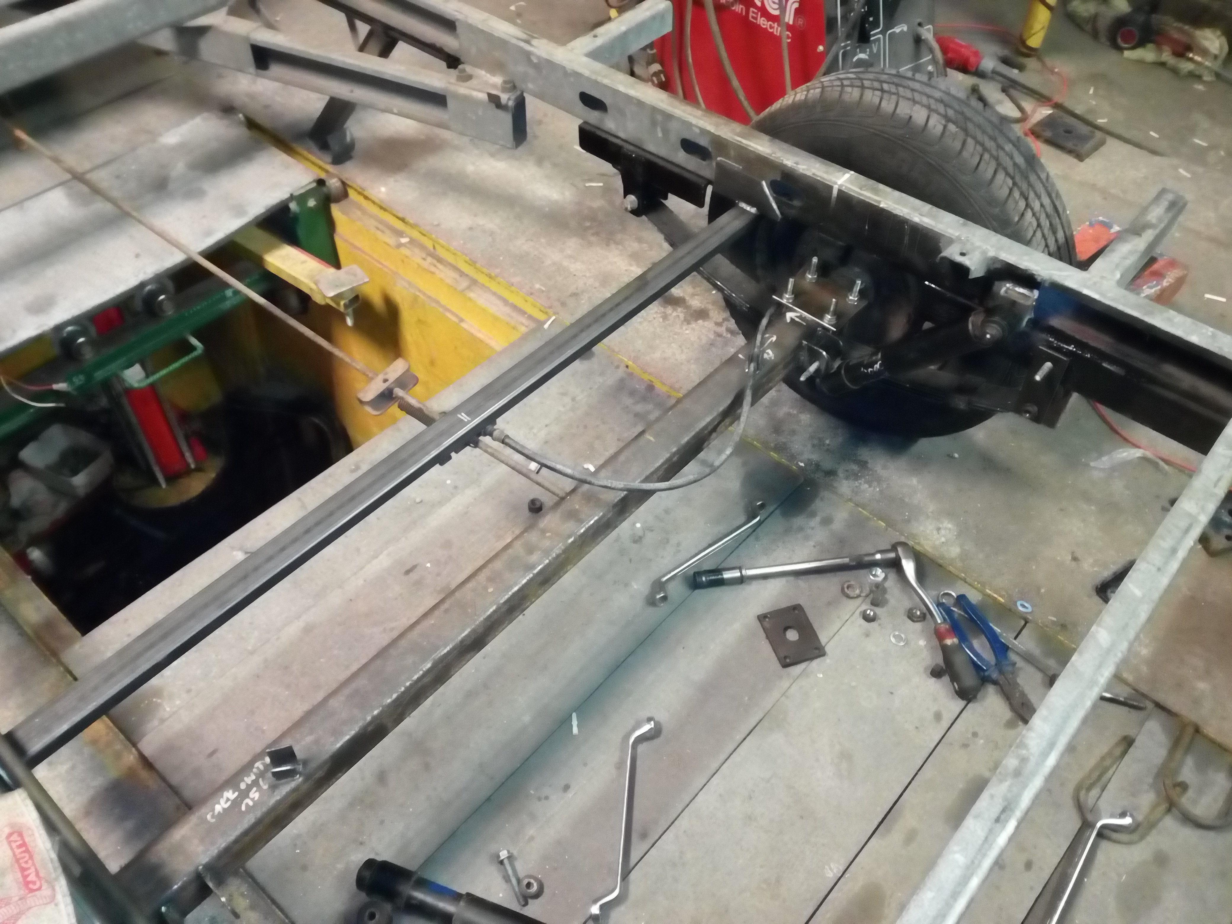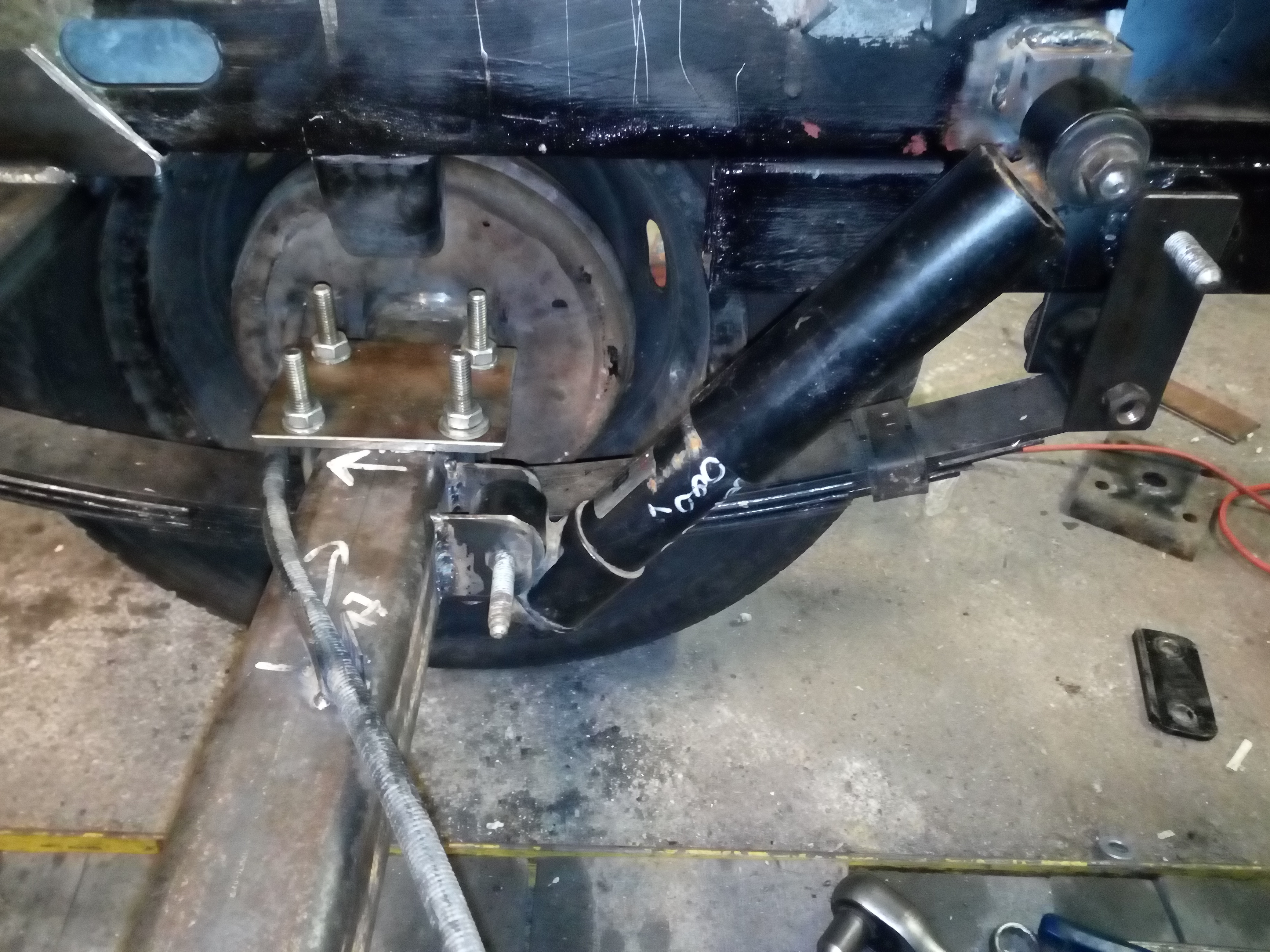No wieszaki wydłużyłem o 1 cm , zamontowałem amorek od cieniasa, zrobiłem ten dynks poprzeczkę co trzyma linki hamulcowe, nawet trzymacze linek, inne płytki górne, tamte ciut za małe były, chciałem na łatwiznę gotowe od resoru Poloneza. I teraz nurtuje mnie czy te górne płytki mocowanie resoru nie dospawać na stałe do osi tylko nie wiem właśnie jak to się będzie miało do ewentualnej regulacji osi względem dyszla....?