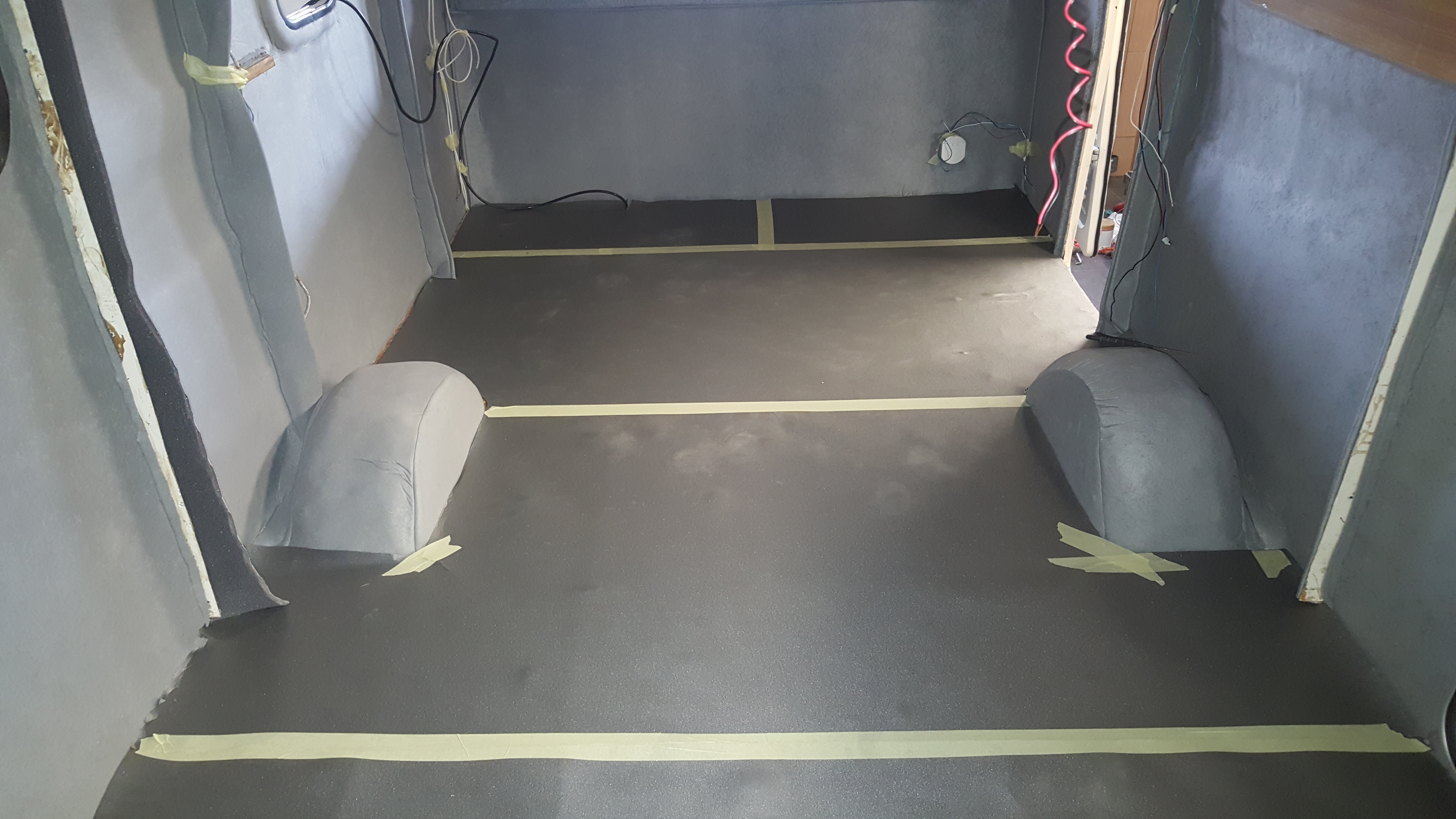 Dzis zabrałem się za montaż podłogi. Najpierw wywaliłem wszystkie narzedzia z budy, potem odkurzyłem i oczyściłem podłogę. Wymierzyłem dociąłem i przykleiłem piankę izolacyjną grubość 1.6mm. Nastepnie rozłożyłem termofolie uciąłem ja na wymiar podłączyłem krokodylki i zaizolowałem specjalna taśmą samowulkanizacyjną. Oczywiscie pomyslalem sobie ze zanim zaczne odcinać i rozkładać wykładzine to podłącze i sprawdzę jak działa ta folia, otóż działa wyśmienicie