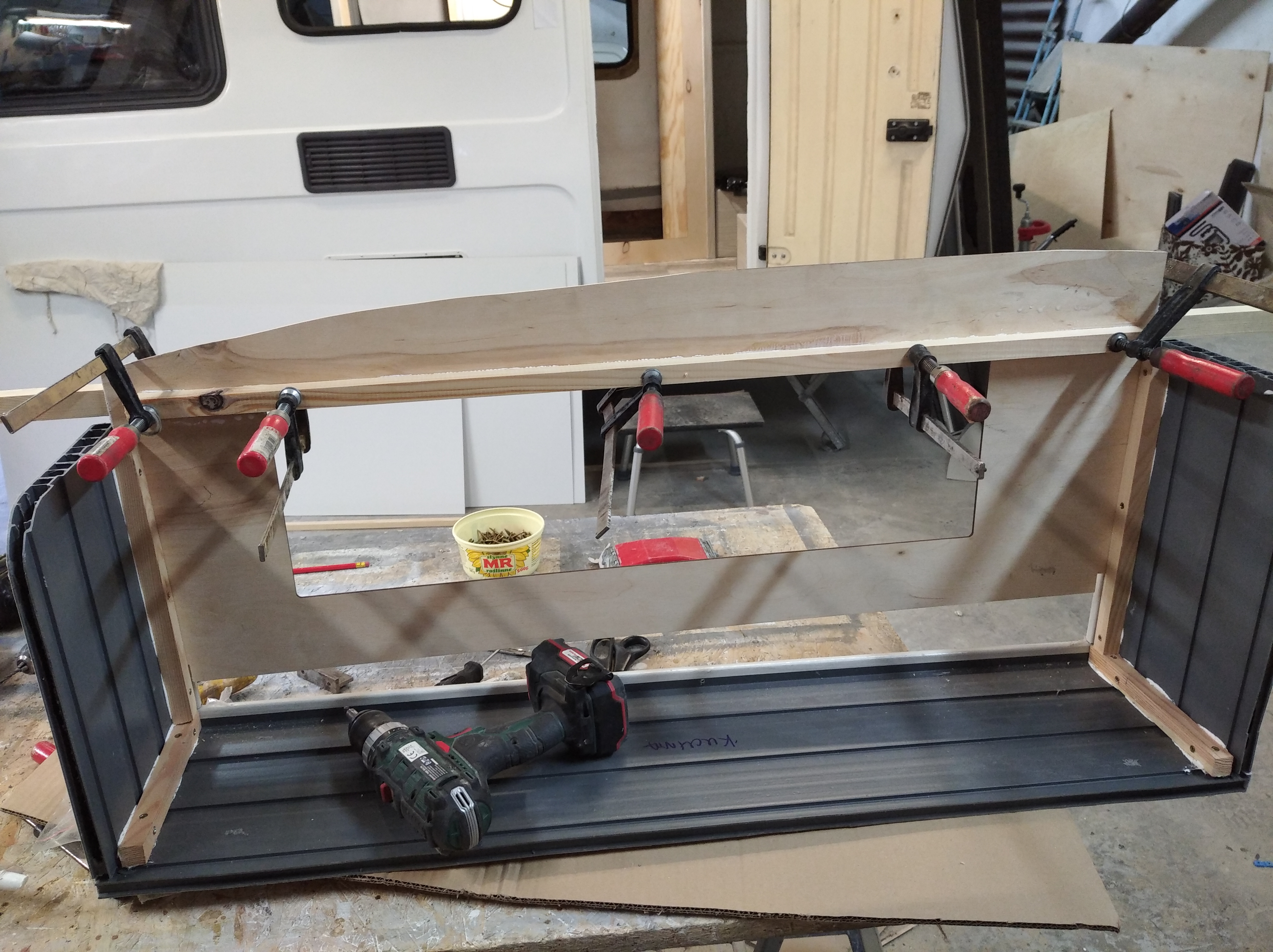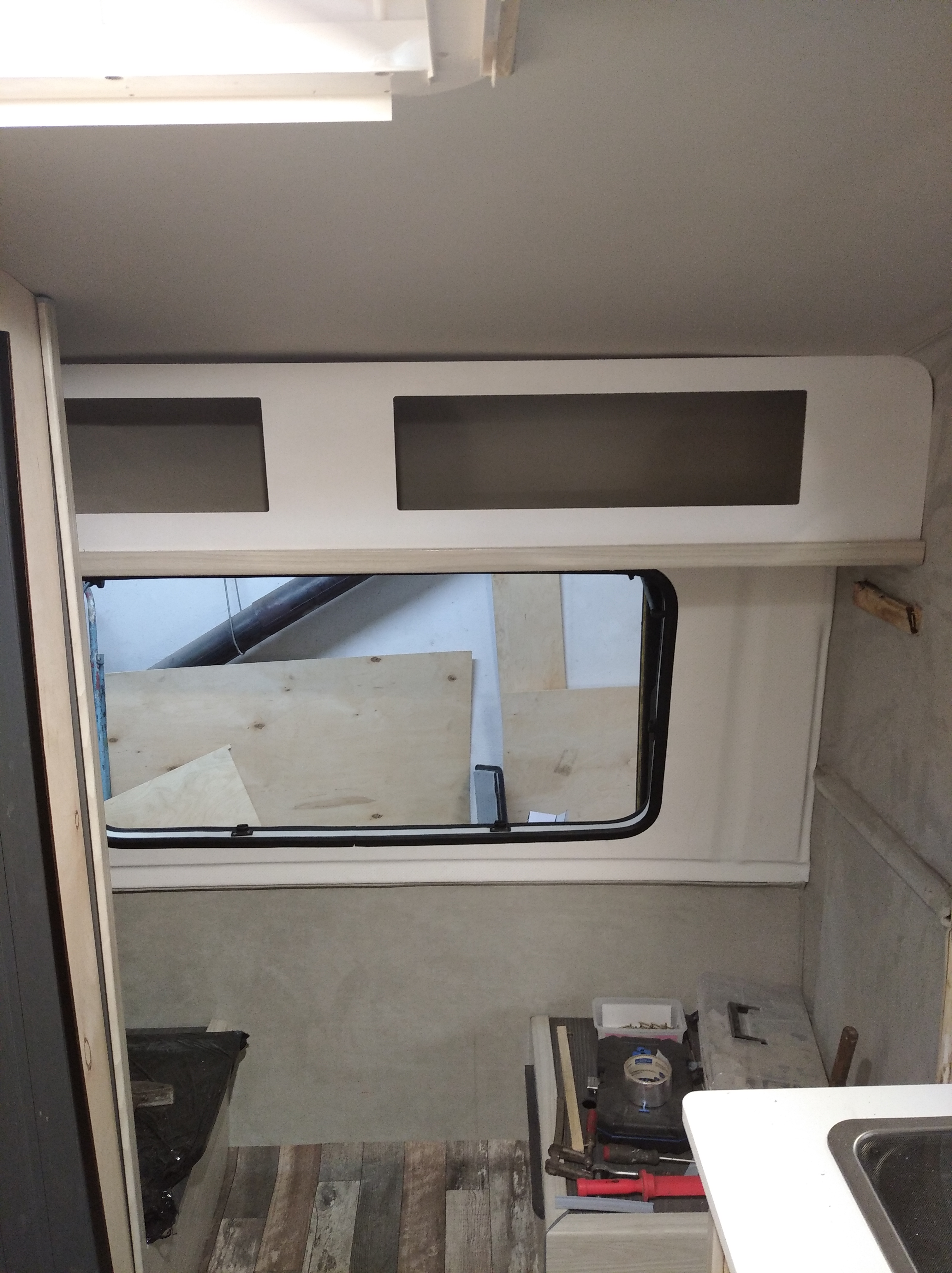 Zagwozdkę miałem z pawlaczem nad kuchnią, bo musiałem wymyślić dość specyficzne połączenie podłogi i ścianek bocznych. O ile spod był zaplanowany od początku z pcv to z bokami miałem dylemat bo łączenie kątowe parapetów jest w bardzo widocznym miejscu a zależało mi na estetyce. Rozważałem sklejkę 4 lub 12 mm i na to tapicerka ale jakoś tak...