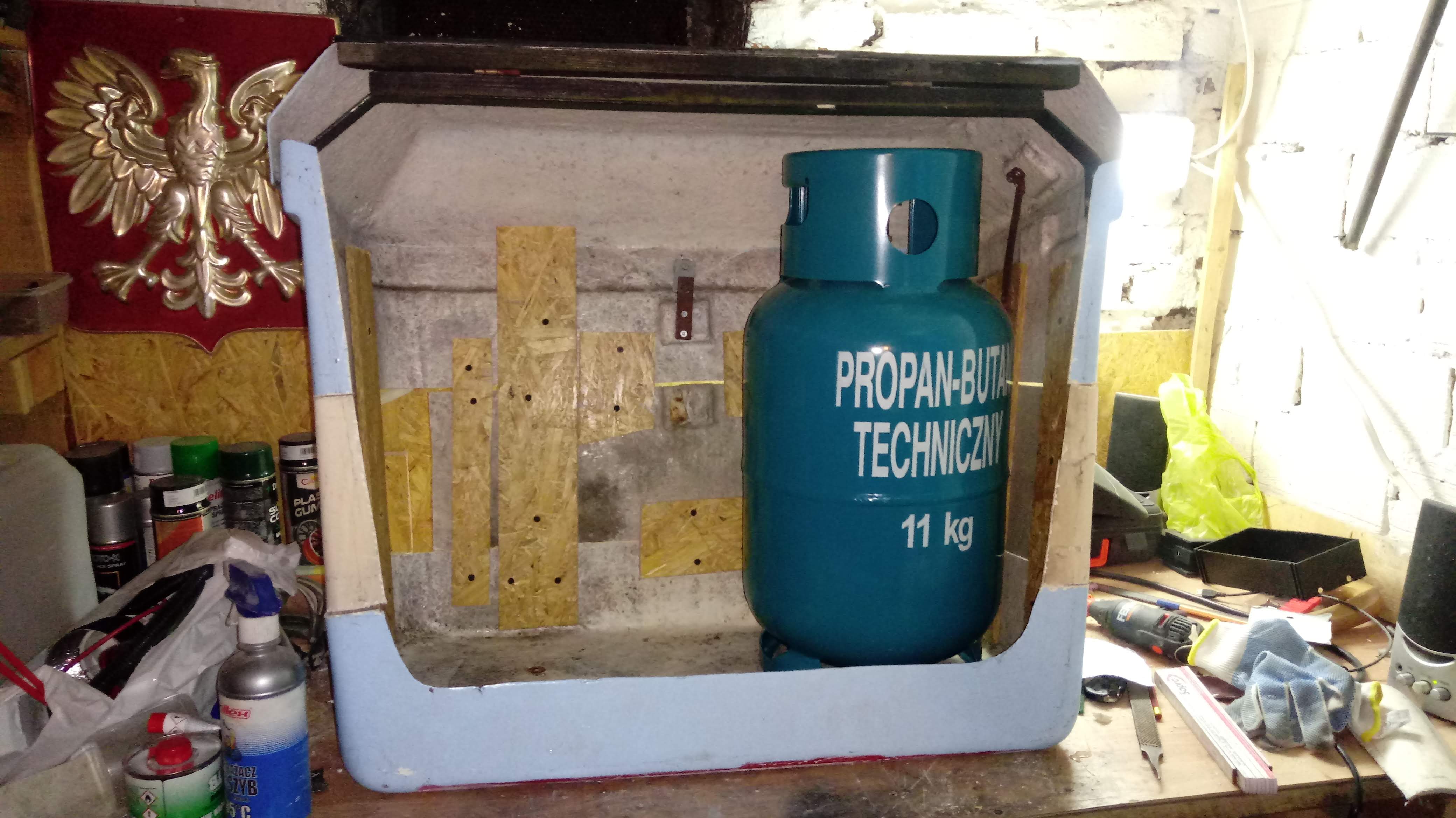 Do kufra od wieloryba nie wchodzi butla z kołnierzem. Gdyby tak było, nie przerabiałbym swojego kufra a w jaki sposób to robię, pokażę jak skończę w swoim wątku remontowym.