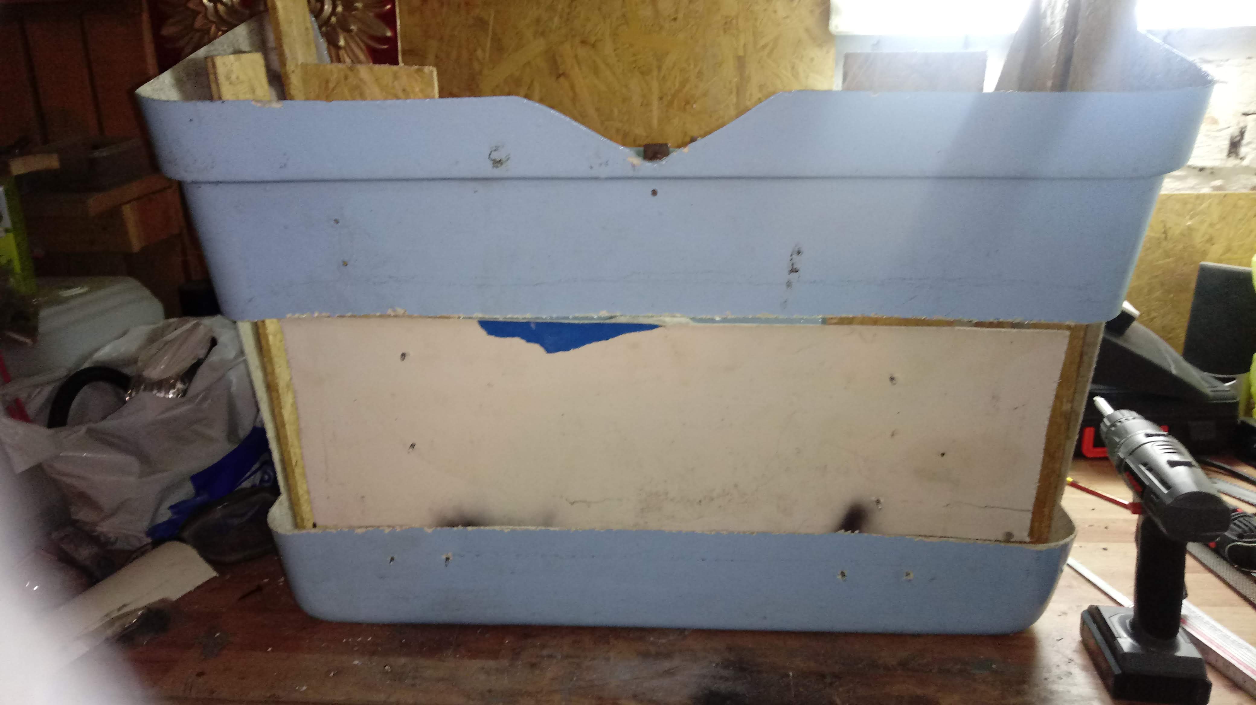 Dobra, pierwsze szpiegowskie zdjęcia przeróbki kufra. Takie wstępne pasowanie i przymiarki. Dodane 20 cm ze starego kufra.