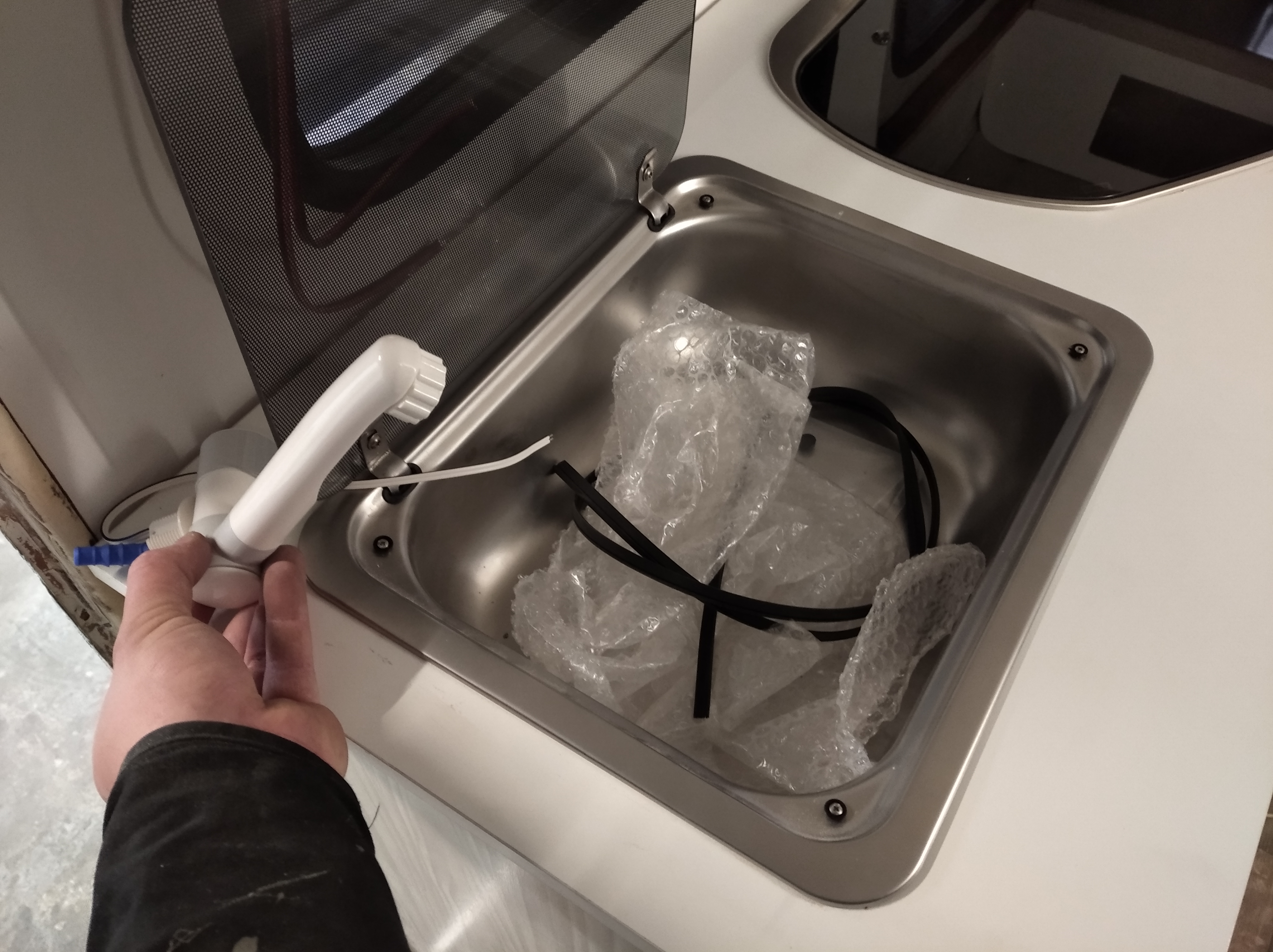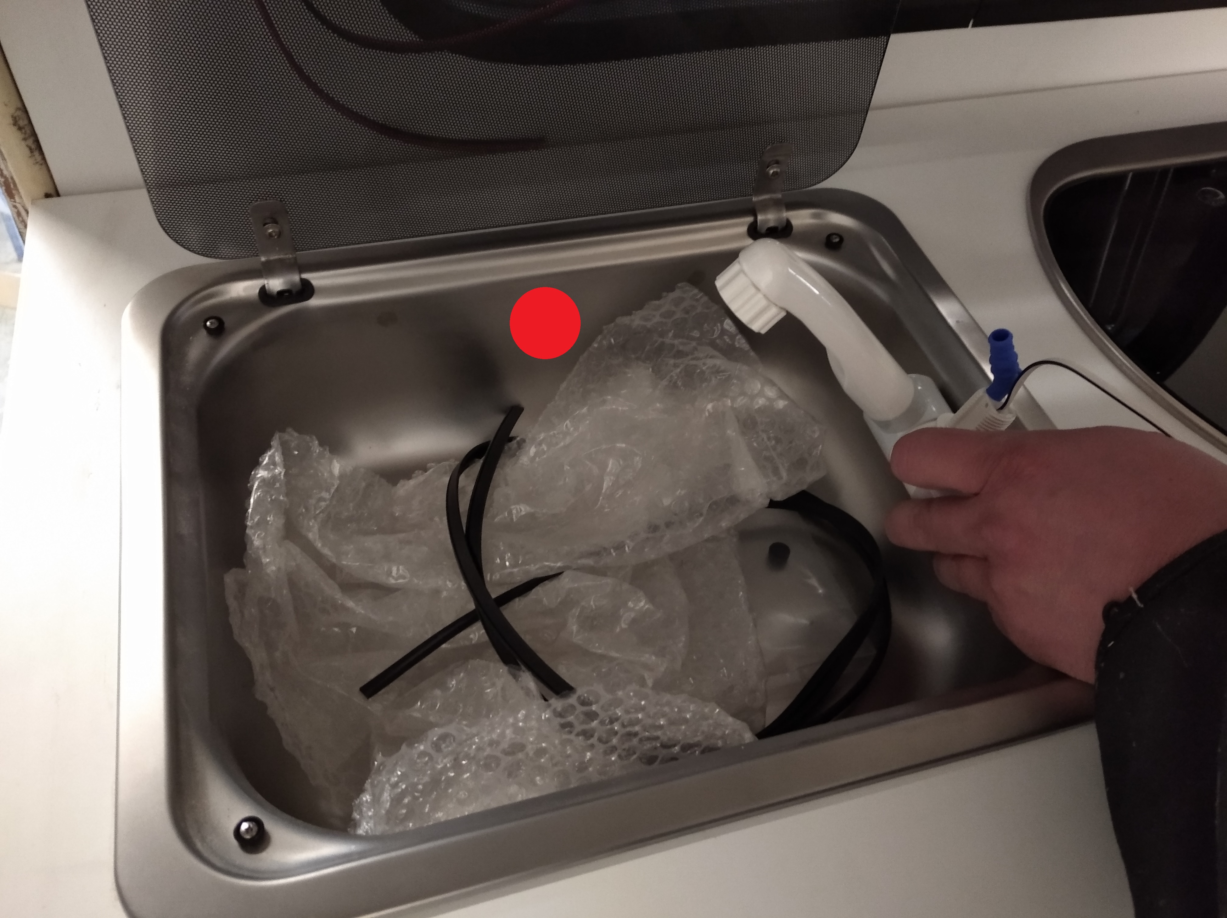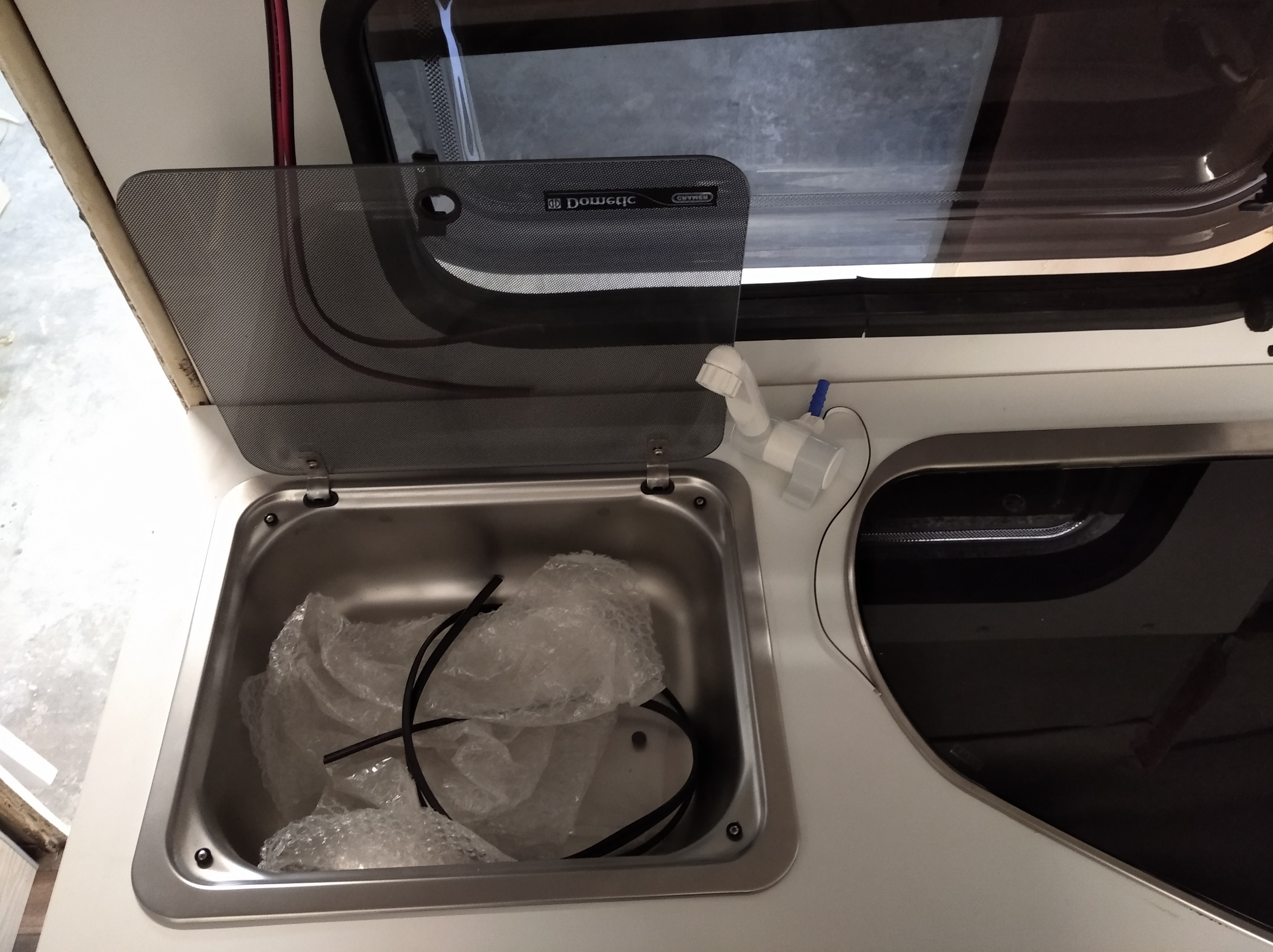 Marcin ja tez dałbym ten kran do środka zlewu, nawet sam widziałeś że mam tak oryginalnie w kamperze jak zamkniesz pokrywe to masz płaski blat. Do zrobienia dziury mam specjalne wiertło choinkowe innym nie próbuj. Reflexes ci dokladnie zaznaczyl kropka gdzie należałoby go dać, a sam sie nie włączy w czasie jazdy o to się nie martw i tak zrobimy dodatkowy wylacznik zasilania.