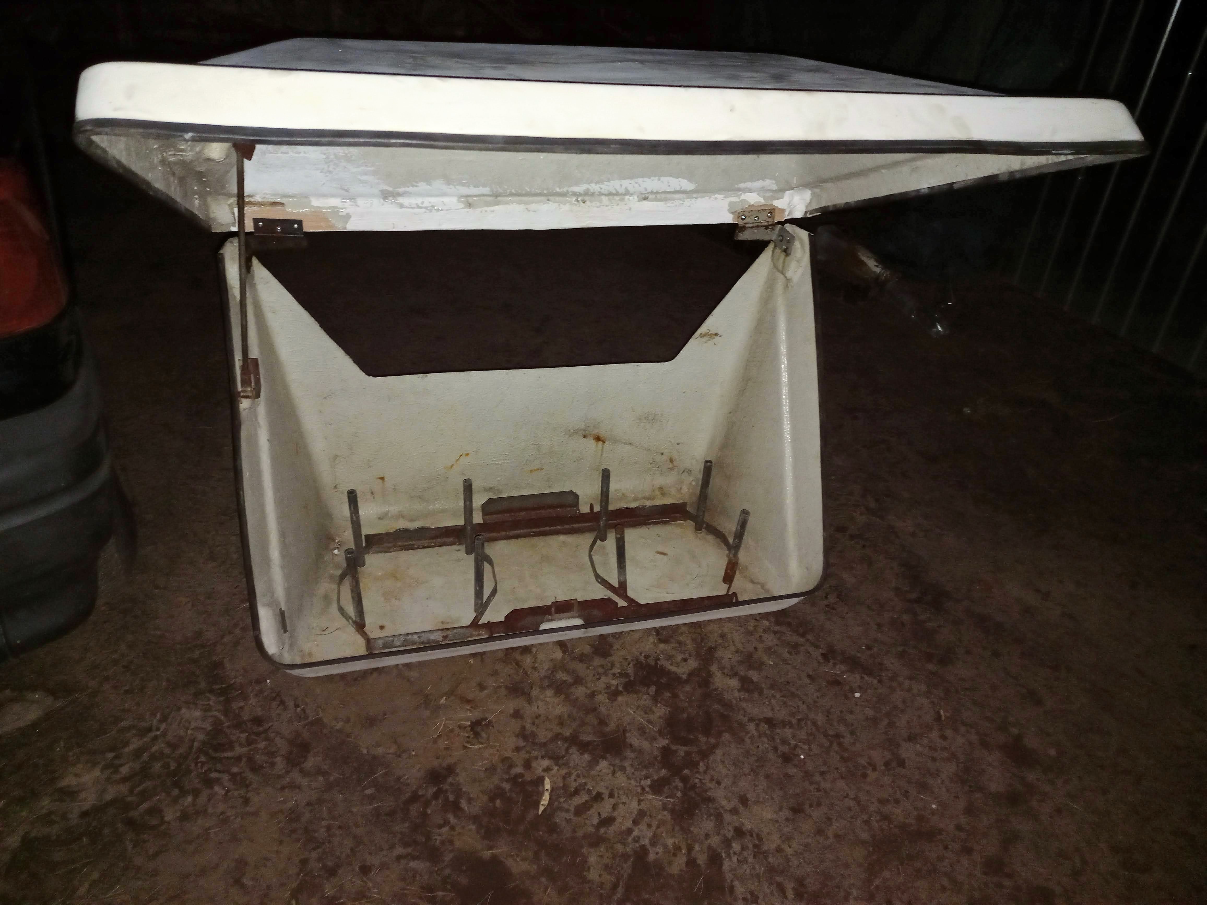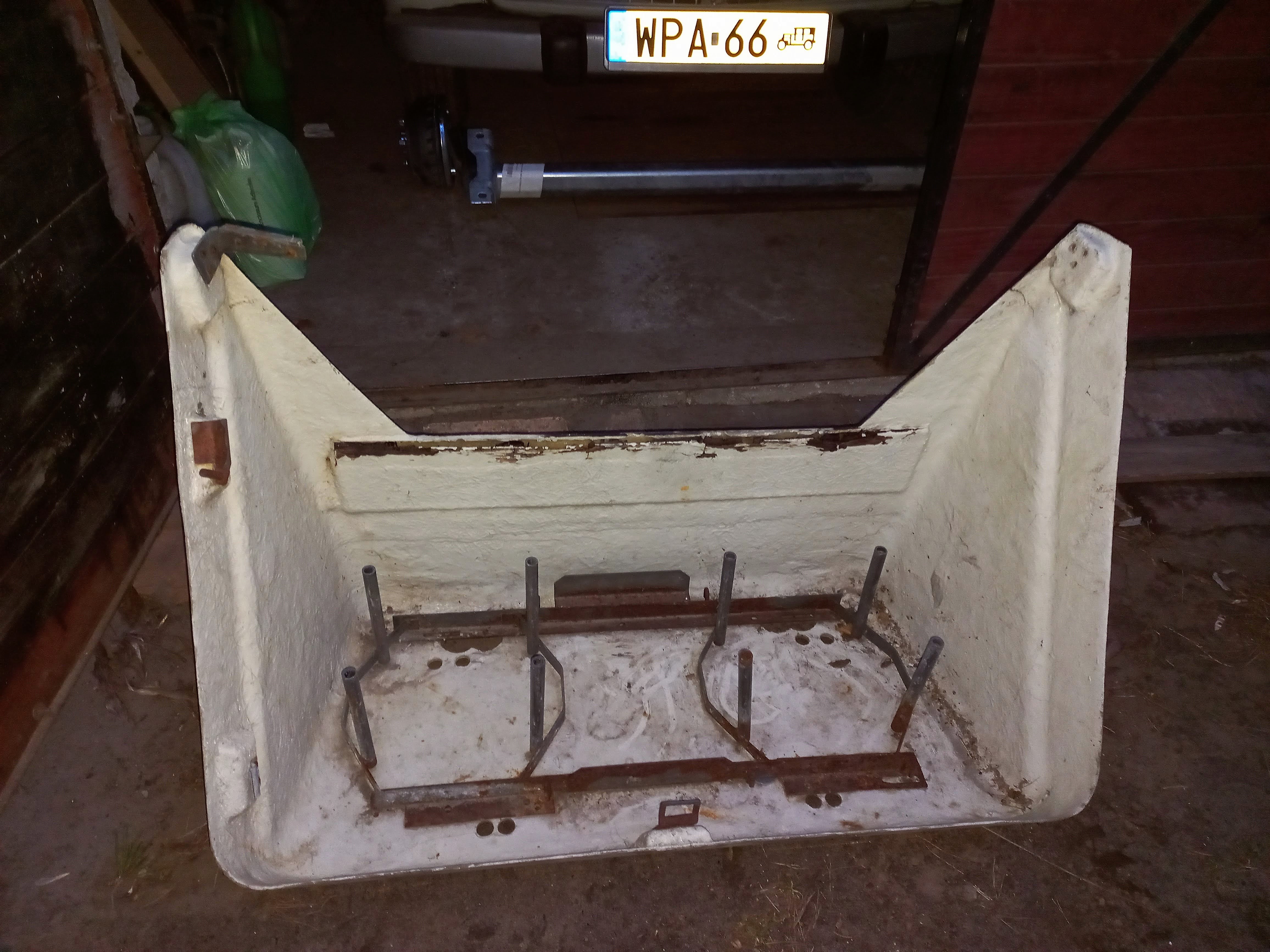 ale szczęśliwie braki jednego nie pokrywały się z brakami drugiego. pierwszy miał tylko lewy zawias to drugi miał tylko drugi. Pierwszy miał mocowanie butli a drugi pokrywę i wspornik. Tak więc z dwóch powstał jeden kompletny, który oczywiście wymaga renowacji ale jest i się zamyka. :D