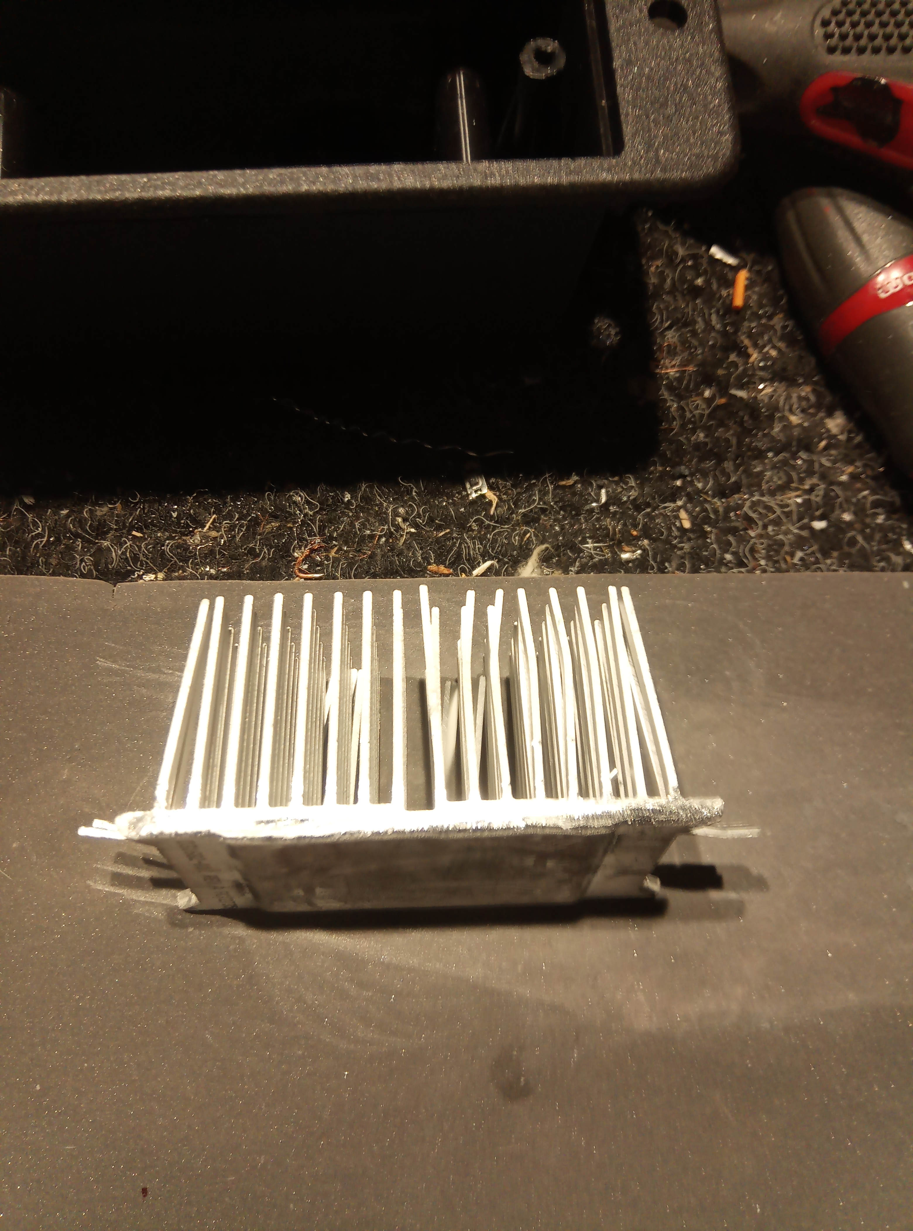 Była na 220, syn przerobił na 12v. 3 małe otworki, obyło się bez cięcia.