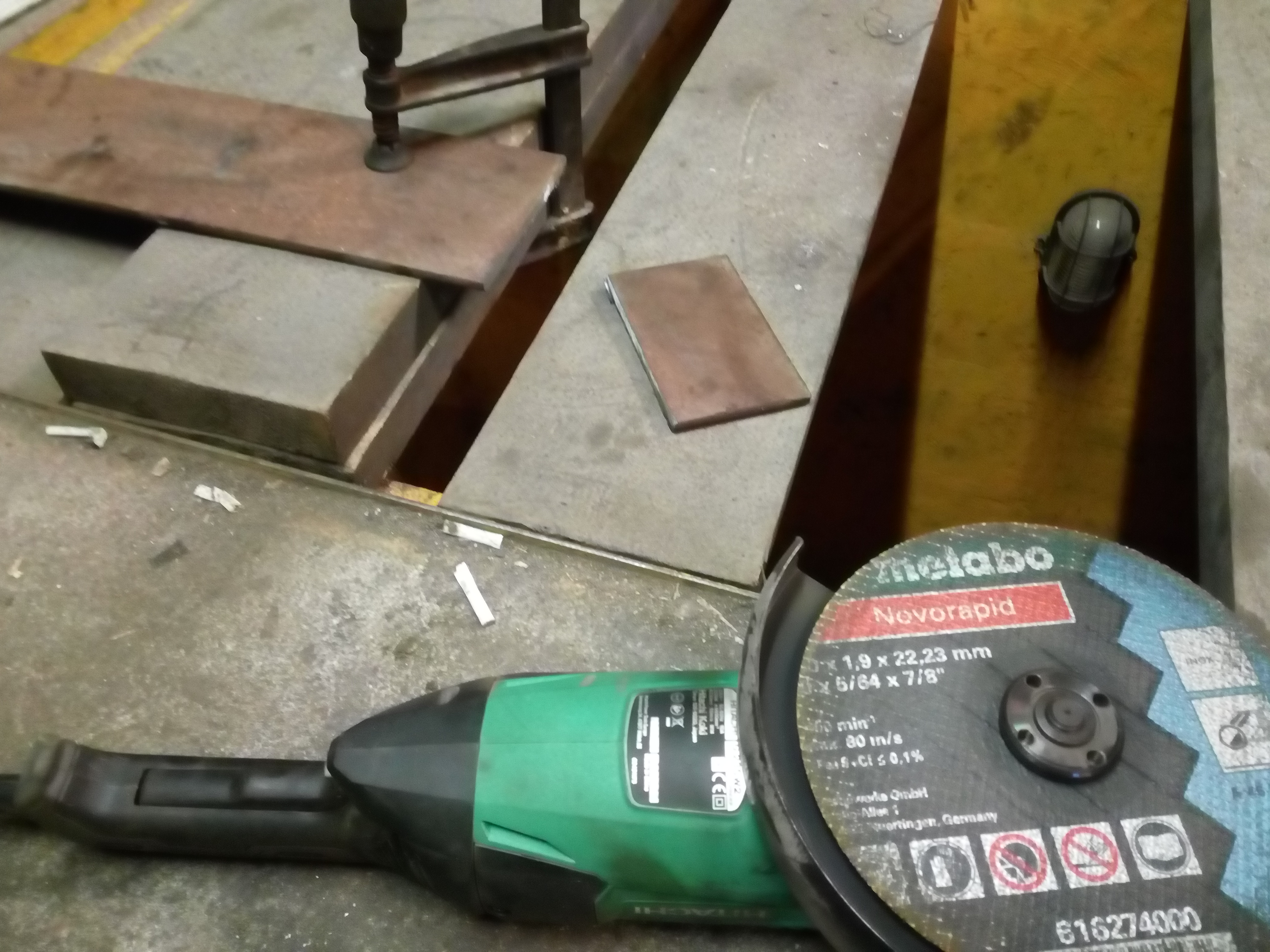 ...ale jeszcze dzisiaj wydziergałem nowe blachy mocujące resor z osią. I tak tniemy, znowu czym innym tniemy, wiercimy, większym wiercimy, i tak mamy oto gotowy produkt. A teraz Al-Ko....