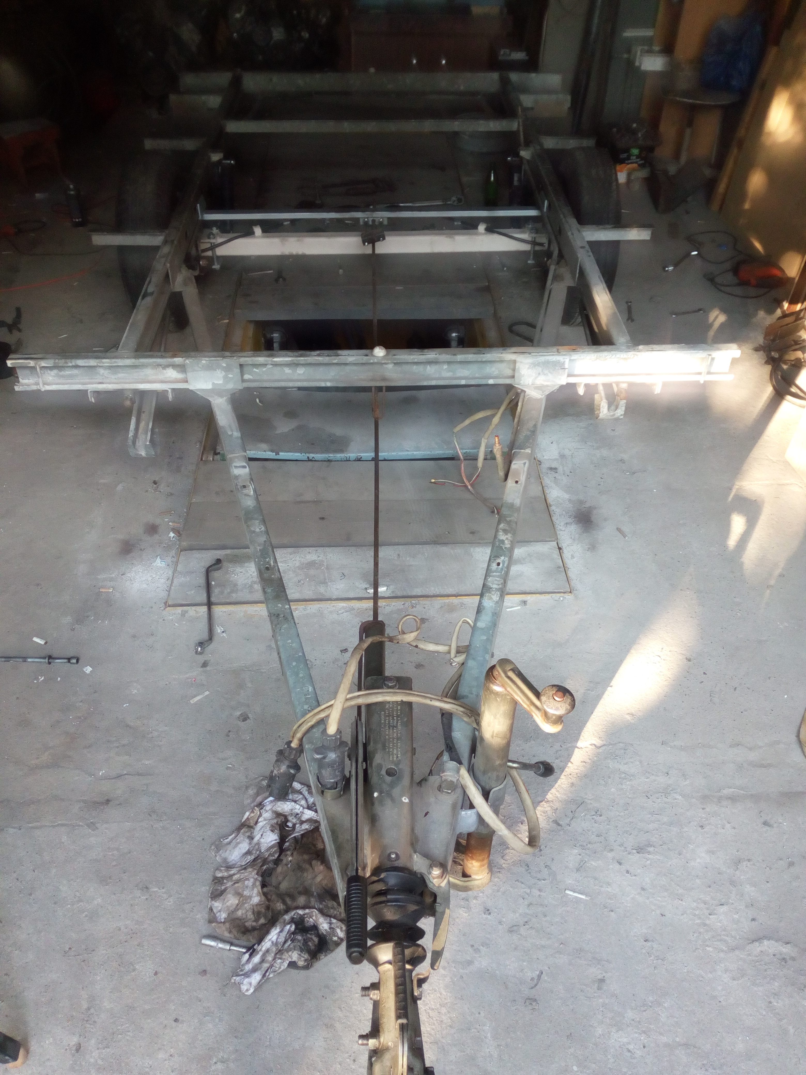 Witam. Cały poprzedni tydzień chorowałem, masakra, ale wczoraj postawiłem budę na ramie i co.... i dupa jak cholera... Naprawdę nie wiem co spier...em ale stoi krzywo. Nie jest to moja pierwsza konstrukcja zawieszenia ale tu jest coś nie tak. Od ramy do osi 5mm co nam daje na całej wysokości przyczepki jakieś 5cm. Nie może tak być; już kit, że stała wysoko jak off rodowa; najwyżej niższe opony by się dało. Kurcze, sporo się namęczyłem i w pi...u wylądował... Za bardzo chwaliliście ten mój fach w ręku... ; życie. Nawet już myślałem, że buda jakaś krzywa, albo rama. Przykręciłem tą nową ośkę co do zapiekanki kupiłem i co, stoi jak powinna... Ech, odpuszczam dalsze próby postawienia tego na resor i szukam osi na wałkach, co zresztą też nie jest łatwe. Zły jestem, to mało powiedziane.