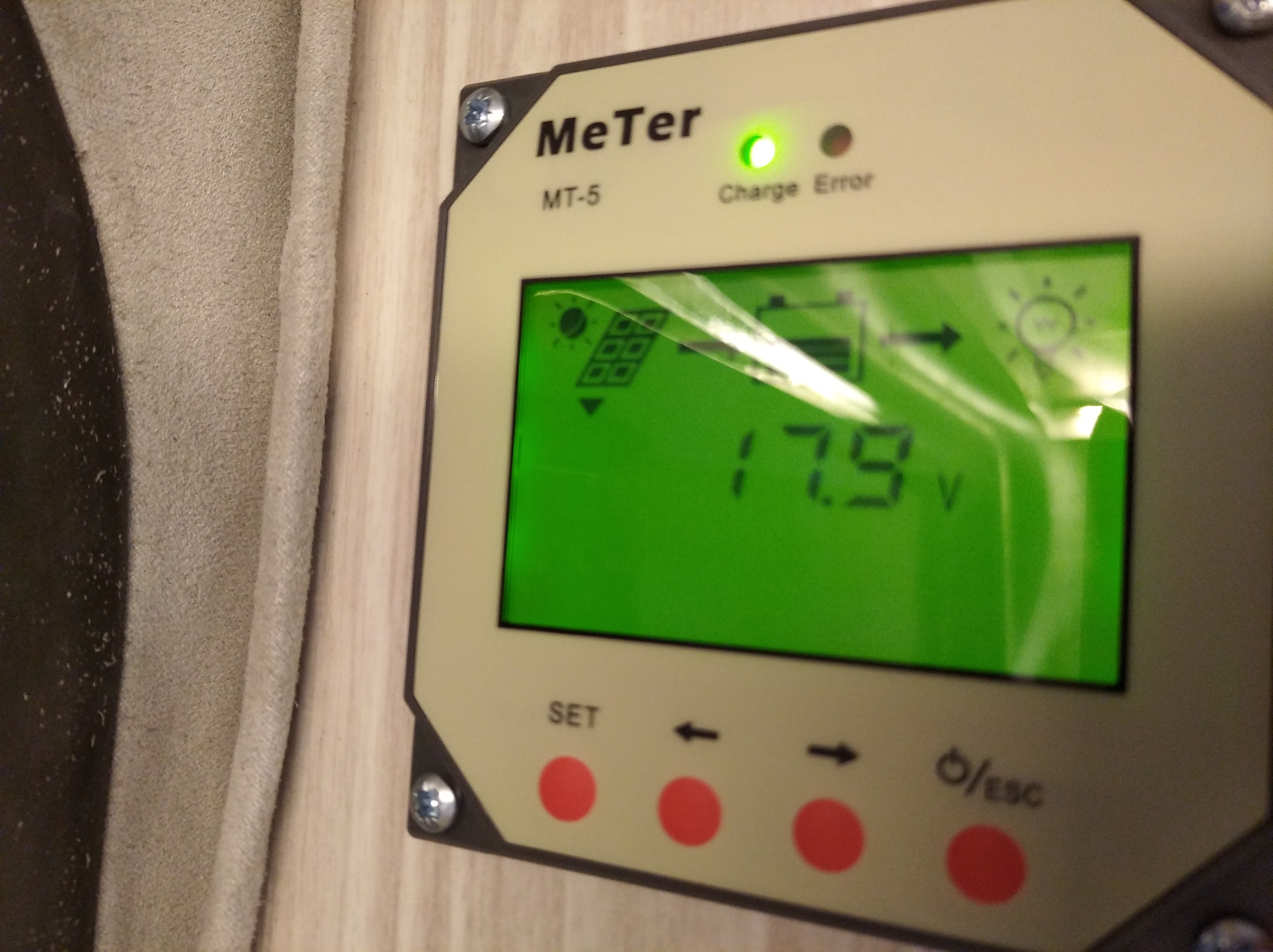 - solar podłączony i ładuje nawet przy oświetleniu garażowym