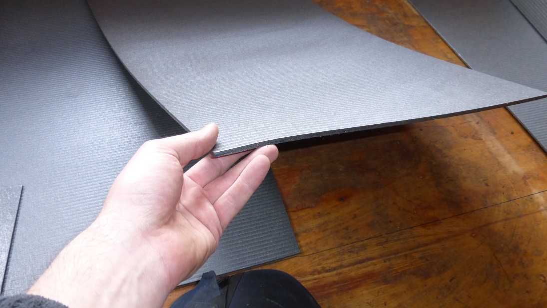 Podłoga skończona. Zostało ułożone ocieplenie z takich płyt jak na zdjęciu, przyklejonych na taśmę dwustronną do podłogi. Nie wiem jak się nazywają ale są ciepłe i na tyle twarde, że chodzenie po nich nie powoduje wygniatania się. Grubość to około 4-5mm. Jedna paczka tego towaru starczyła w sam raz na eNkę. Na to ułożyłem nową wykładzinę również przyklejając ją na taśmę. Miałem trochę obawy, że podłoga podniesie się za bardzo ale jest OK, szafa weszła normalnie na miejsce tylko lekko dotyka do sufitu, przy progu też nie jest za wysoko. Po podłodze chodzi się normalnie, nie czuć żadnego uginania się czy czegoś takiego.