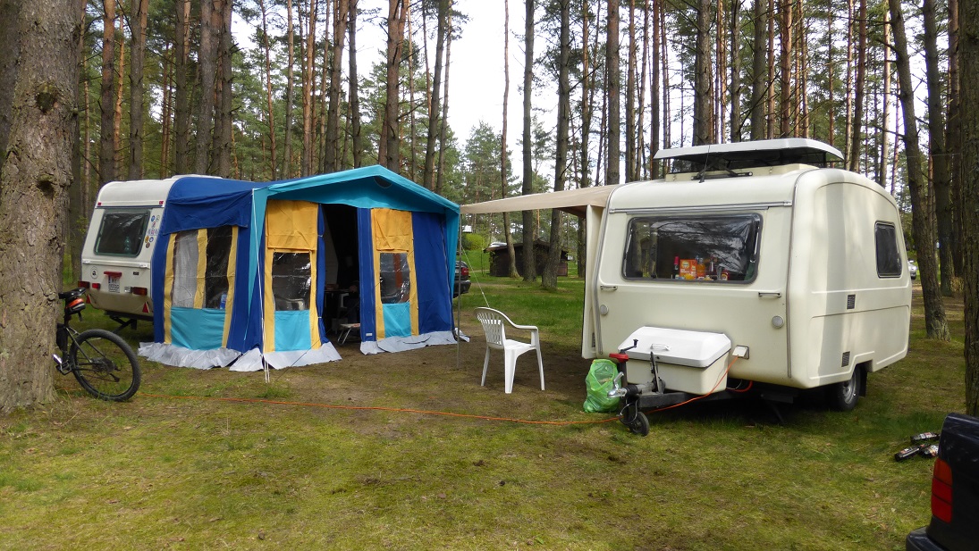 Minęło trochę czasu, przyczepka od majówki jest cały czas w użyciu (właśnie siedzimy w Augustowie :D ) i ogólnie sprawuje się świetnie. W wolnych chwilach trochę dłubię i poprawiam. Zgodnie z przewidywaniami okazało się, że spory problem sprawiają trzy rzeczy: brak wentylacji z tyłu lodówki, przeklęte klucze do otwierania szafy i szafek pod zlewem i kuchenką i koło zapasowe przechowywane wewnątrz przyczepy.