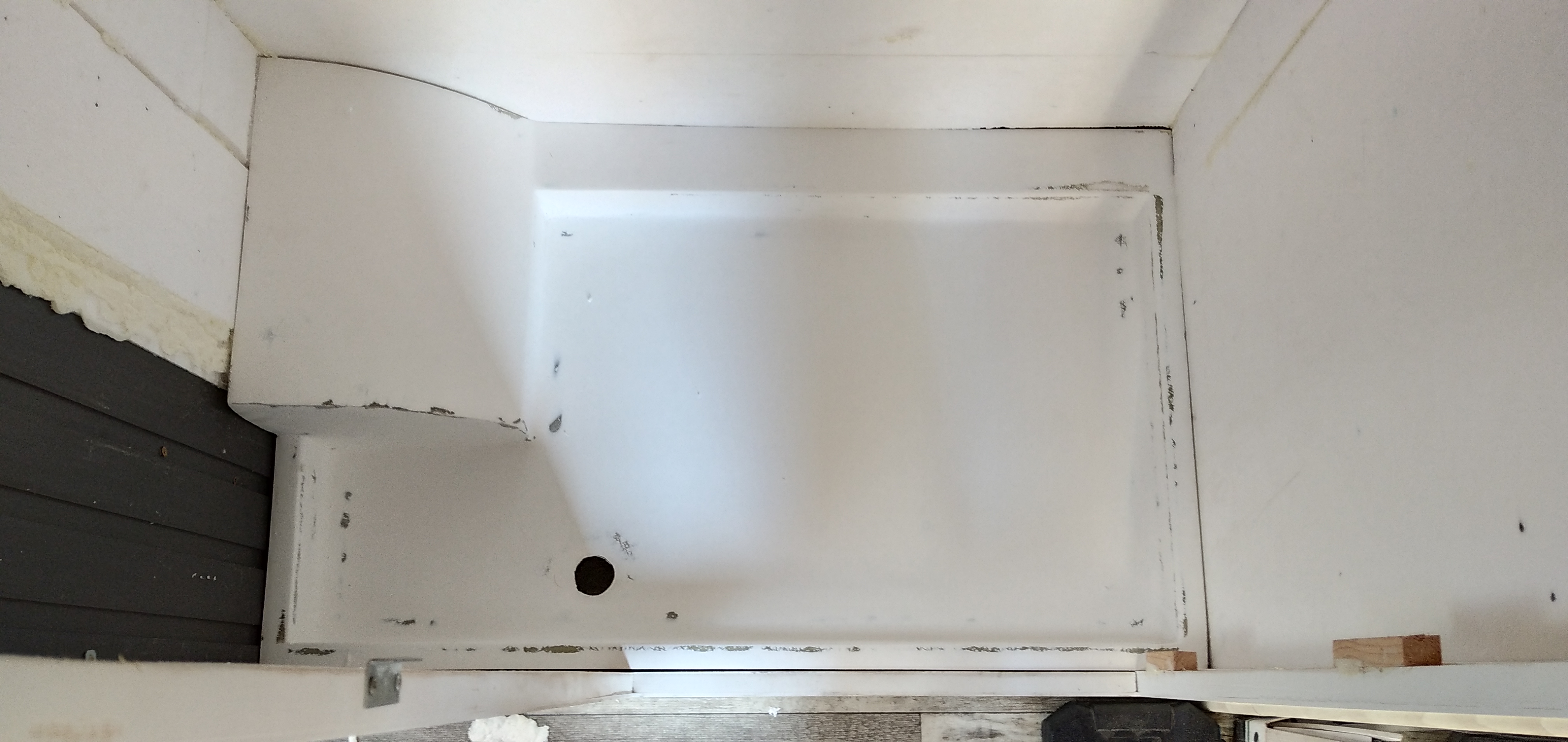 Masz rację. Niestety w rogach po obu stronach wypada albo rama albo oś. Słabo. Starłem się wyprofilować dno ze spadkiem w odpływ ale pewności nie mam bo wody jeszcze nie lałem. Jak porównywałem poziomy podłogi i brodzika to spad jest w stronę drzwi i odpływu czyli połowa sukcesu. Poziom przód/tył jest praktycznie na zero.