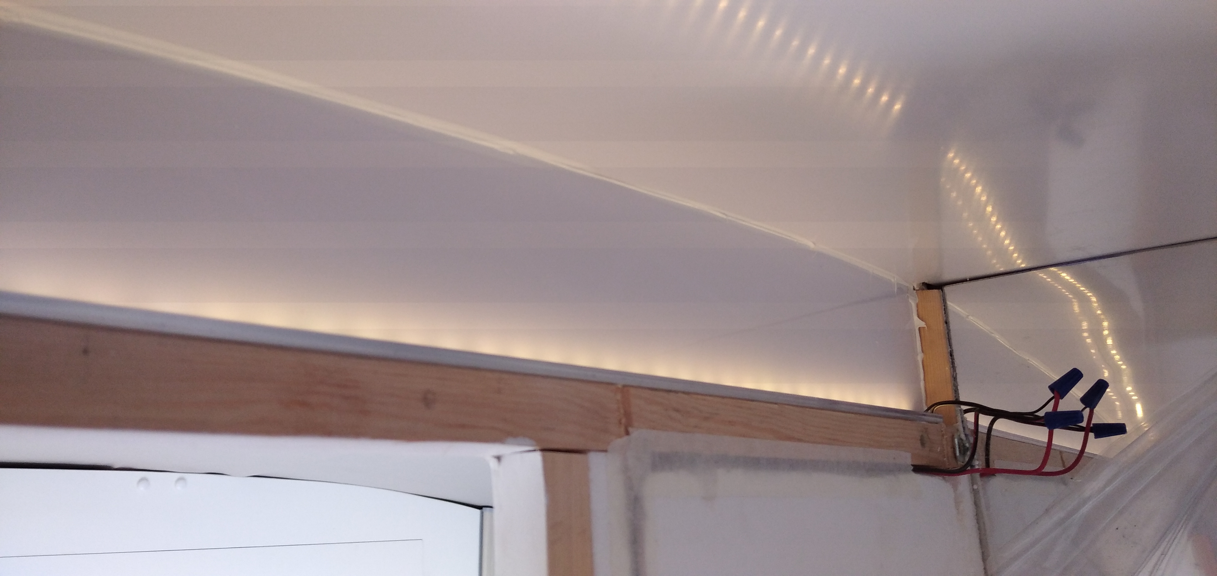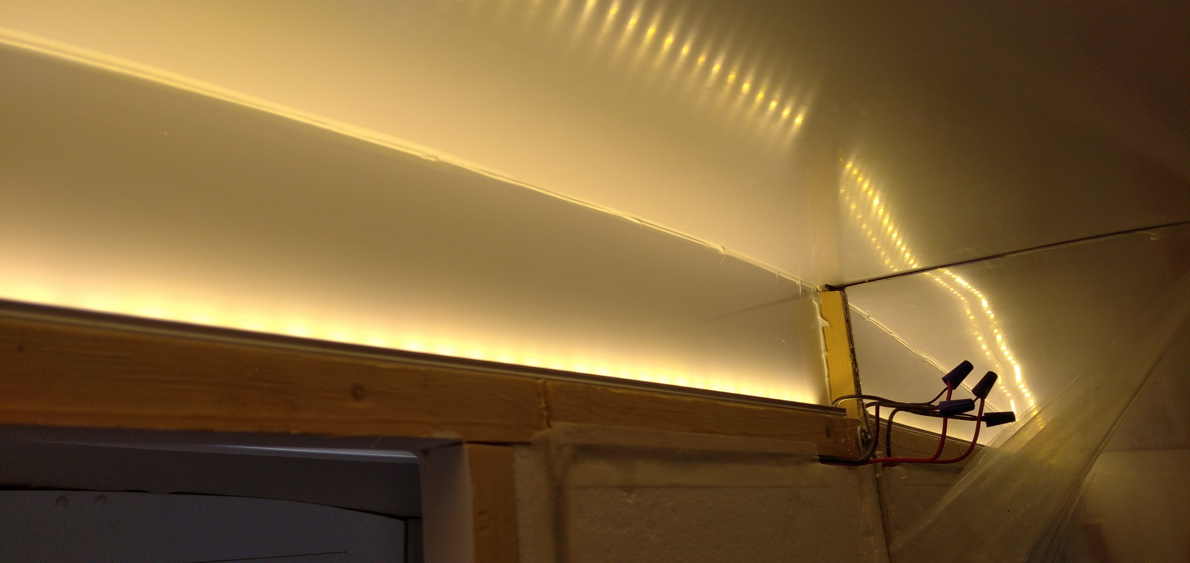 Na widoczny pasek LED przyjdzie jeszcze biała ściana z HIPSu co da efekt świecącej ściany.