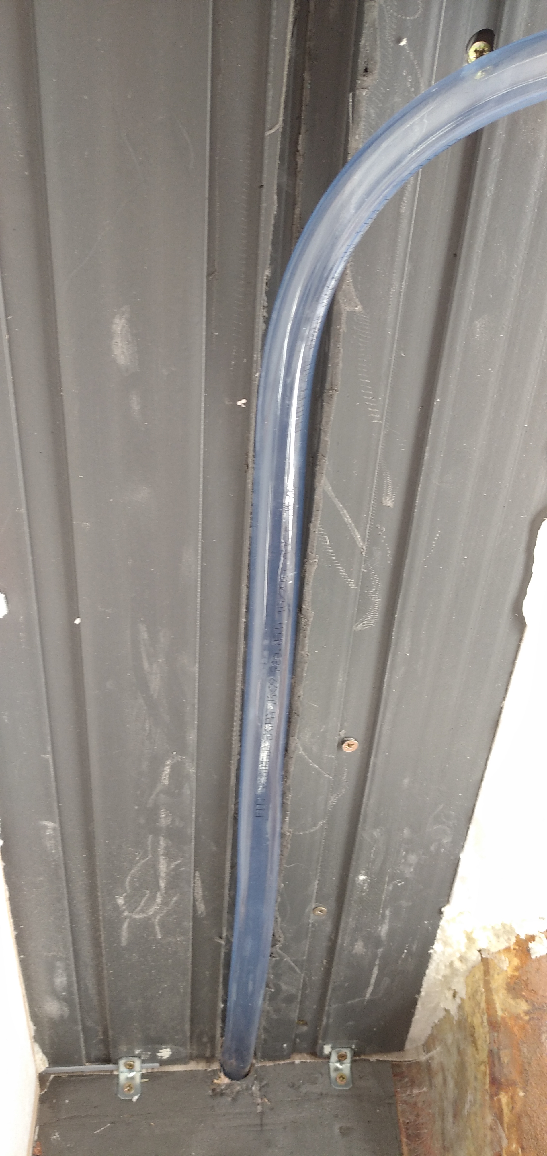 Nie chciałem dziurawić brodzika, żeby zachować szczelność. Upchnąłem więc wąż 19mm w ścianie pomiędzy szafą a łazienką i przykryłem HIPS em
