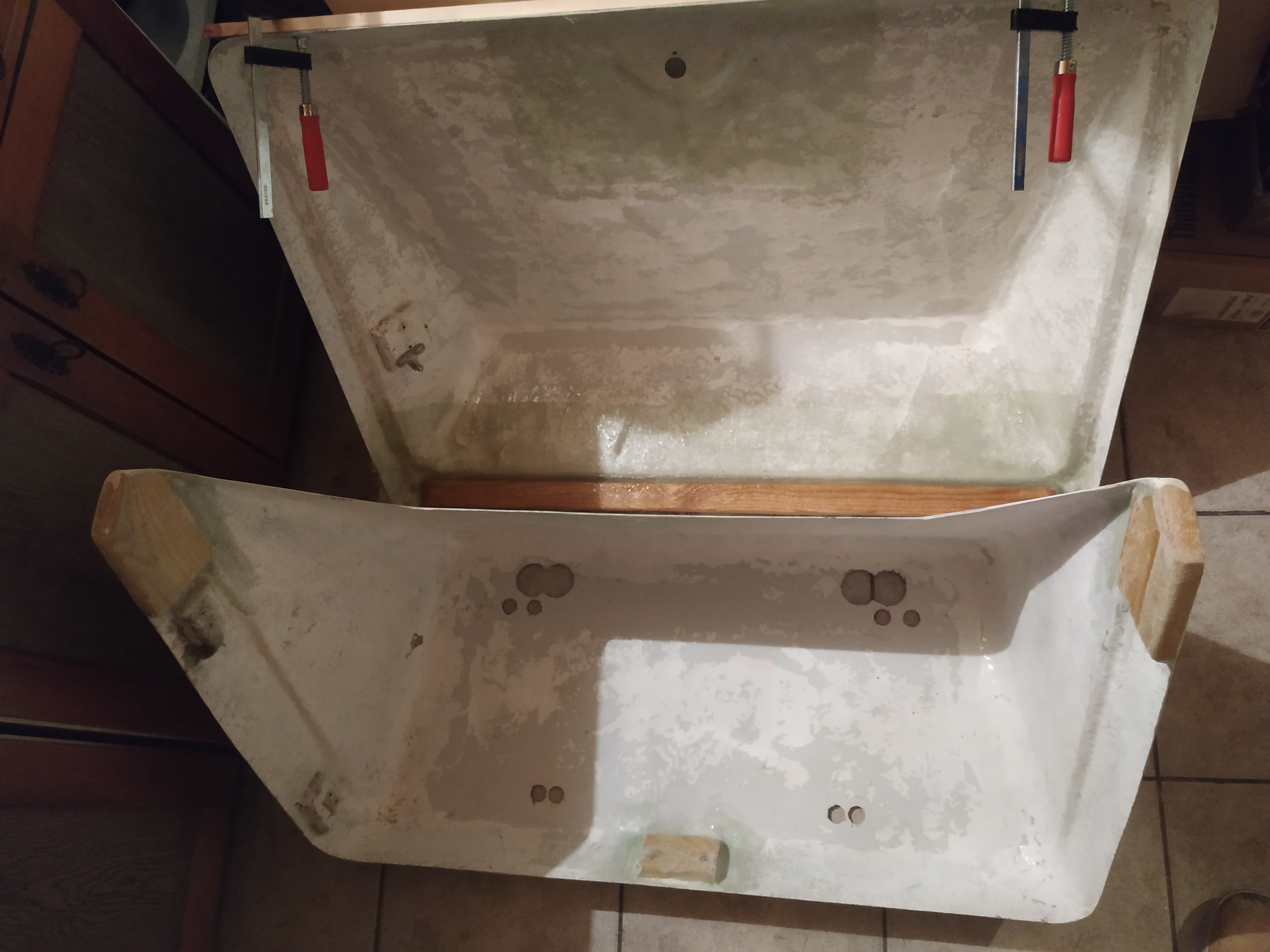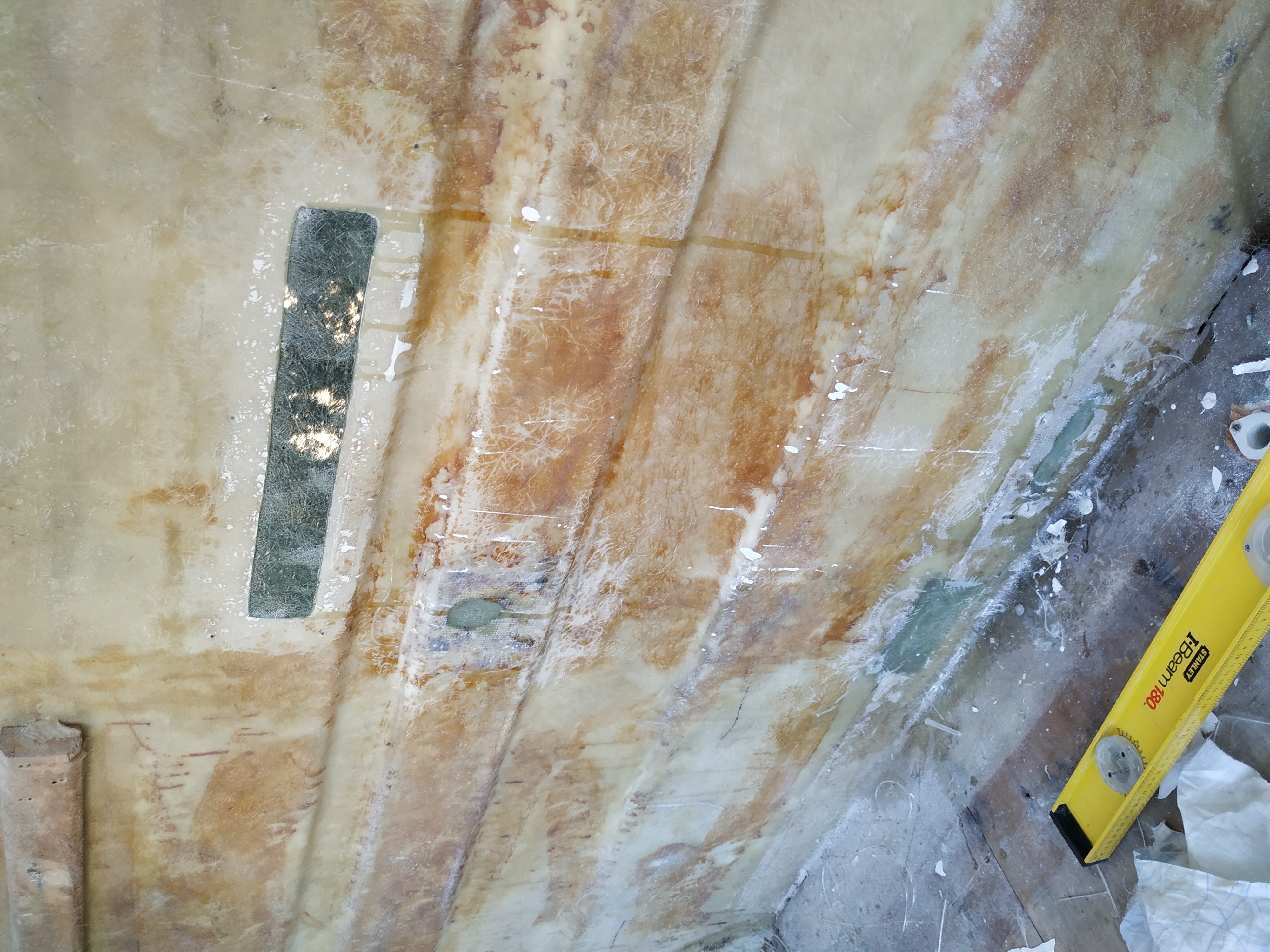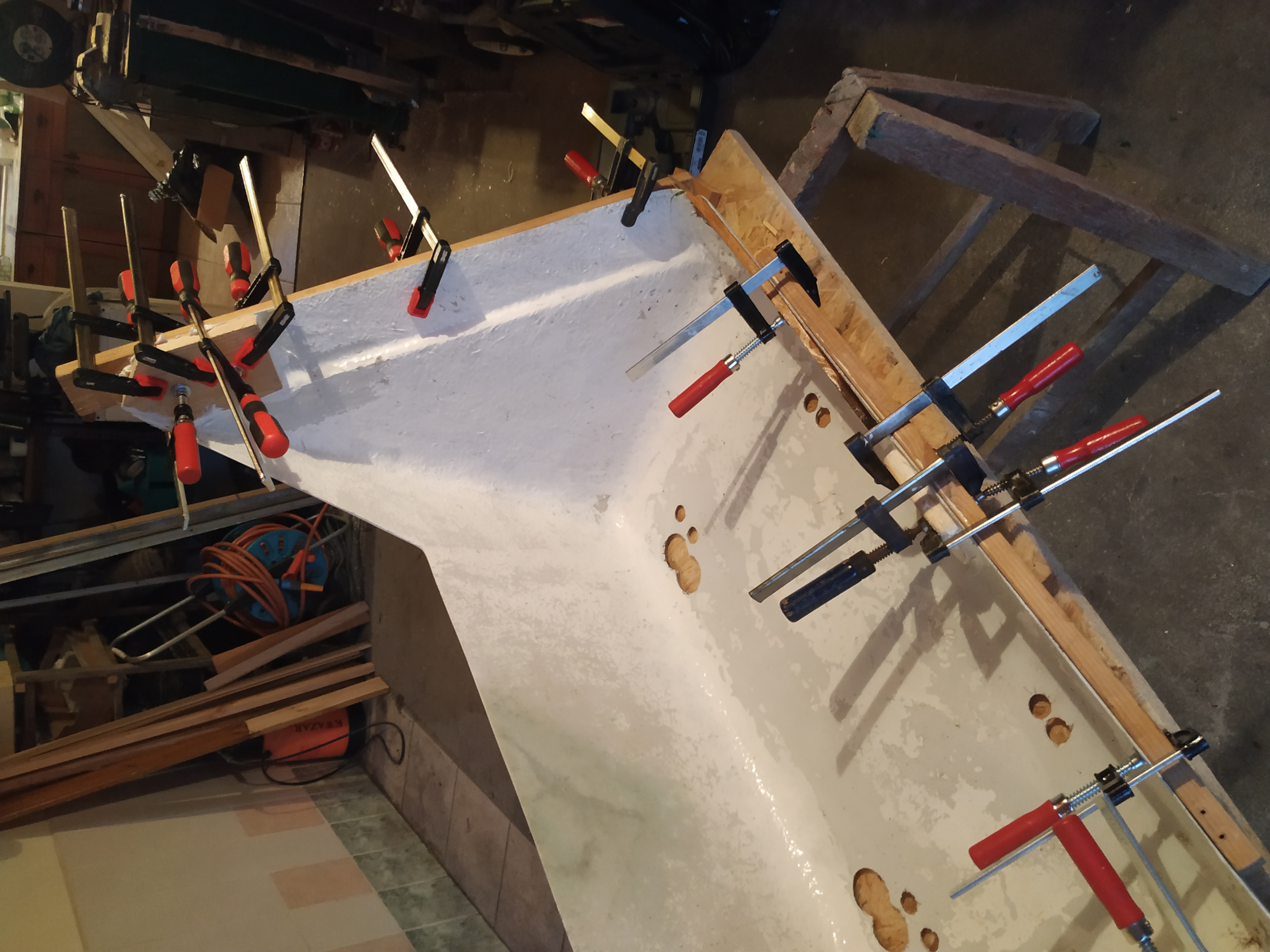 Dziś trochę pracy z żywicą i w efekcie wzdłuż listew w środku jedna warstwa jest już po całości. Roboty trochę było ale fotek za wiele z tego nie ma bo co tu focić