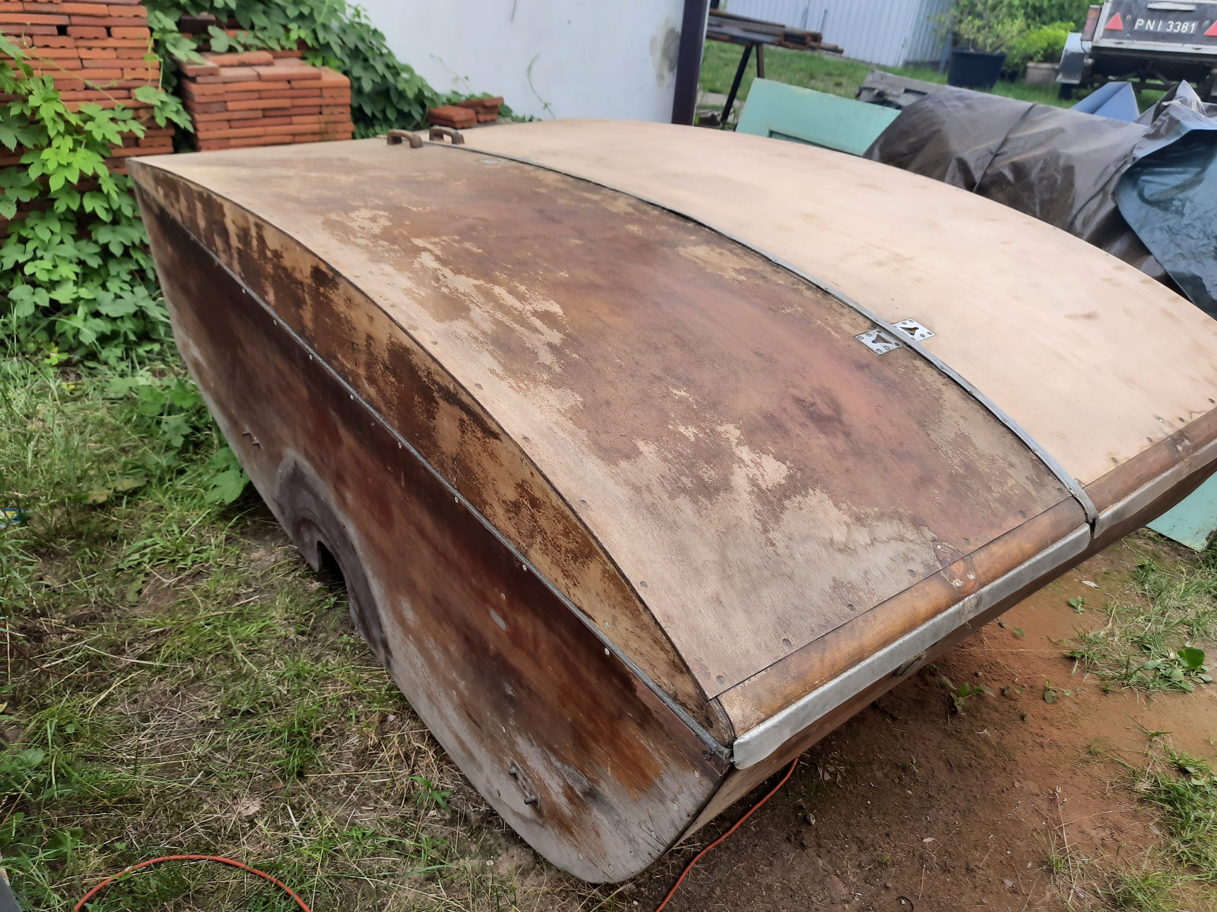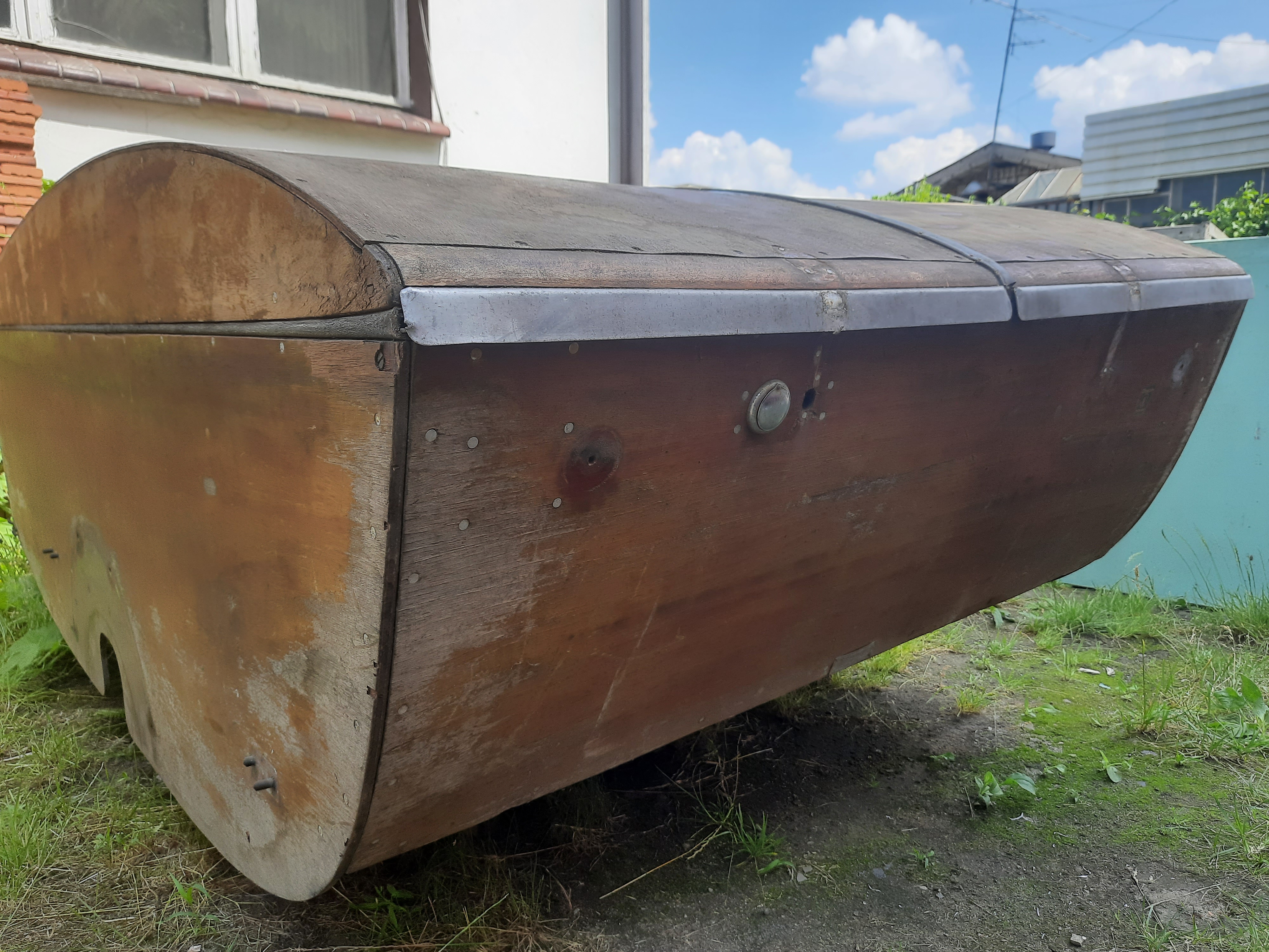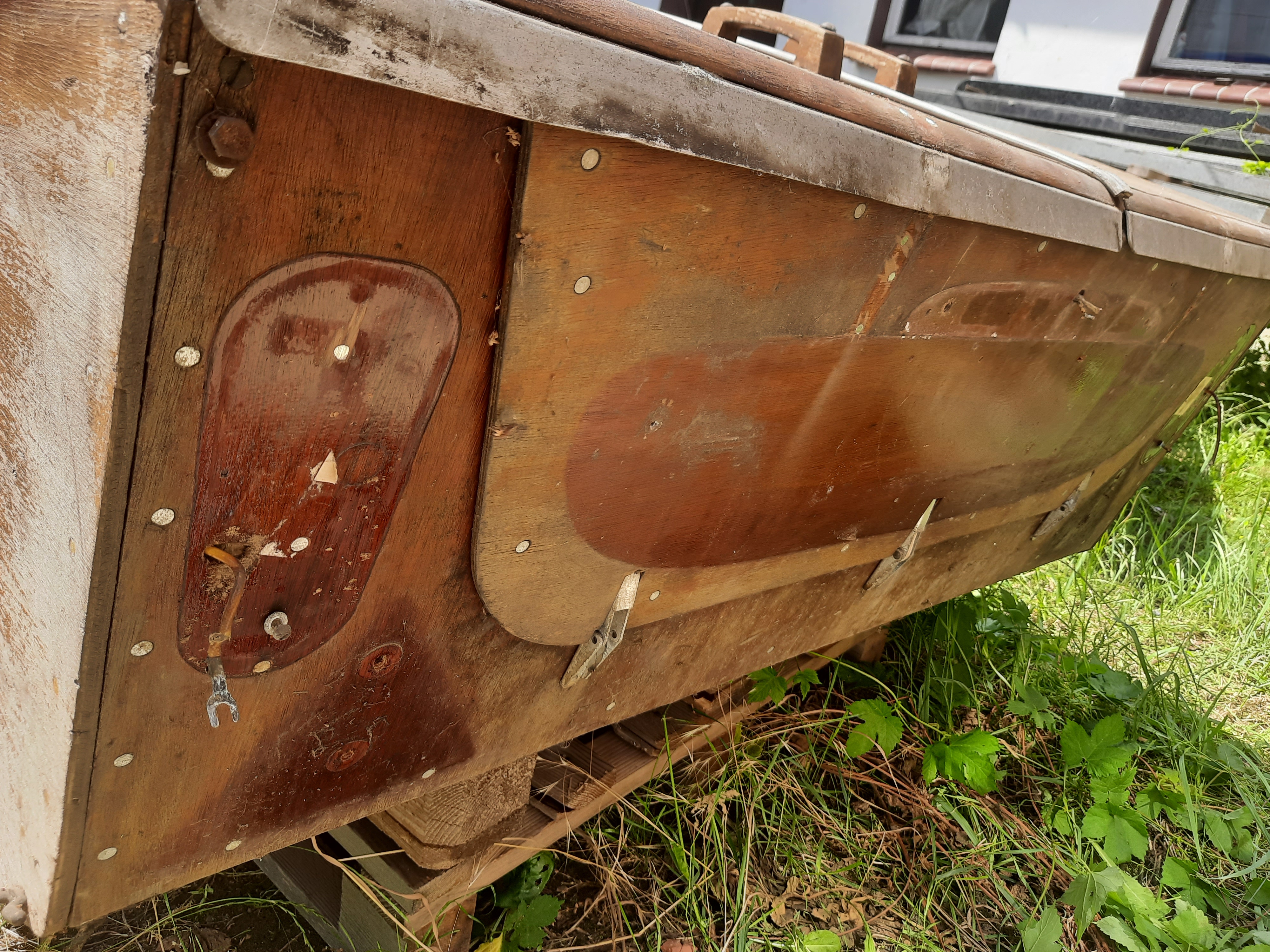 Wreszcie buda trafiła na ramę. Dolna część polakierowana jest już na gotowo. Na wszystkie szlifowane drewna kładę trzy warstwy lakieru jachtowego bezbarwnego w połysku. Po pierwszej warstwie jest jeszcze raz przeszlifowane 240.