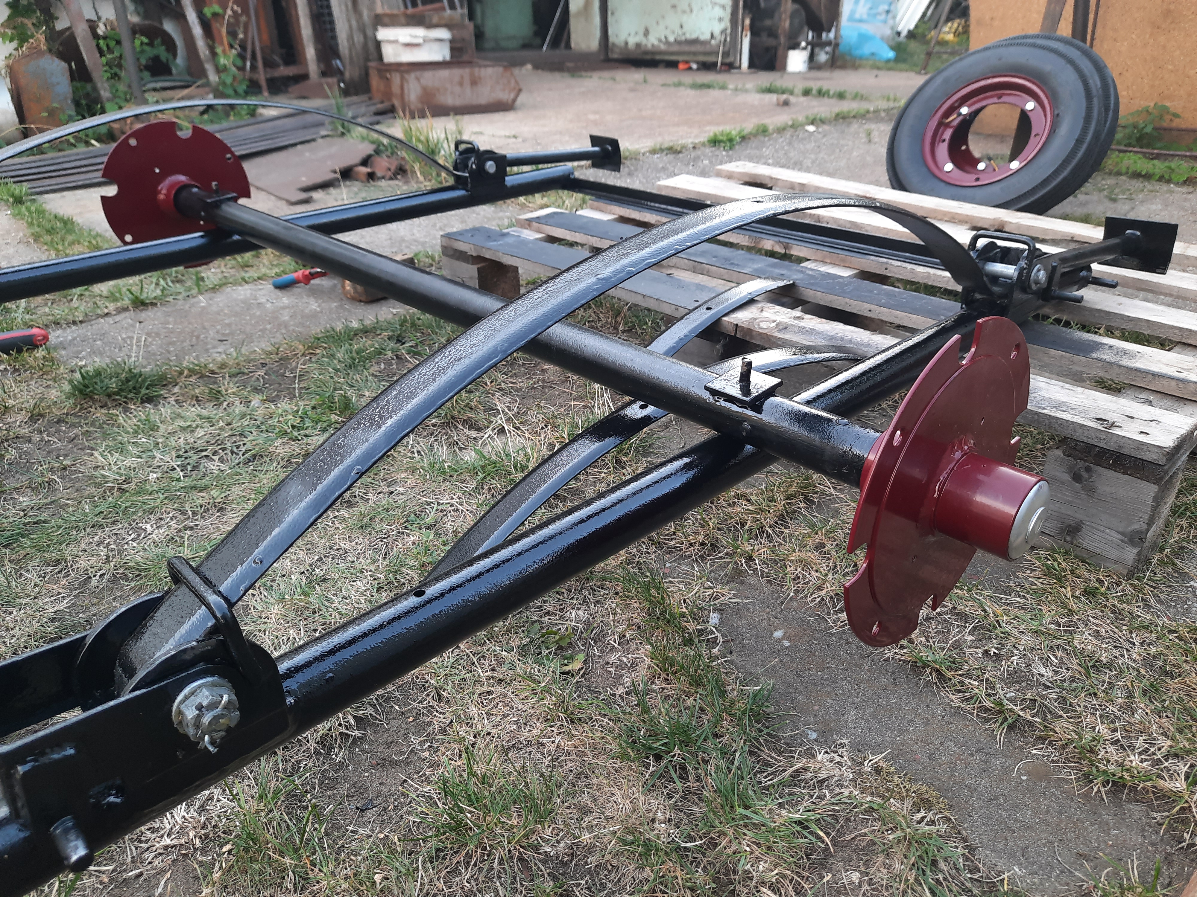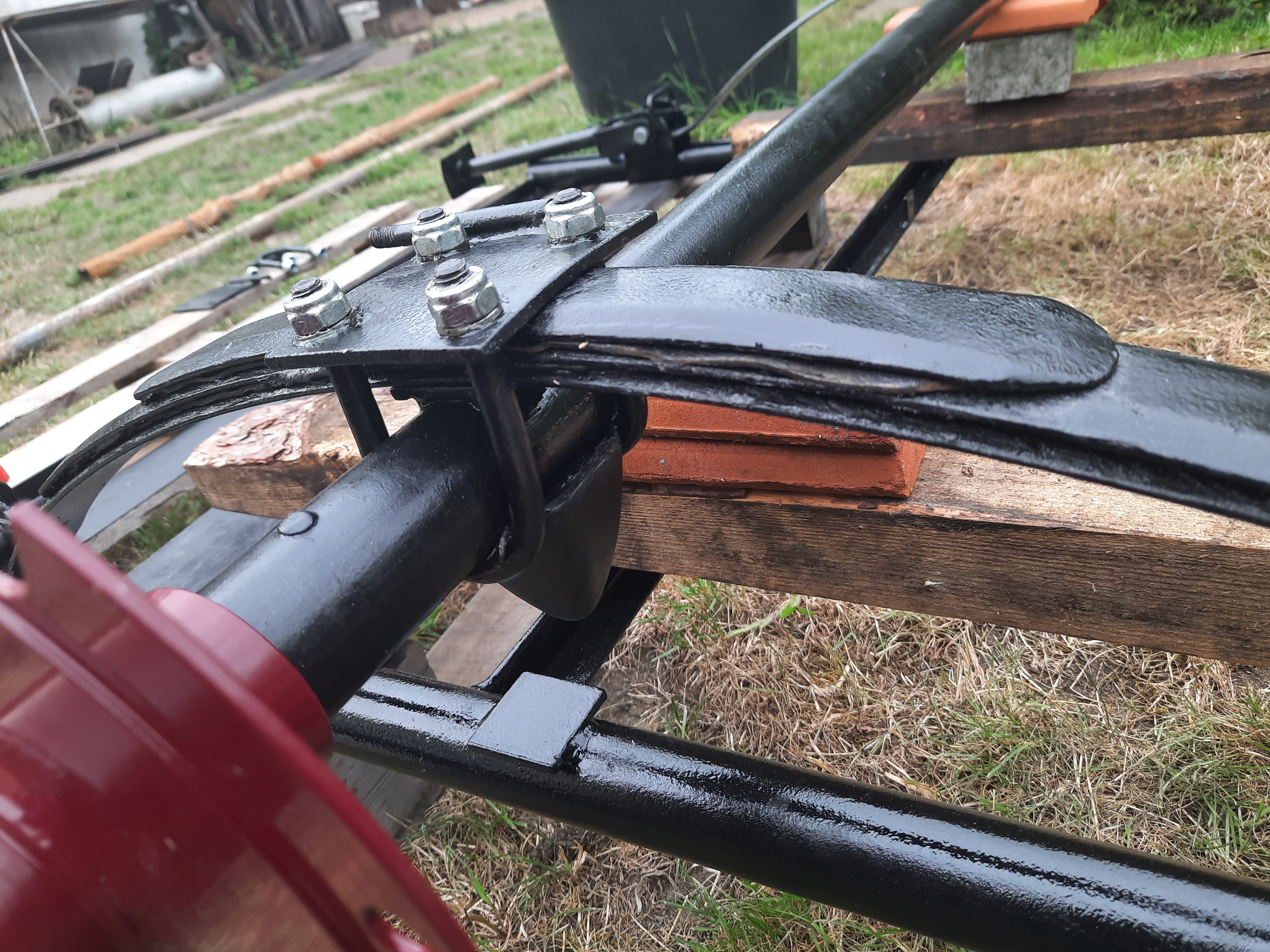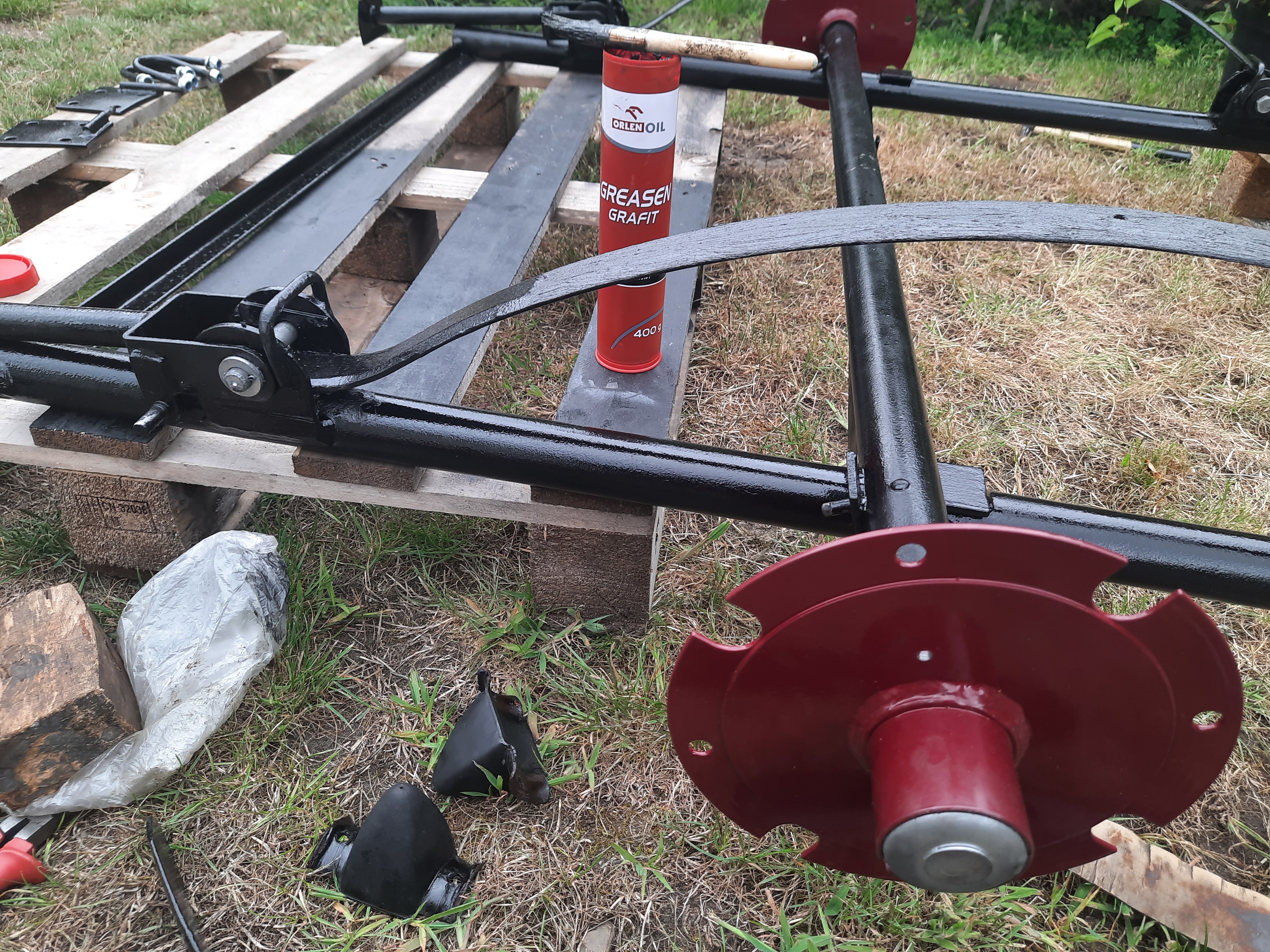 Rama jest gotowa, resory poskładane, smaru grafitowego nigdy za wiele. Niestety nie mogę jeszcze założyć amortyzatorów... Czekam aż wrócą z regeneracji (będą oryginalne).