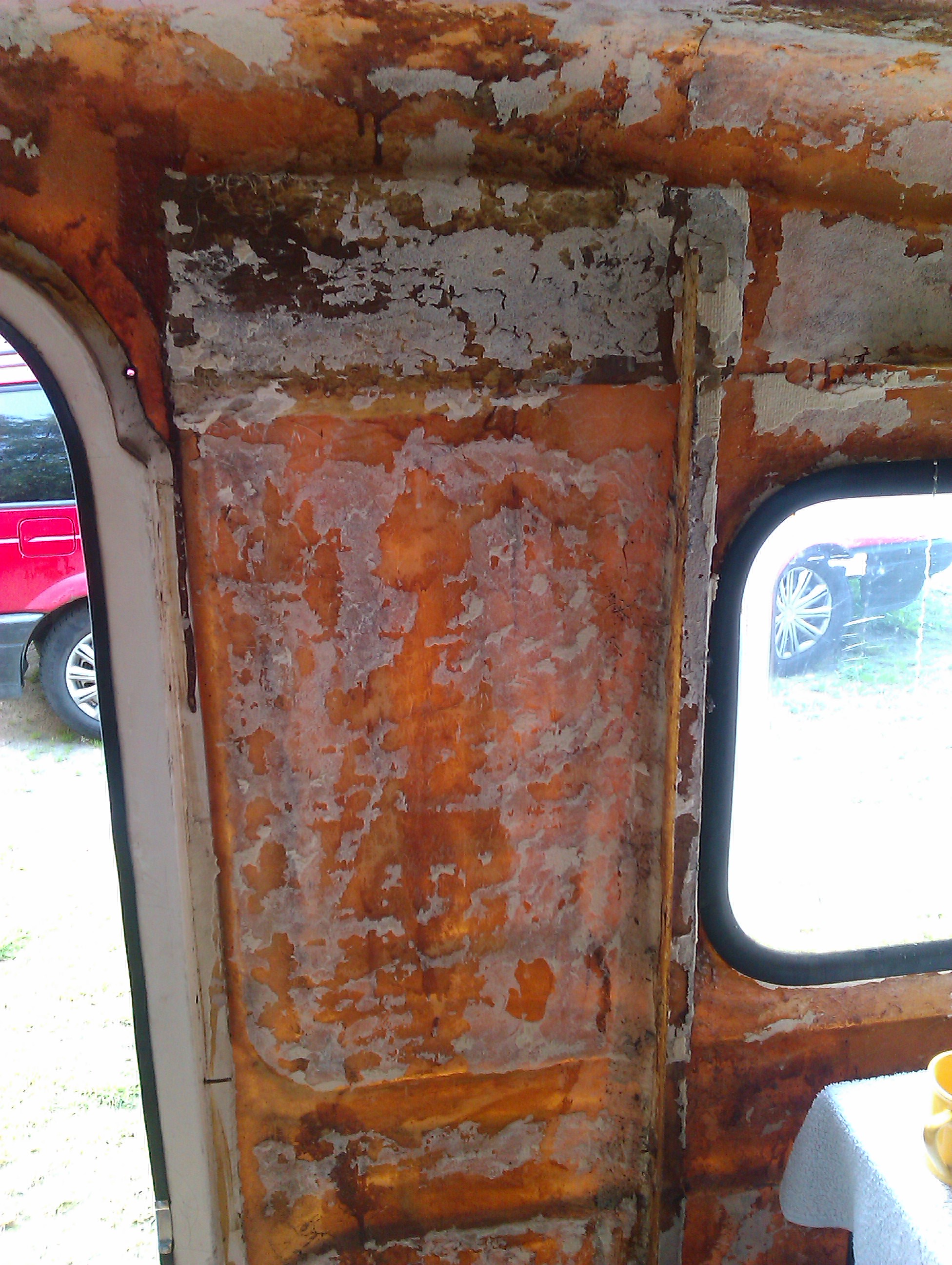 Zrobiłem parę fotek. Wczoraj wyrzuciłem wszystko ze środka i doznałem szoku. Grzyb, pleśń, gniazdo dziwnych robaków i stojąca woda w zagłębieniach przy nadkolach. Pozaklejałem niepotrzebne dziury żywicą, zdrapałem to co niepotrzebne, pozamiatałem i czekam aż trochę sie wywietrzy i wyschnie.