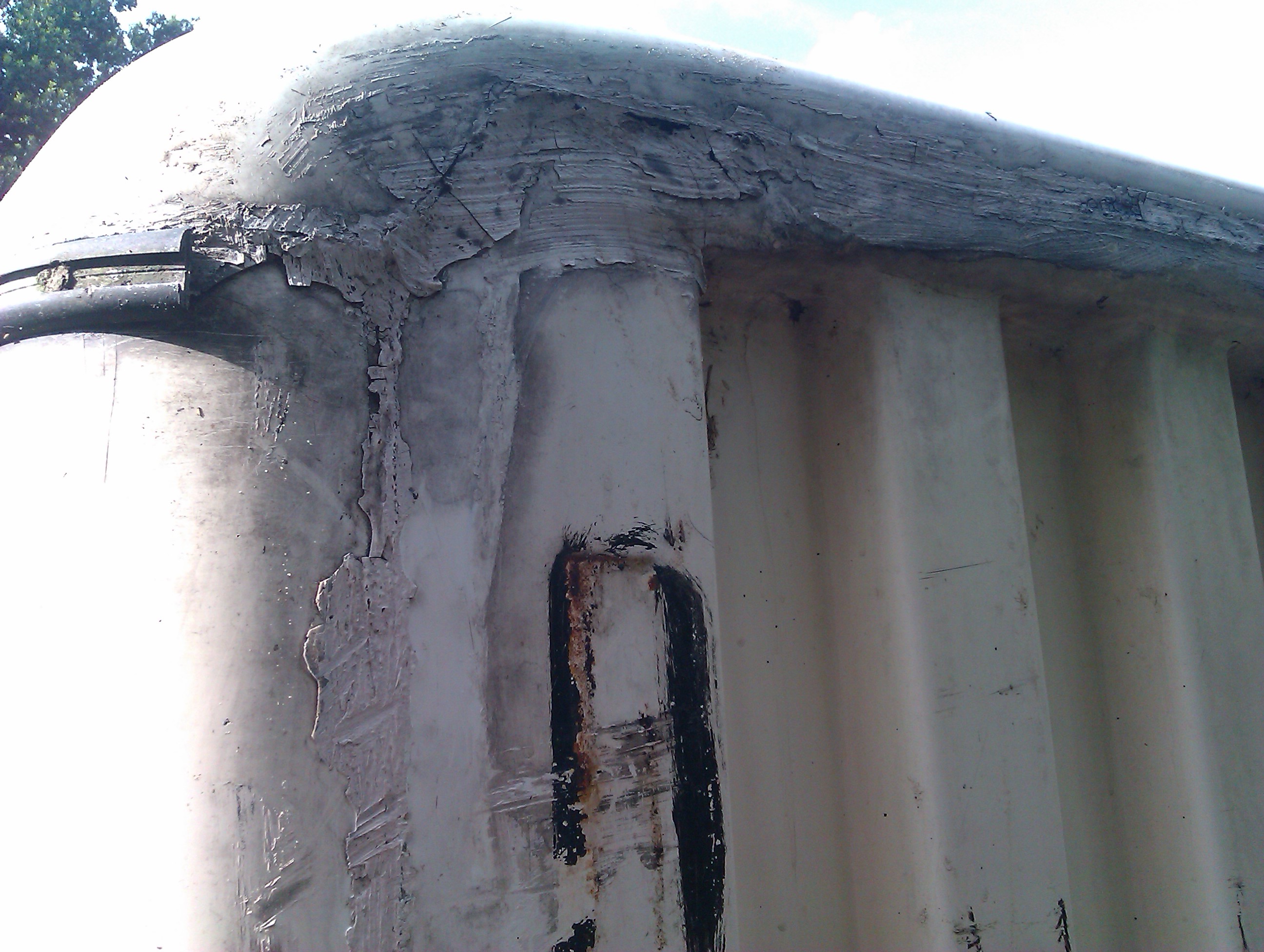 1.zaszpachluj szpachlą w włóknem,w miarę potrzeby mata i żywica.Jak potrzeba również od spodu mata i żywica.