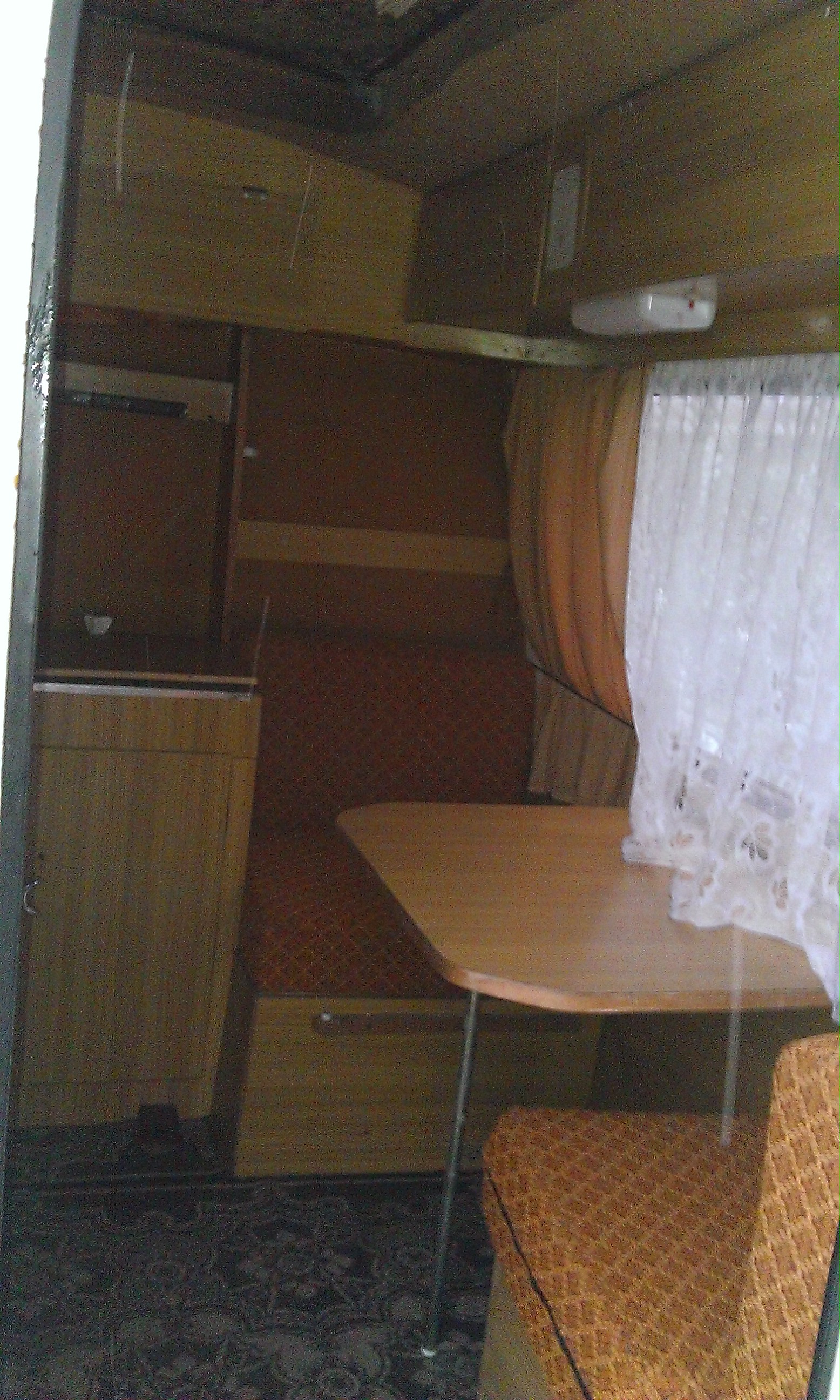 Przyczepa jest kompletna, bez żadnych modyfikacji tak jak wyjechała z fabryki. Niestety czas zrobił swoje i materiał obiciowy się odkleja i niezbyt ładnie pachnie.