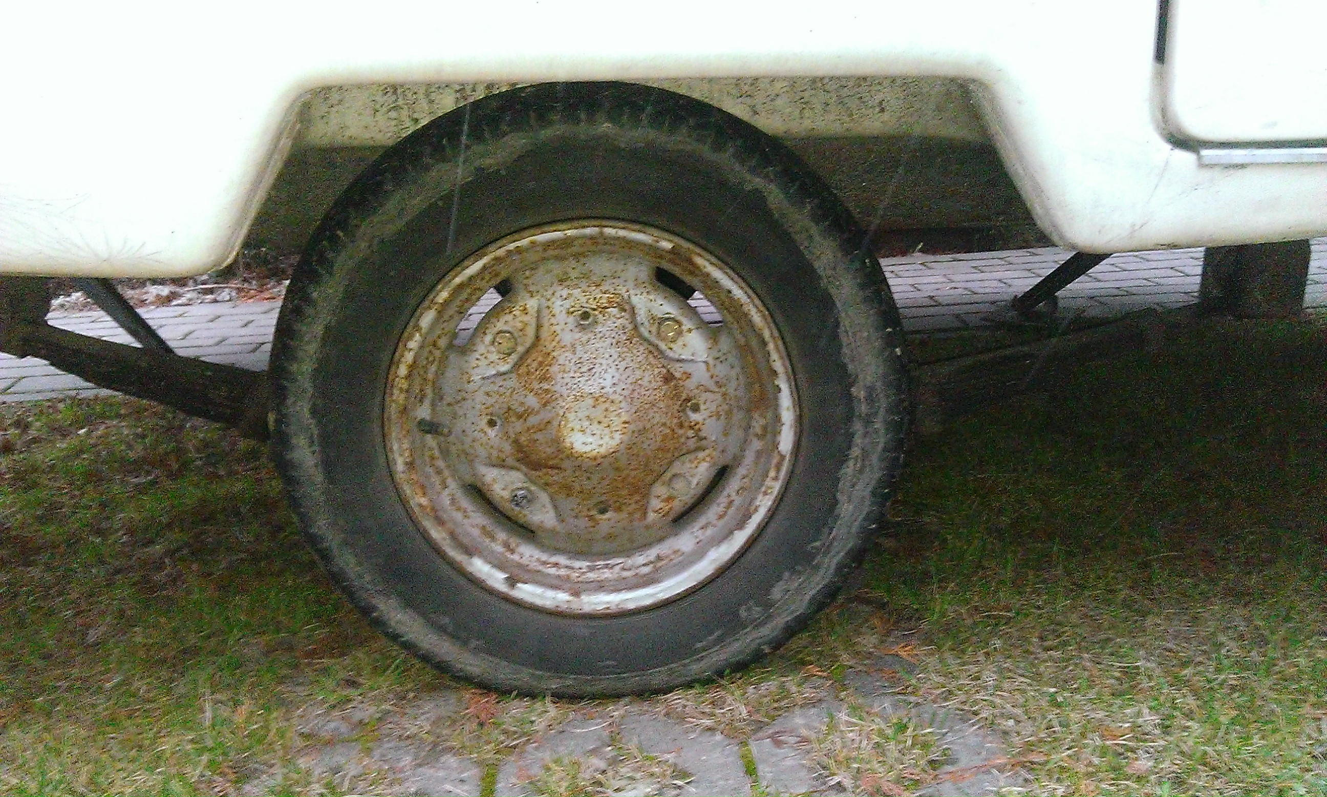 No i LUX :!: Dobrze, że się na to zdecydowałeś, łącznie ze zmianą kół na 13". W mojej osi AL-KO jest rozstaw śrub 4x100 i dopasowałem do tego felgi od Skody Felicia, szerokie na 4,5"