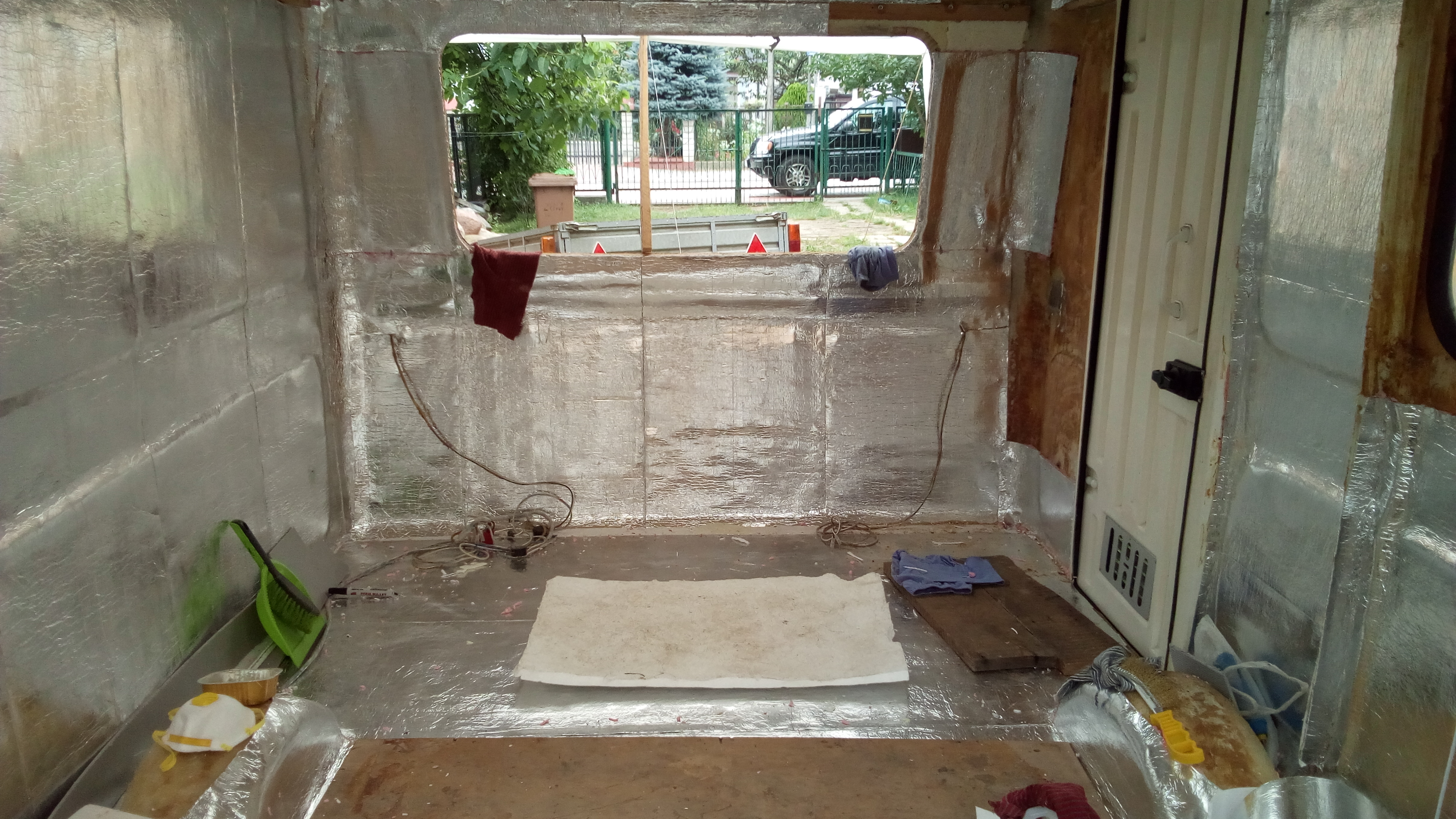 Wyklejone jest prawie wszystko, oprócz ściany przy drzwiach z przodu, bo będę jeszcze wymieniał zawiasy w drzwiach. Także nie dociągnąłem jeszcze ocieplenia przy oknach - bo będą wymieniane uszczelki. Wtedy pojadę do krawędzi z ociepleniem. Nawiasem mówiąc wymieniam wszystko co gumowe w cepce, kliny, zakończenia przy listwach okiennych, uchwyty manewrowe.