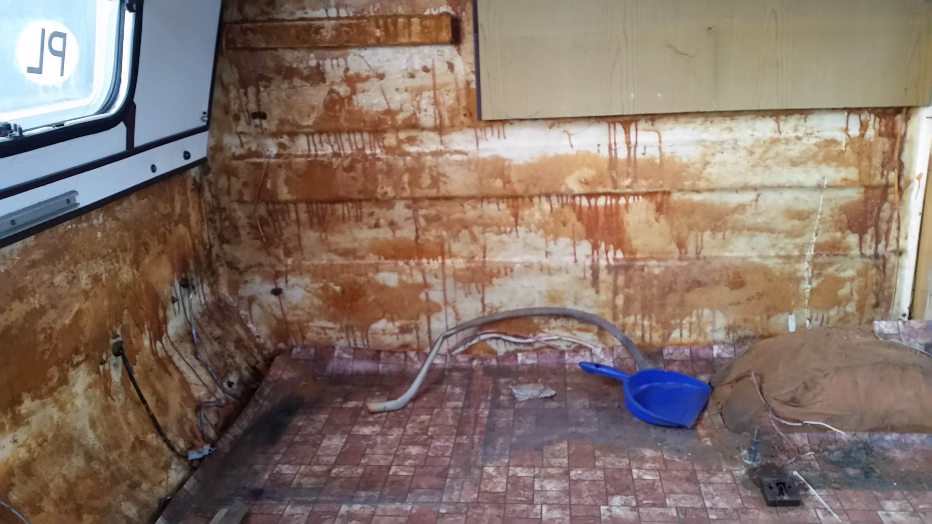 No to zaczynamy mimo mrozów. Zapiekanka po odkręceniu kół weszła mi do garażu - enka niestety nie. Prace się opóźniają bo dużo jest napraw klejowych, żywicznych i tp. Przyczepa już wybebeszona, szyby wymontowanie, odkrecony najazd, wstępne czyszczenie ścian. Niestety mam do odtworzenia praktycznie wszystkie drewniane listwy okienne i przynajmniej częściowo podłogę.