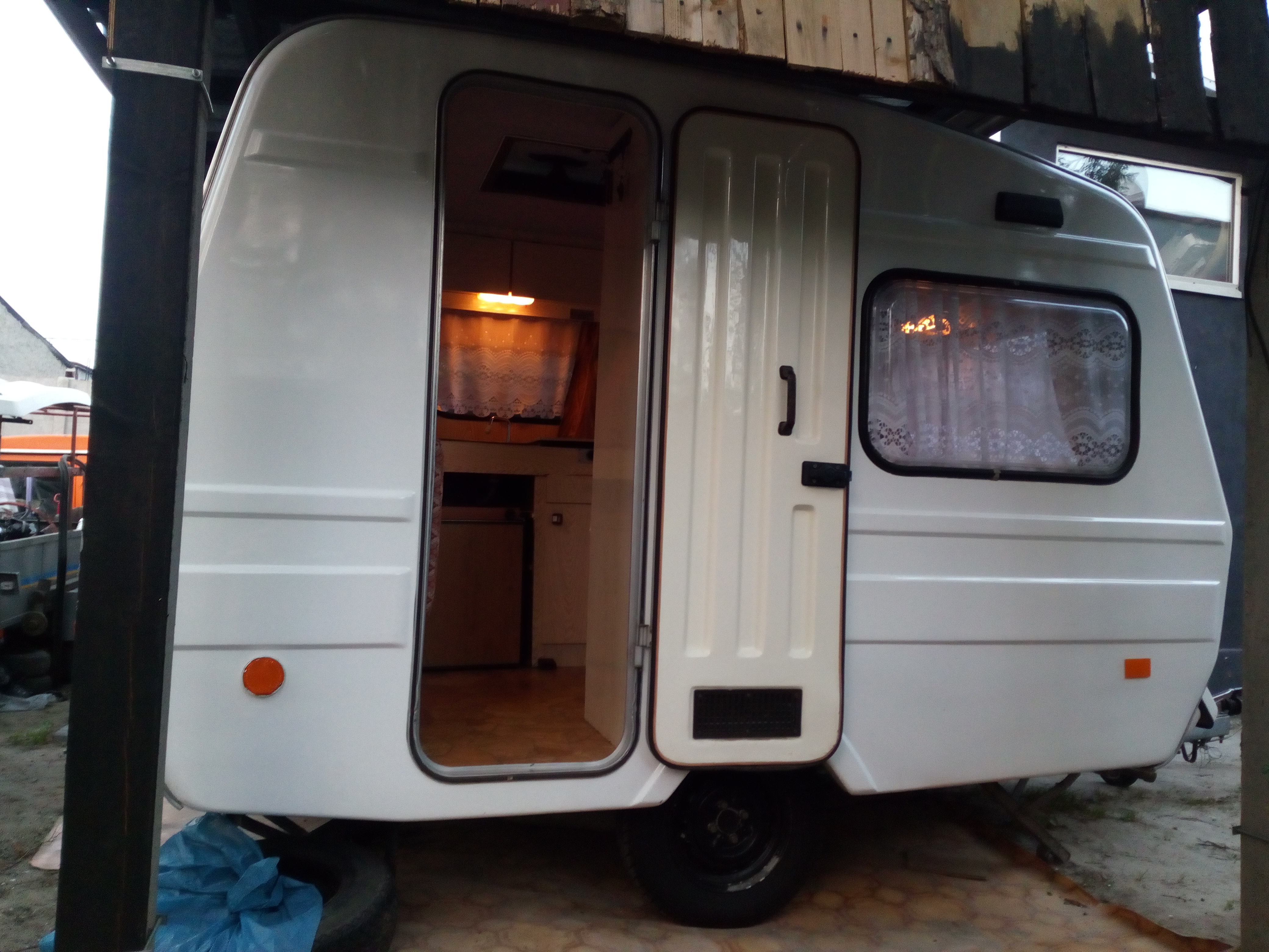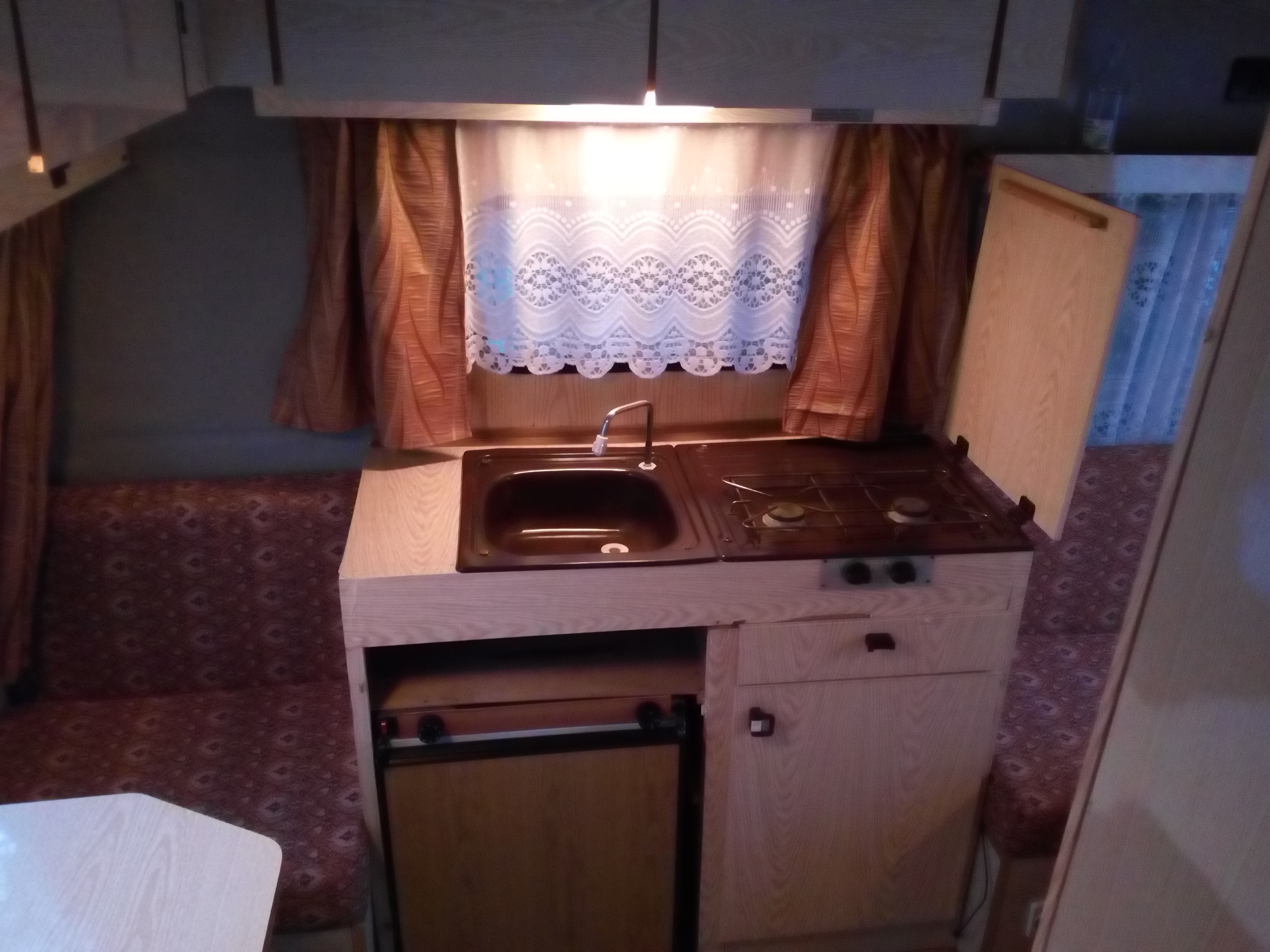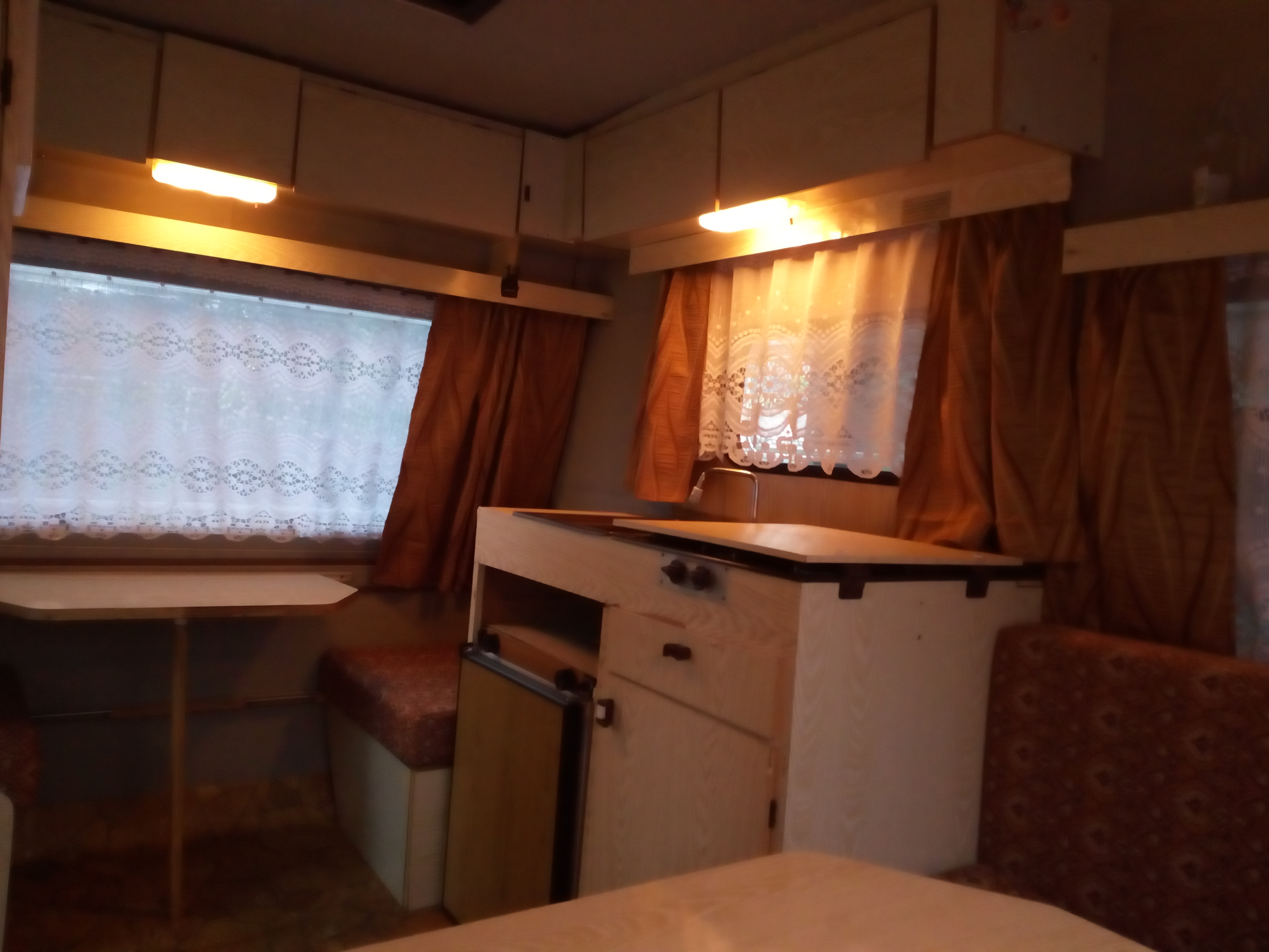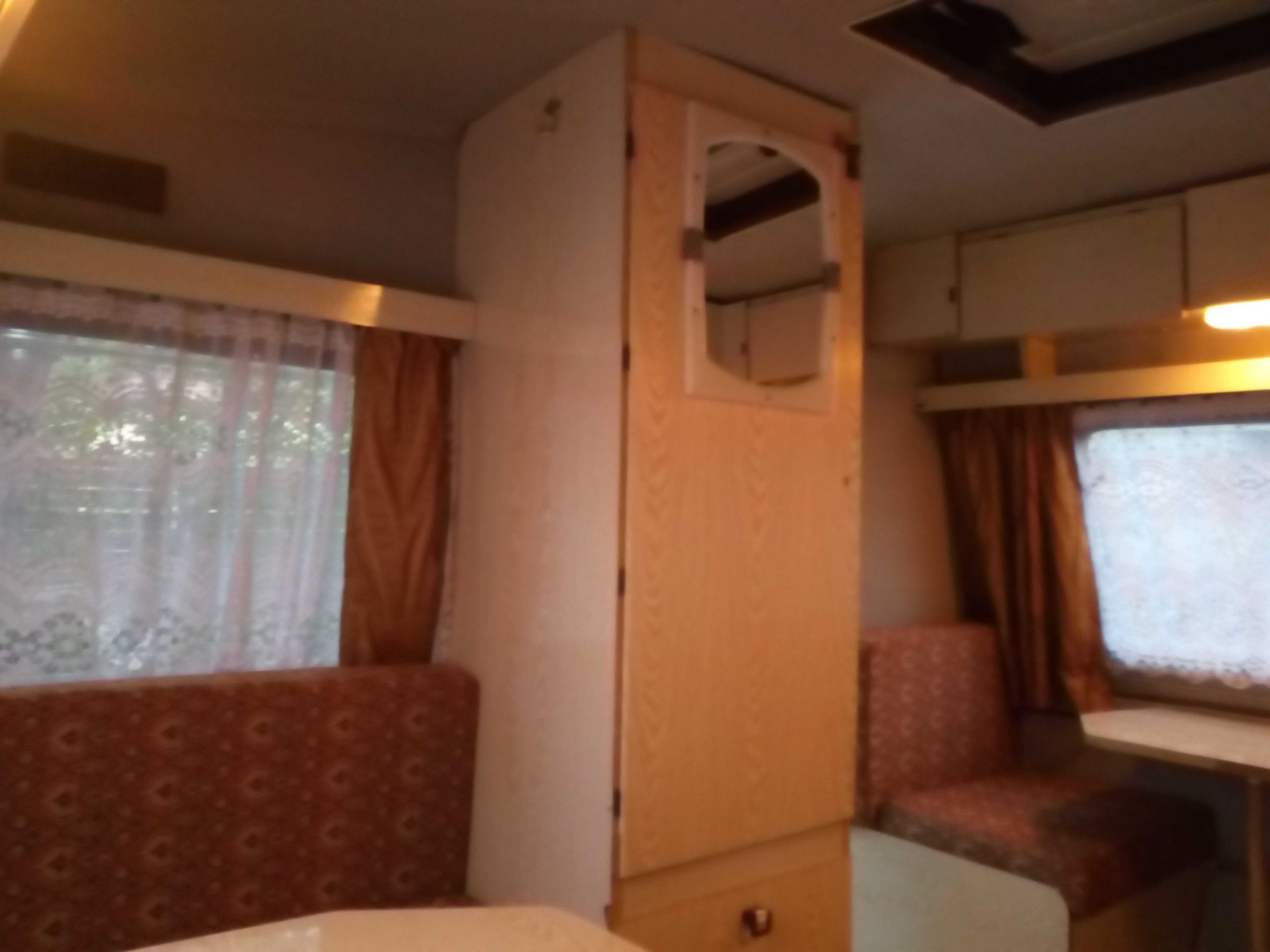 Fajna nie odklejająca tapicerka na gąbce meble szał pał lat 90tych nagi Leon po umyciu nawet jakoś wygląda materace ok zero grzyba czy wilgoci najazd działa laminat niby biały niby ok ,ale w czerwcu zobaczycie jak to ktoś zrobił, szyby całe zamki działają dupy nie urywa ale nie odpycha .Najlepsze jest to że daleko nie jechałem i przyzwoite pieniądze dałem.