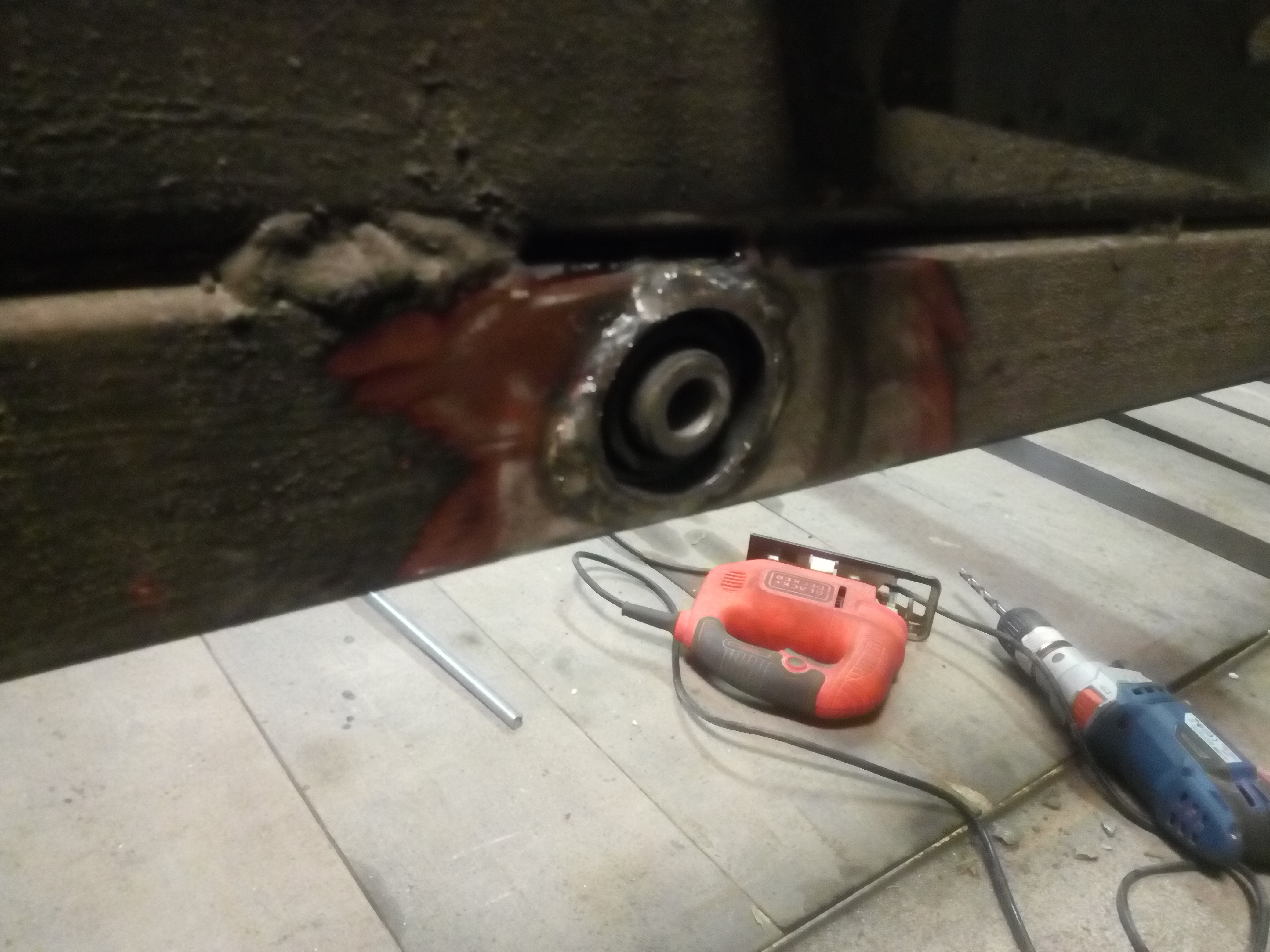 i kóło tak sobie tam fajtało i majtało po tej profesjonalnej regeneracji , a raczej degeneracji osi. Tak więc budkę zwaliłem używając narzędzi siły i sporo magicznych zaklęć... Och jak sobie przeponę te śrubę pod szafką kuchenną...tak mnie zezłościła że szafkę pobiłem. Dobrze że w drugą stronę jest łatwiej. Co ciekawe jak zdejmowałem skorupę z pierwszej zapieksy był śruby m10
