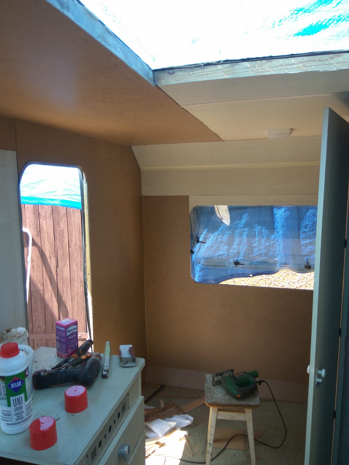 Po rozebraniu... takiee widoki i od razu atak by zdążyć na wyjazd sierpniowy na Węgry. Dokładne zwymiarowanie konstrukcji ścian, suche kantówki, kleje, wkręty, pokrywałem ściany płytą pilśniową. Podłoga na szczęście okazała się nie być zgnita.