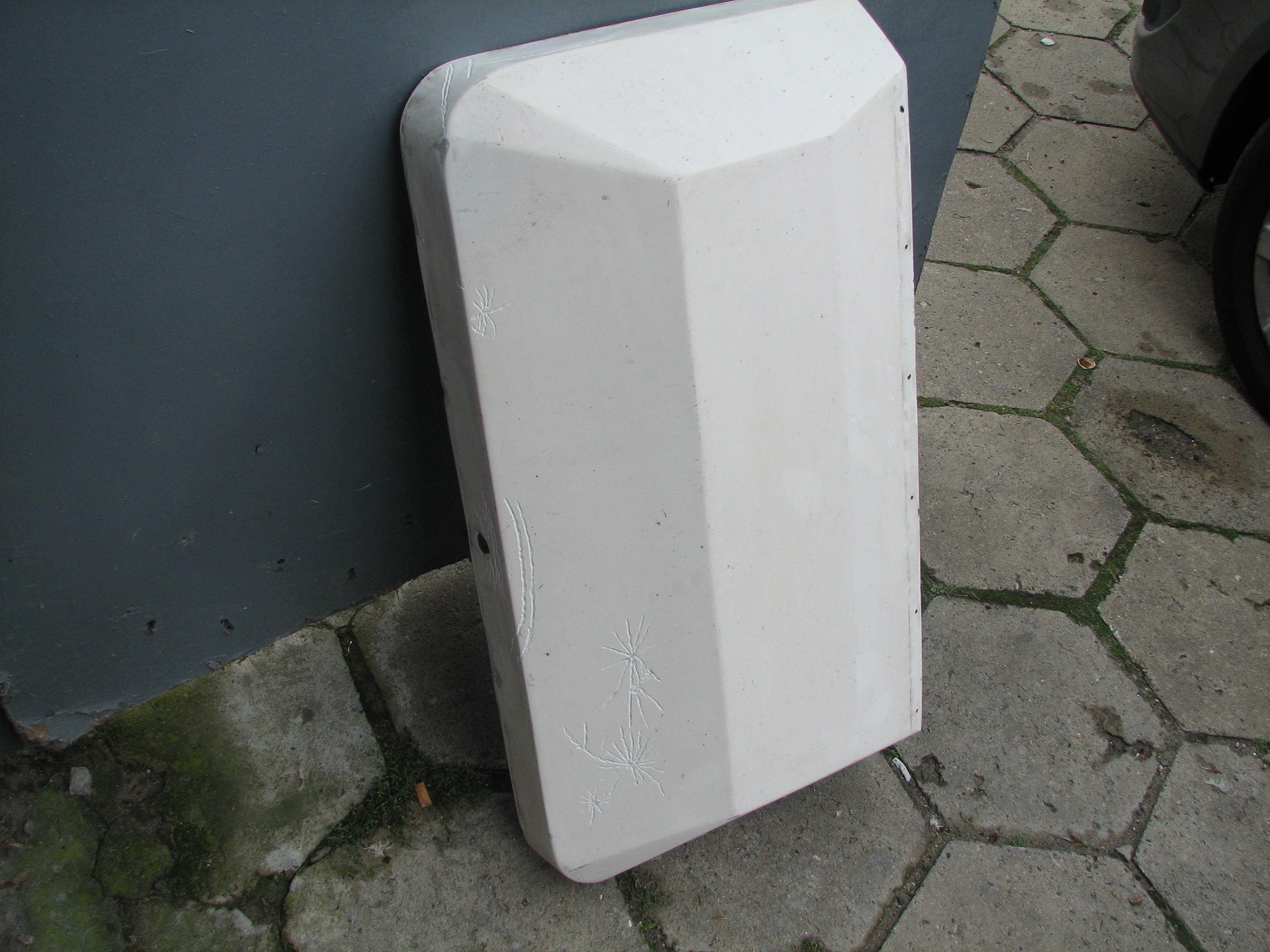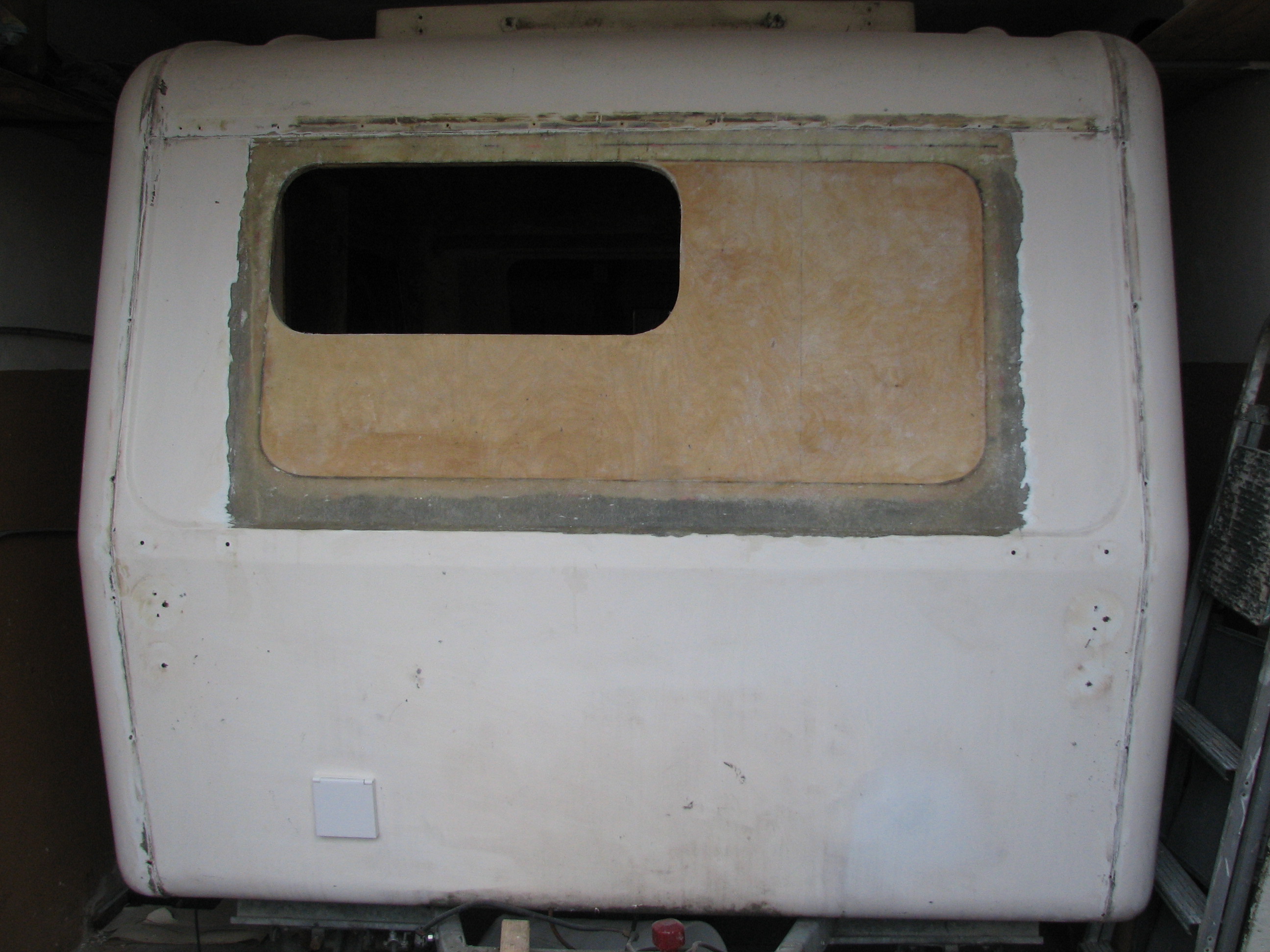 Prace remontowe trwają. Ze względu na sytuację rodzinną posuwają się wolno, ale idzie do przodu. Już zalaminowałem od wewnątrz otwory po lampach, odblaskach i śrubach mocujących listwy. Przygotowałem też do zalaminowania otwór po przednim oknie. Zdarłem szlifierką trochę żelkotu i jutro, być może, uda mi się położyć 2 warstwy tkaniny na przedniej ścianie. Wtedy będzie można przystąpić do szpachlowania skorupy. Postanowiłem dać tylko listwę z likszparą do przedsionka, a lewą zlikwidować, w związku z czym będzie nieco więcej pracy z wyrównaniem śladów łączenia elementów budy po lewej stronie. Mam nadzieję, że szpachlówka z domieszką włókna szklanego da temu radę.