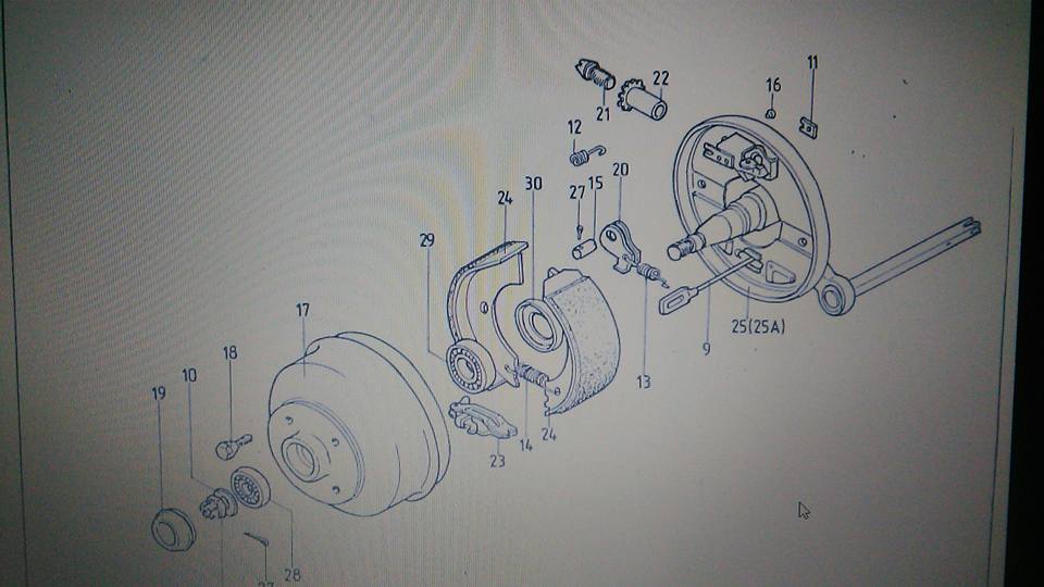 Jak widać na zdjęciu z jednej strony jest rozpierak mechaniczny a po przeciwnej cięgno linki hamulcowej. Podczas pracy hamulców w tym układzie hamulcowym( w hydraulicznym jest troszkę inaczej) szczęki nie przylegają idealnie do bębna podczas hamowania. Jedna strona szczęki bardziej druga mniej co za tym idzie zużywają się nierównomiernie(szczęki bardziej zużyte w kierunku jazdy mniej w kierunku cofania) gdy to zużycie jest trochę większe powstaje to zjawisko. Być może jeszcze ktoś na początku mocniej podciągną szczęki (podstawił) i powstało tak zwane zeszklenie górnej warstwy okładziny i szczęka podczas obracania nie trzyma (popuszcza).