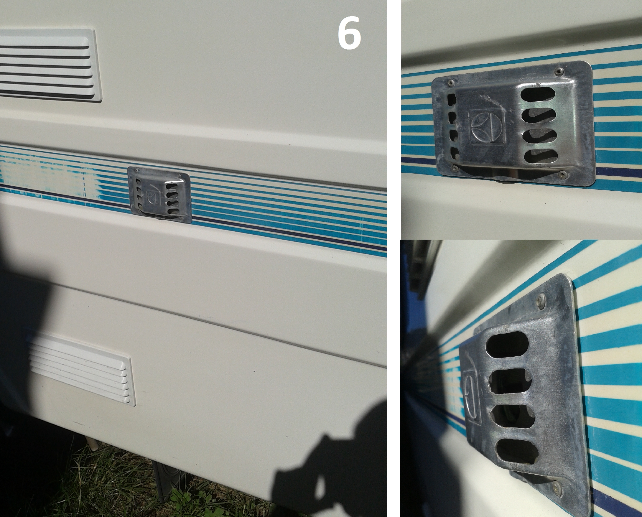 Nadeszła pora żeby zapiąć na ostatni guzik temat gazu w lodówce. Wszystko wygląda na sprawne natomiast została kwestia odprowadzenia spalin zgodnie z podstawową regułą Safety First! To moje pierwsze kroki z instalacjami gazowymi w lodówkach więc potrzebuje parę wskazówek. Lodówka to Electrolux RM 4200. Po pierwszym wyciągnięciu lodówki zastał mnie widok jak na zdjęciu 2. Na rurce wylotu spalin w kształcie litery T była zainstalowana przedłużka do kratki wylotowej kominka. Była ona najpierw połączona taśmą a następnie do kratki mocowana za pomocą jakiegoś połączenia. Połączenie to wygląda jak by było na stałe (3 i 5). A ja przy demontażu lodówki może wyrwałem przedłużkę z kratki. Wtedy wychodziło by, że przy każdym demontażu lodówki należało by odkleić taśmę, wysunąć element kominka w kształcie T wraz z lodówka a przy montażu odwrotnie. Proszę o wskazówki jak to prawidłowo poskładać. Zastanawia mnie też jak głęboko powinna wchodzić przedłużka kominka w kratkę wylotową spalin. Z góry dzięki za pomoc. Pozdrawiam