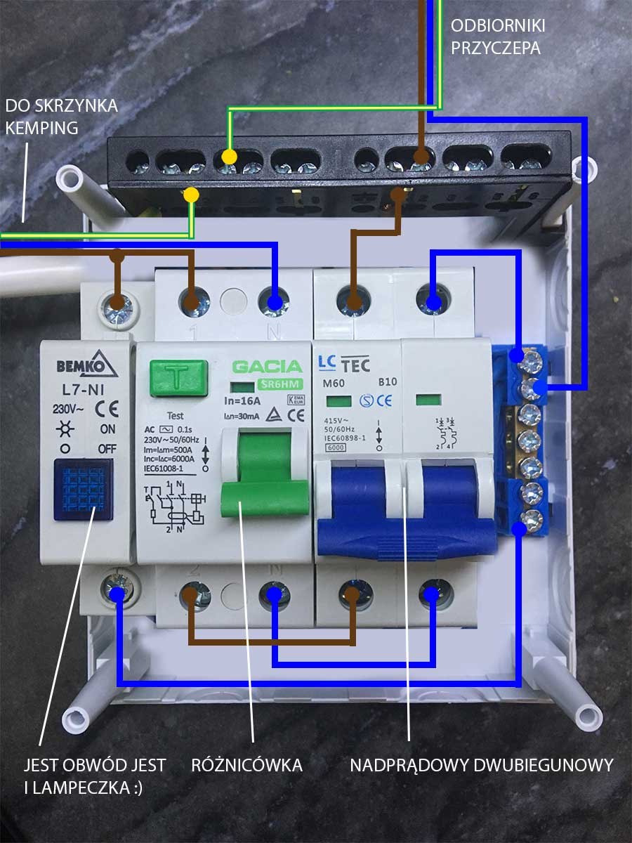 Witam szanowne grono, robię przyczepę i mam dylemat z instalacją el. tzn w ogóle się na tym nie znam, prąd to dla mnie jakies gusła ale chcę wiedziec co zakupic, czyli jest gniazdo zewnętrzne i co dalej, jaki przewód, jakie zabezpieczenie? czytałem coś o wyłączniku typu S dwupolowym sprzężonym 10A, czy mógłby ktoś podlinkować coś przykładowego? please, będę bardzo wdzięczny.