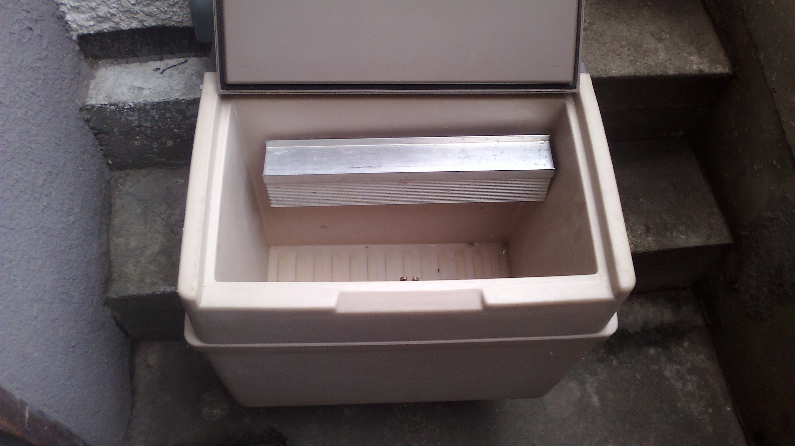 My umieścamy lodówkę w namiocie lub w samochodzie, ale zostawiamy trohy odkryte okno w samochodzie bo zdecydowanie śmierdzi spalinami.