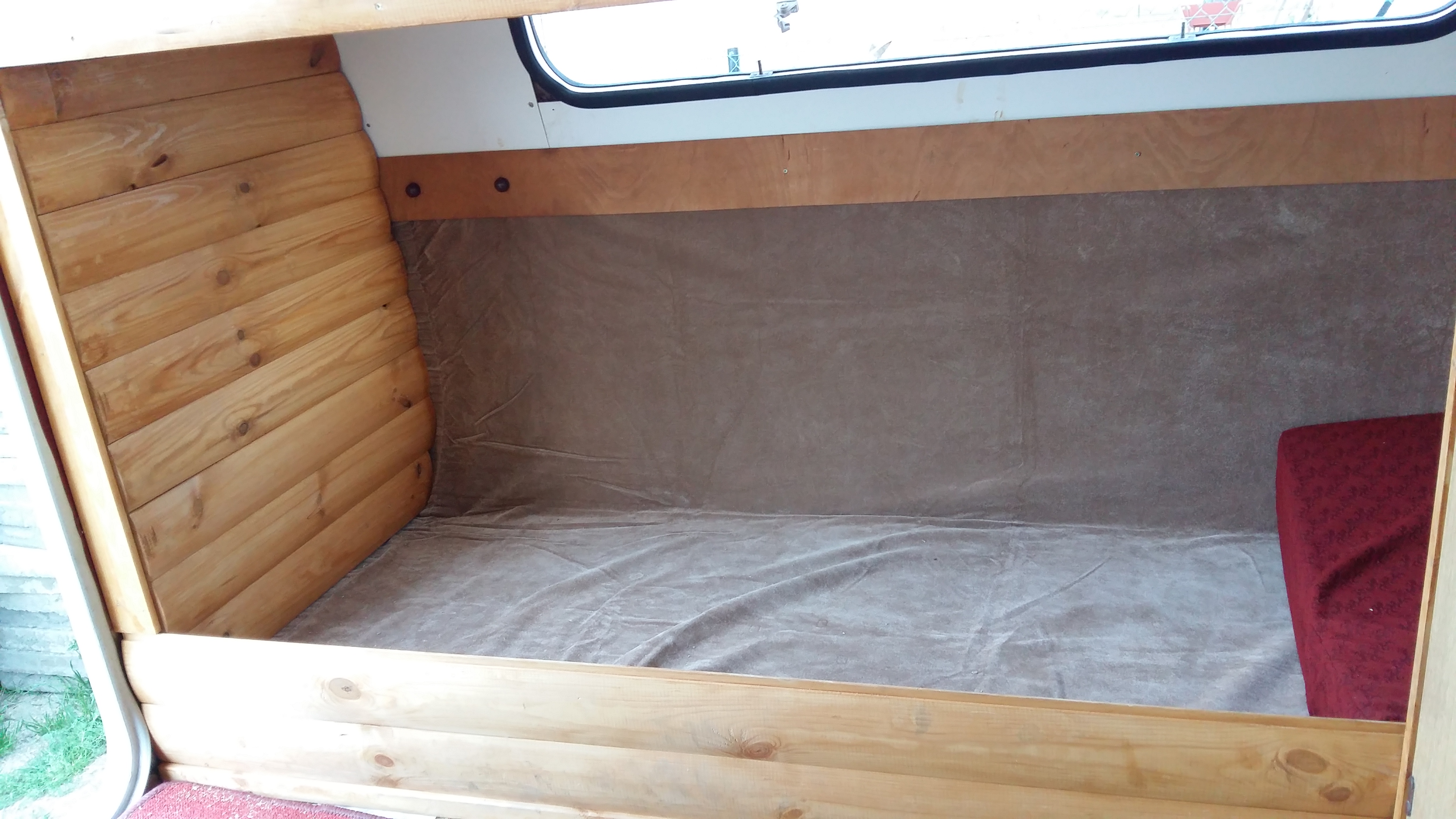 komora w dolnym łóżku z płyty wirowej 18 mm. wysokość dolnego łóżka około 25 cm. (przyczepa stoi poza miejscem zamieszkania to i problem z wymiarami)