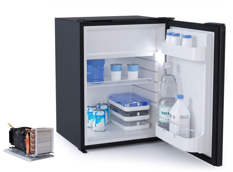 Na zdjęciu tzw. lodówka jachtowa włoskiej marki Vitrifrigo 75 litrów pojemności, na którą zdecydowałem się ze względu na zewnętrzny agregat i bardzo ustawne wnętrze.