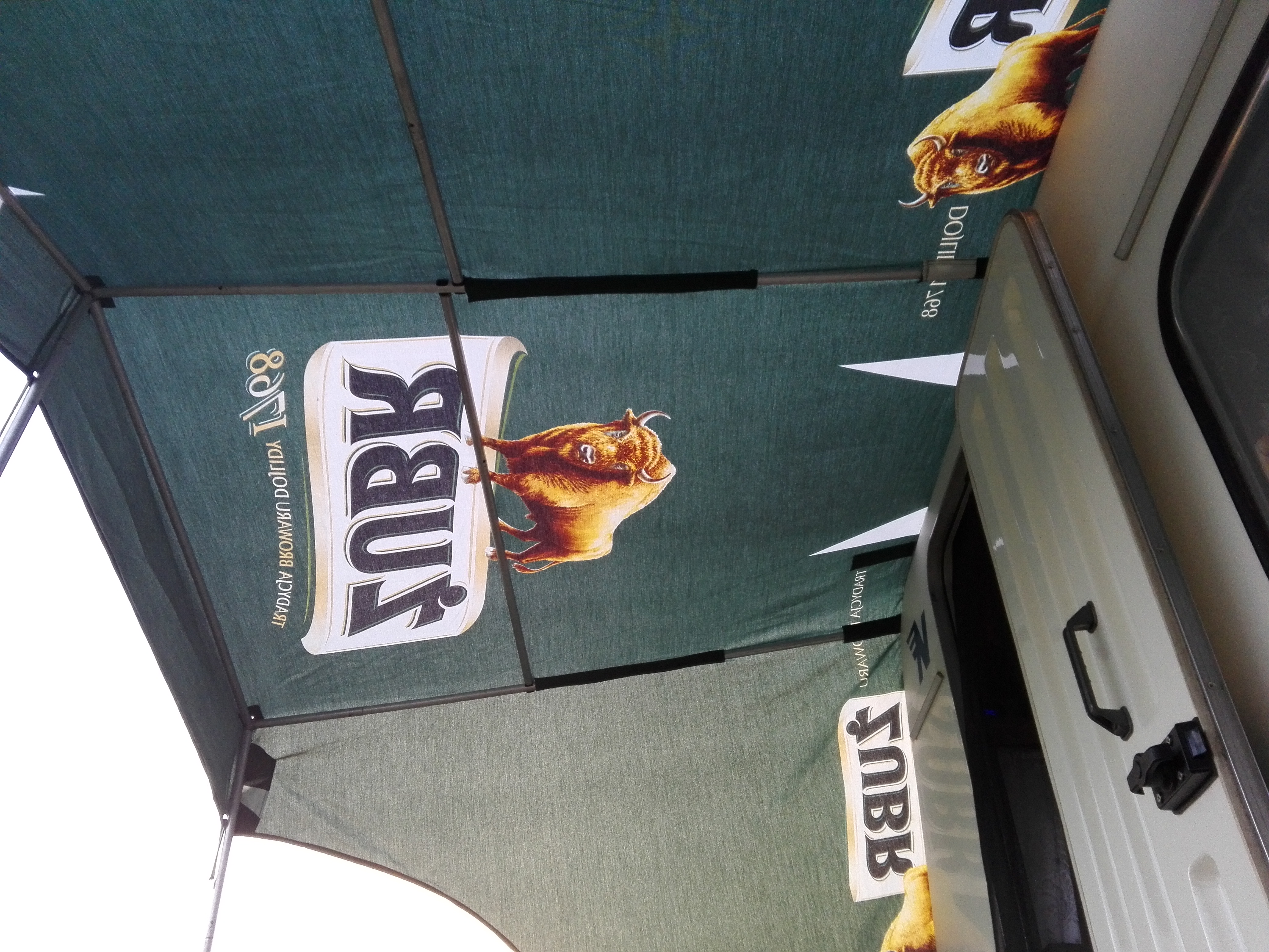 Kupiłem tam materiał taki sam jak na parasole w ogródkach piwnych.