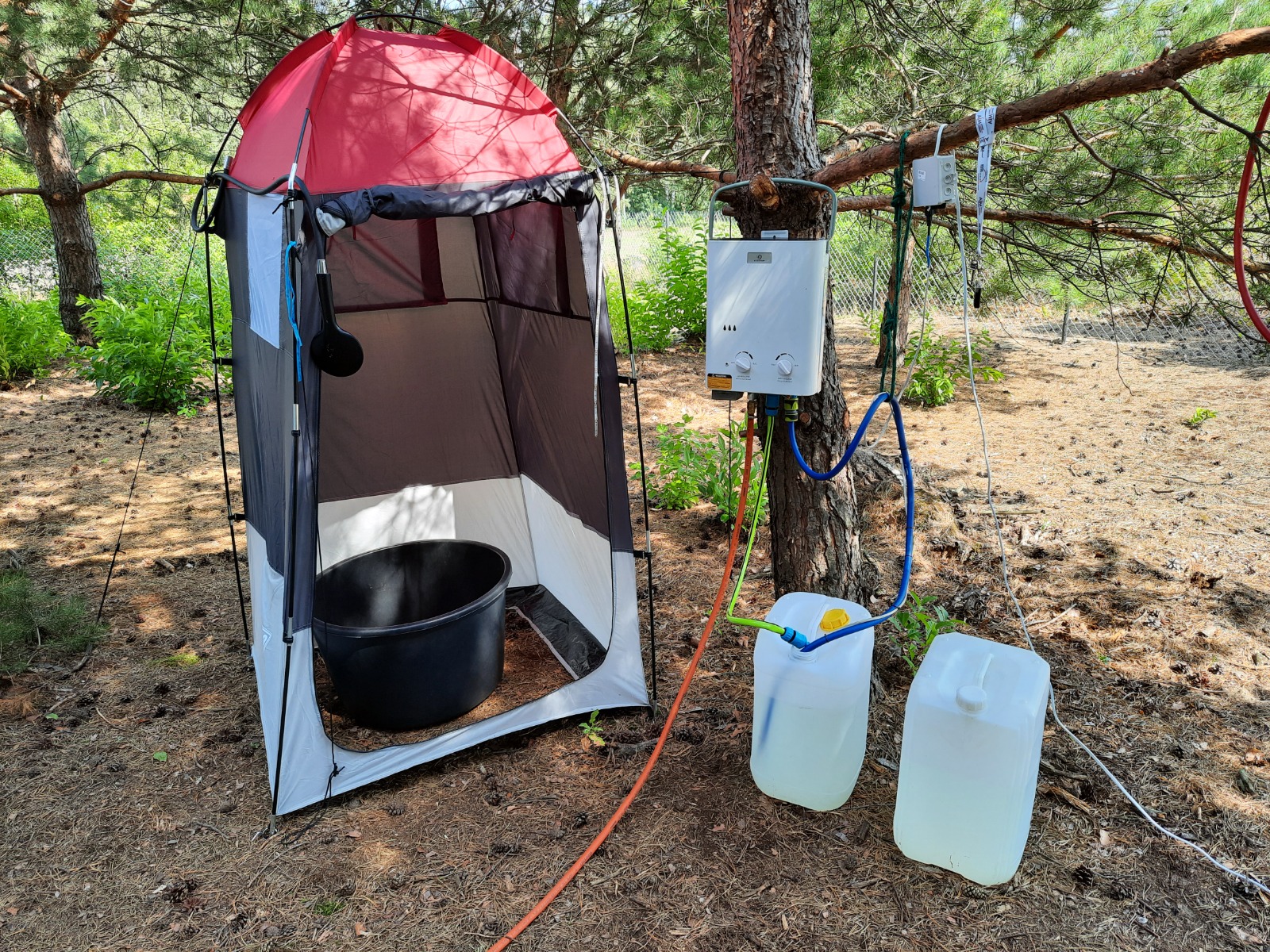 U nas Decathlon l i nie zamieniłbym na inny, bo jest bardzo wygodny i trwały i zajmuje niewiele miejsca. Jeśli myślisz nad jakimś innym rozwiązaniem to polecam parasol wędkarski, można tam urządzić całą łazienkę, a nie na zamianę kibel lub prysznic, szybko się rozkłada, jest wygodny i przestronny. Jest to jakaś opcja, kolega używał i był zadowolony.