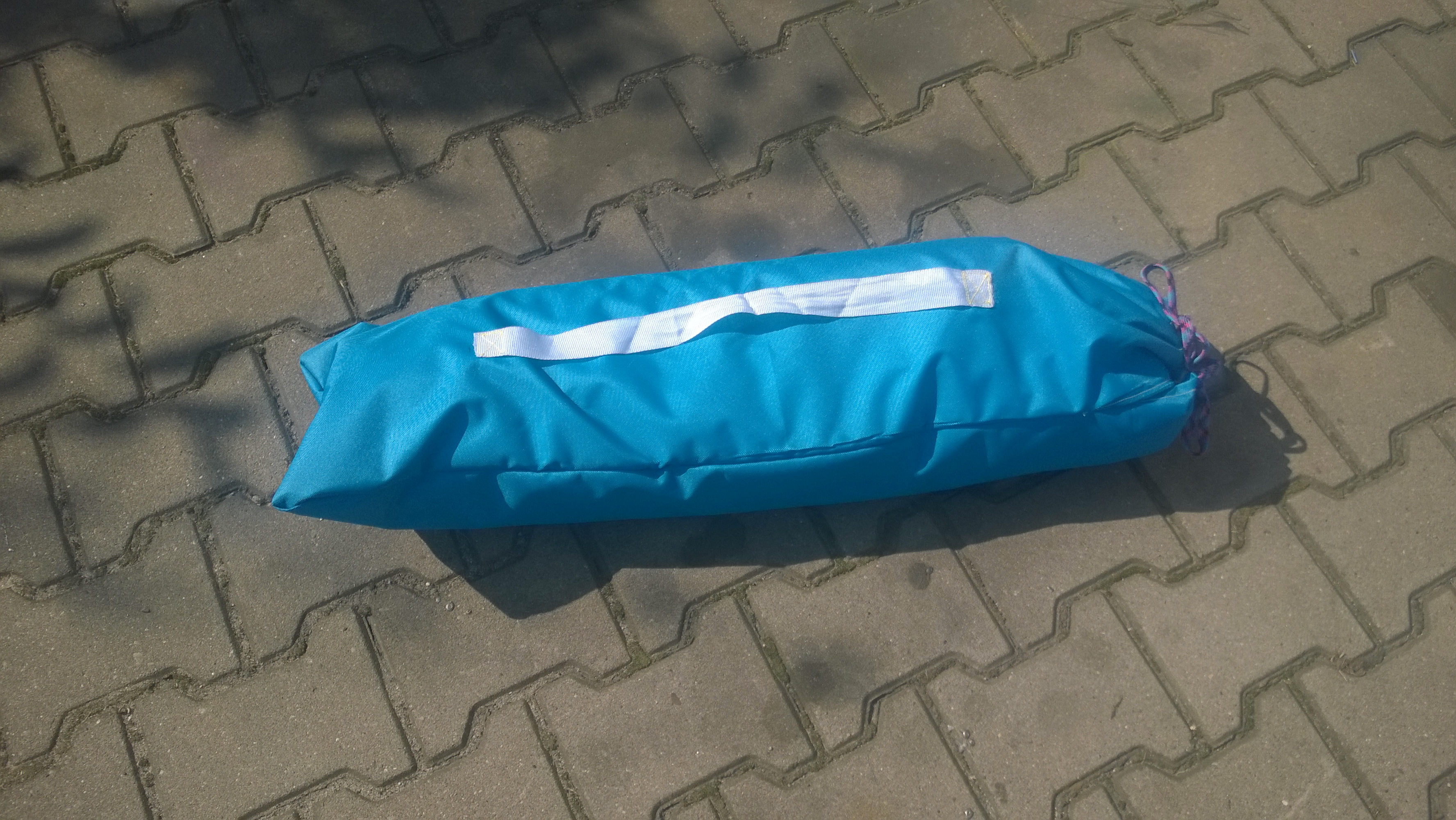 Teraz kwestia kosztów. Materiał - 130 pln, nici i nity/oczka - 30, maszty - 70, linka namiotowa 15, kedra 40, 2x0,5 żołądkowej klasycznej (rudej) - 50pln. Noc spędzona przy maszynie - bezcenna