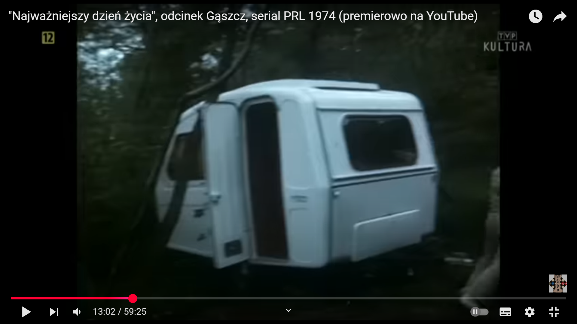 Super znalezisko, z wielką ciekawością prześledziłem wszystkie sceny, zwłaszcza tą nagraną wewnątrz przyczepy. Wszystko jak w mojej przyczepce, brakuje mi jedynie siatkowych półek nad oknami.