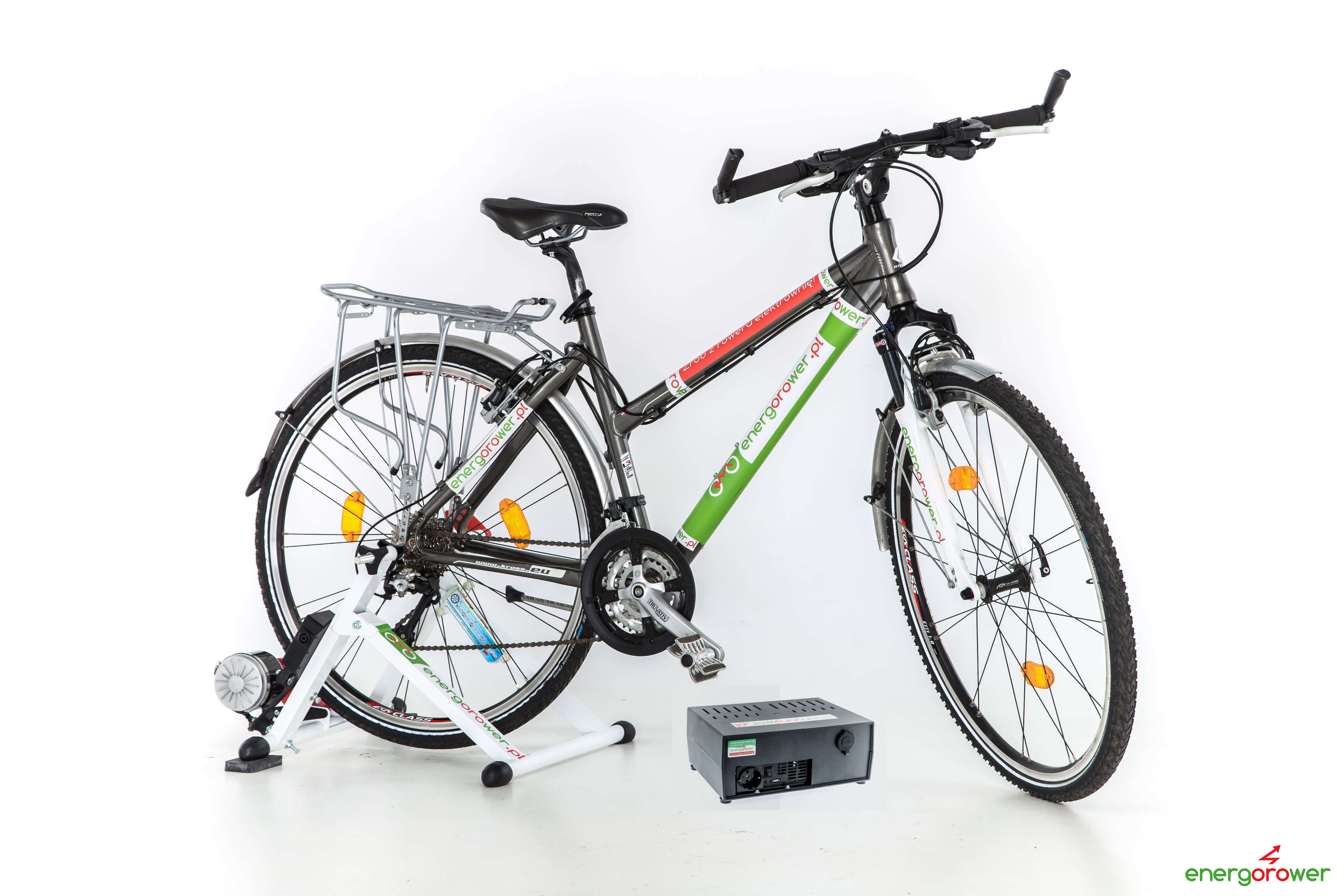 Stacja przetwarzania napięcia Eco-Power to produkt, który umożliwia zasilanie urządzeń na 230V AC – prąd zmienny, taki jak w zwykłym domowym gniazdku, 12 V DC – prąd stały, taki jak w gniazdku zapalniczki samochodowej oraz 5V USB. Dzięki temu zestawowi będą Państwo w stanie zasilić bezpośrednio z EnergoRoweru dowolne urządzenie elektryczne, pod warunkiem, iż pobór mocy nie przekracza możliwości wytworzenia jej przez EnergoRower (zapraszamy do zakładki Informacje Techniczne gdzie znajdą Państwo szczegółowe informacje na ten temat). Stacja przetwarzania napięcia jest niezbędna do bezpiecznego zasilania różnorakiego sprzętu elektrycznego gdyż stabilizuje napięcie wytwarzanie za pomocą EnergoRoweru – bez niego podłączone urządzenia mogłyby ulec przepaleniu ze względu na zbyt wysokie napięcie. Informacja, iż będą Państwo w stanie zasilić urządzenie elektryczne bezpośrednio z EnergoRoweru oznacza, iż energia wytwarzana podczas pedałowania zużywana jest na bieżąco i nie jest nigdzie magazynowana. Urządzenie działa tylko wówczas, gdy ktoś pedałuje. "