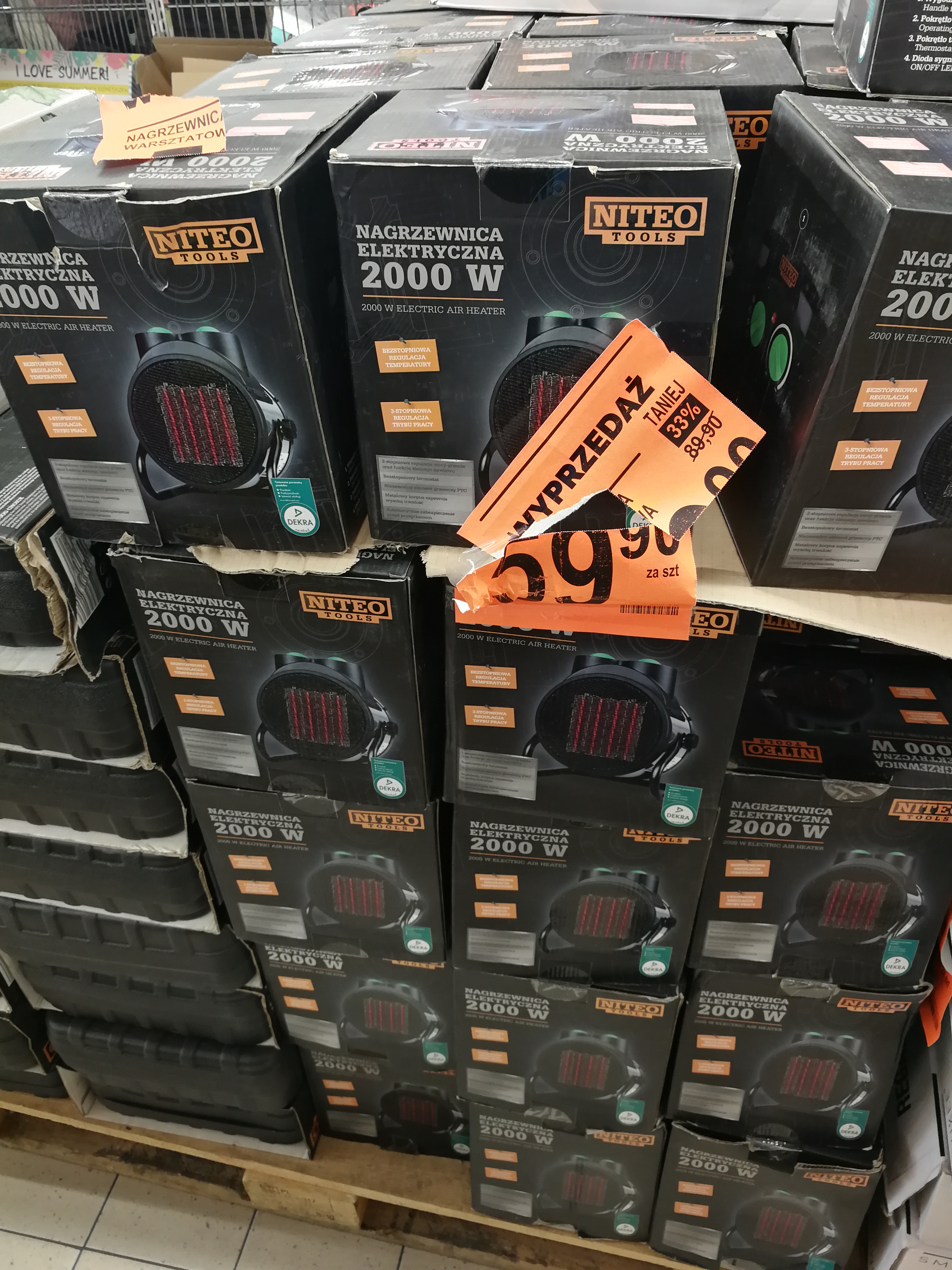Dziś w Biedronce zakupiłem w promocji za 59zł (było 89zl) Nagrzewnice 2000W z funkcją wentylatora. Fajna sprawa do naszych przyczep - wydaje się bardzo solidna i do tego małe rozmiary. Po uruchomieniu trzeba przyznać, że grzeje bardzo mocno. Co do chłodzenia wentylatorem to jest mało wydajna. Może się komuś przyda ;)