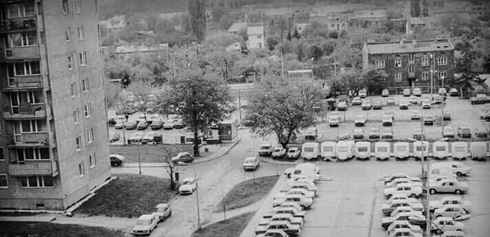 Parking na blokowisku... Są rodzime auta i cały rząd niewiadówek :)
