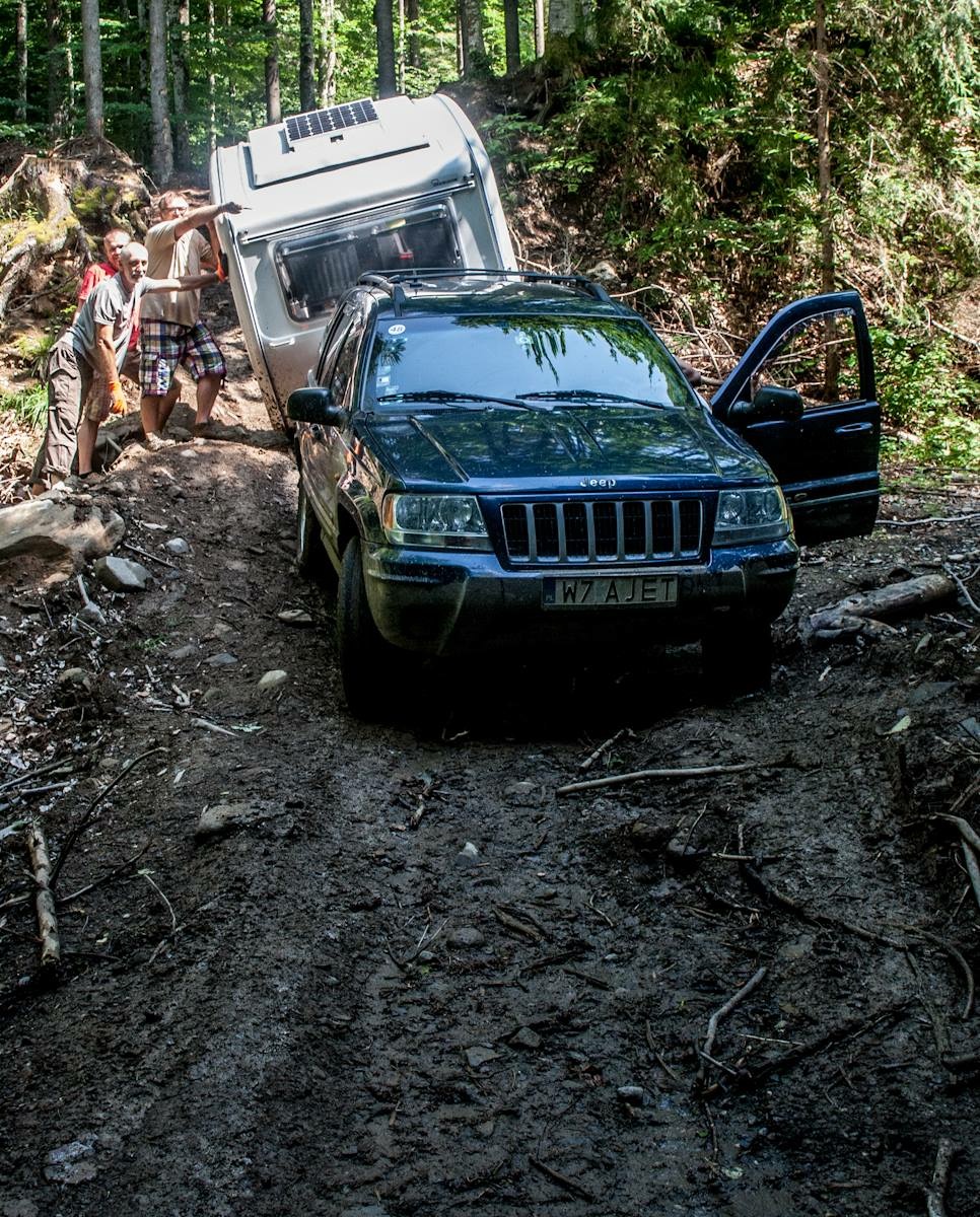 Budzi respekt! Tam gdzie zjeżdżaliście z góry w stronę Sapanty jechaliśmy w tym roku w górę. Tak się zastanawiałem co by trzeba było zrobić gdybym był z przyczepą... Piękna sprawa. Na górze spaliśmy przy strumyku dokładnie tam skąd jechaliście