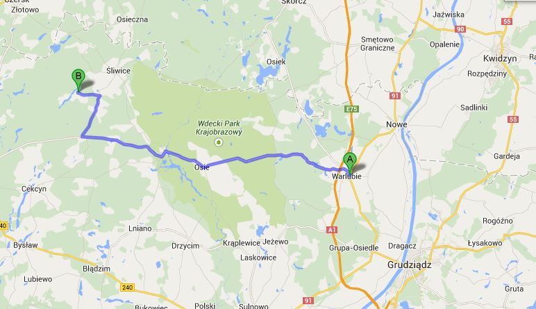 Chyba dużo ludzi się w ośrodku na drogę skarży, bo właściciel pierwsze o co pytał to o drogę. Za jego wskazówką wracałem już przez Tleń i Osie, a na na DK91 wróciłem w Warlubiu. Różnica była zdecydowana. Spory odcinek po remoncie a pozostałe odcinki przyzwoicie znośne.