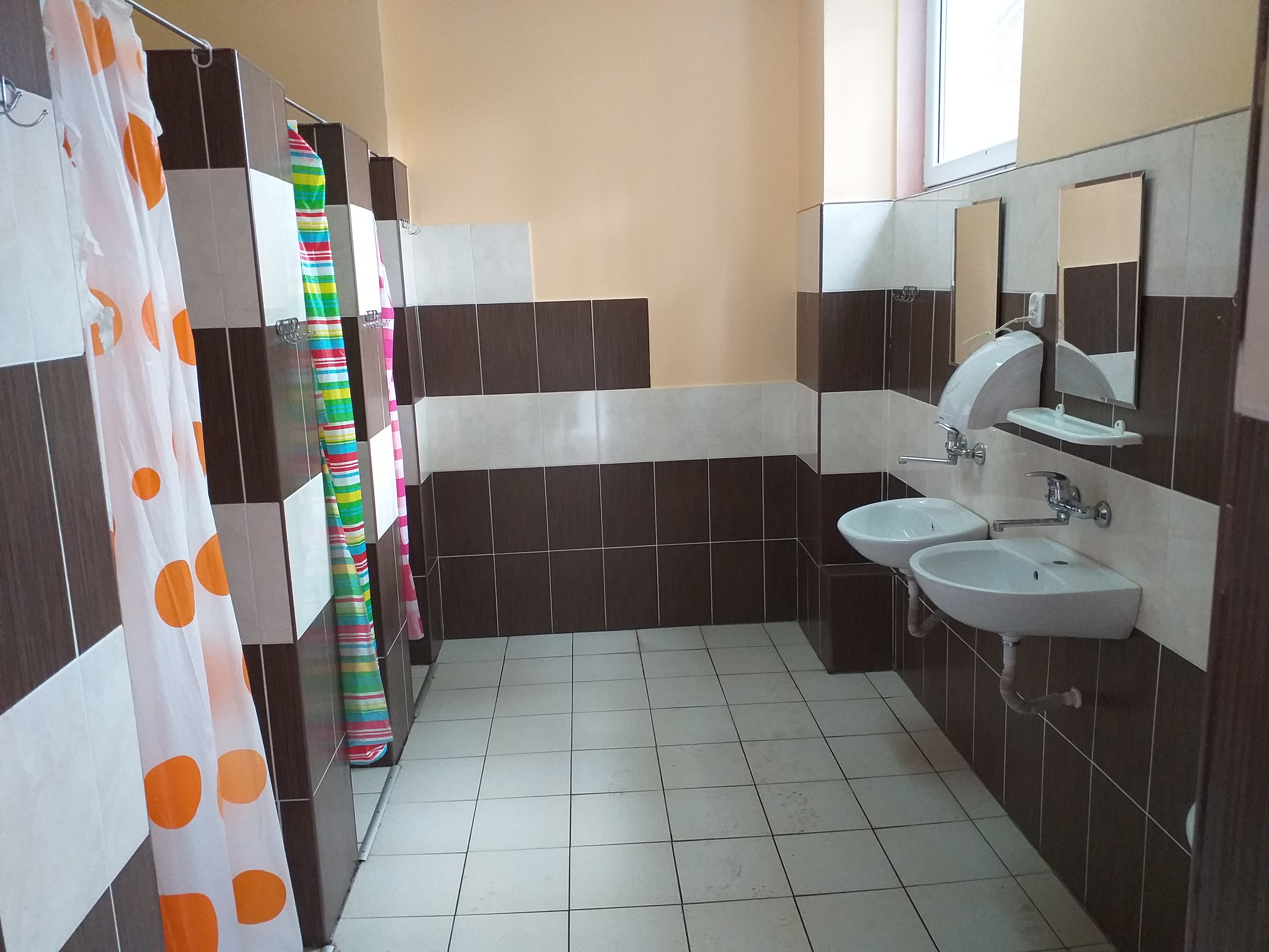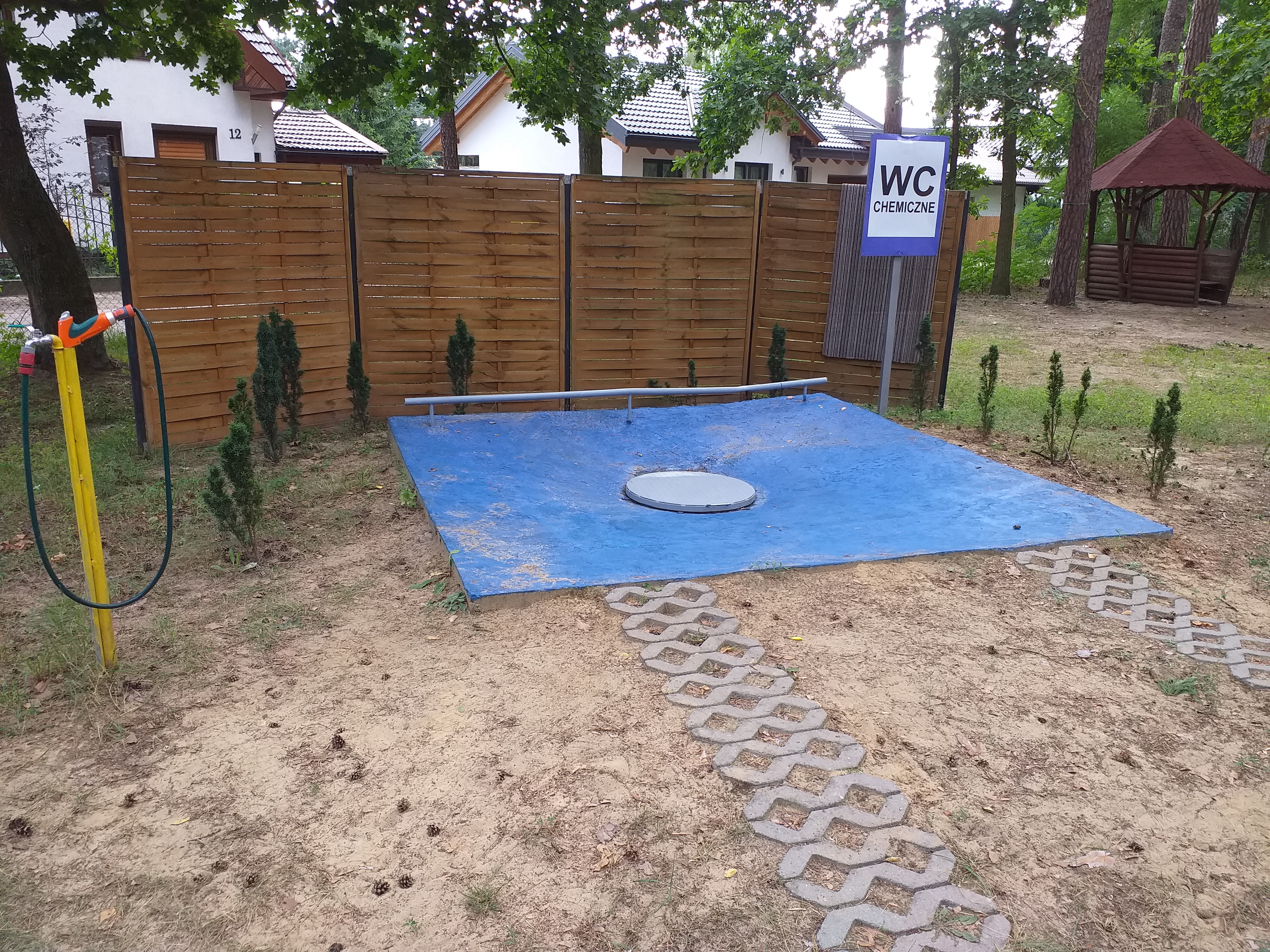 Sanitariaty przestronne, przysznice także. Czysto.Do dyspozycji gości bezpłatnie 3 lodówki, pralka, cały czas ciepła woda, czajnik i bezpłatny wstęp na miejską plażę bez ograniczeń. Stoły do pingponga. Zewnętrzne miejsce do zmywania naczyń z ciepłą wodą. Zrzut WC dla kamperów. Teren oświetlony ,mocno zadrzewiony , wiele przyłączy prądu. Mobilne ławki i stoliki - można sobie przytargać przed budkę.