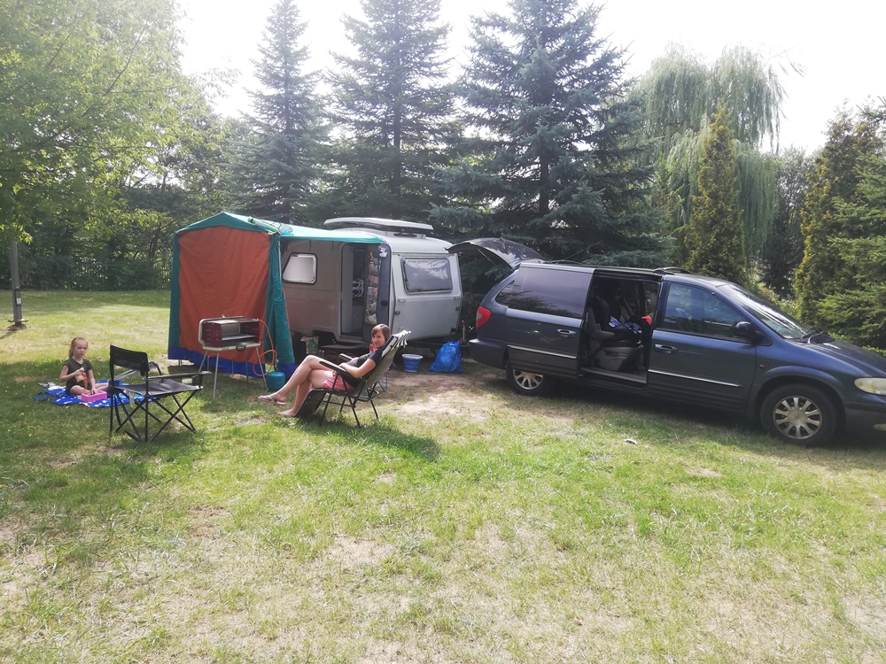 Na terenie znajduje się 10 domków piętrowych typu "Brda" zawierających aneks kuchenny, lodówkę, kuchnię gazową, natrysk, ciepłą wodę. Do dyspozycji jest również pole namiotowe i campingowe z przyłączami prądu i ujęciem wody. Do dyspozycji biwakowiczów są łazienki z dwoma prysznicami (cały dzień ciepła woda za free). Sanitariaty oceniłbym na 4-, jest czysto ale to kontener, który już wymaga delikatnego odświeżenia. Według zapewnień Pani Danusi opiekującej się ośrodkiem właściciele mają na przyszły sezon pomyśleć o podniesieniu standardu.