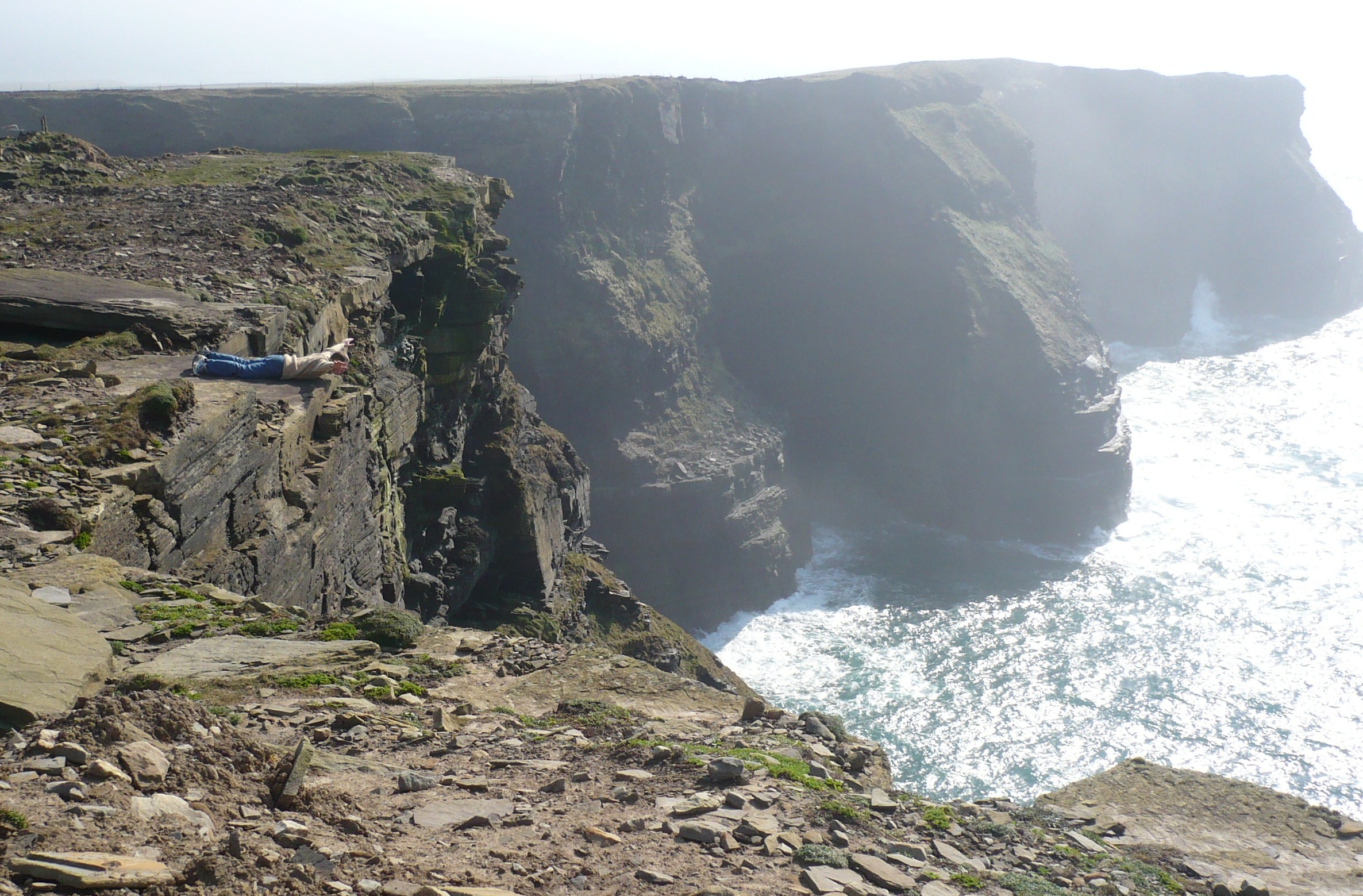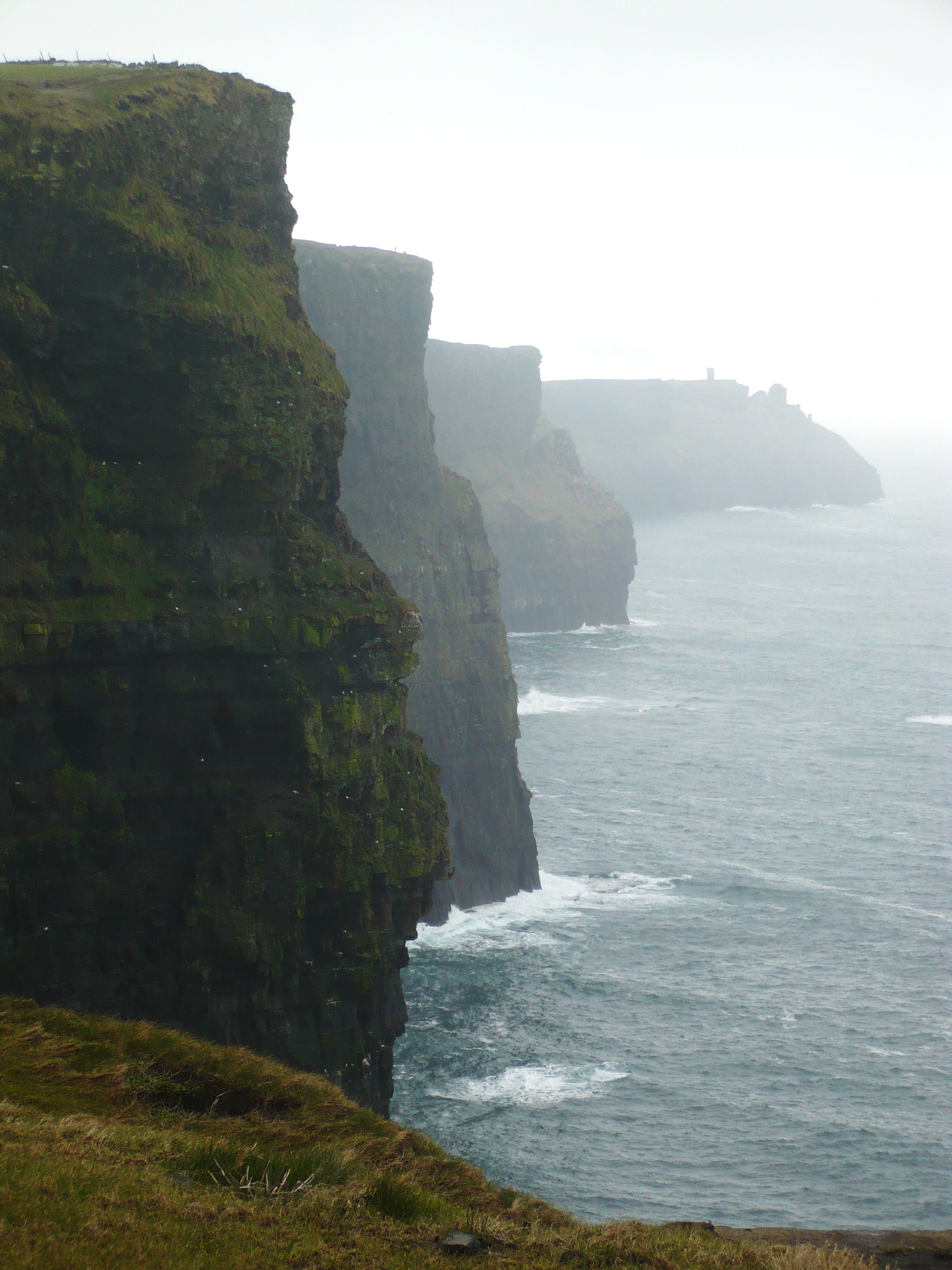 Pamiętam że w połowie drogi zaczęły zbierać się chmury i zaczęliśmy wątpić w sens dalszej podróży. Na miejscu okazało się że jednak klify widać chociaż w oddali już nadciągały chmury.Szybka runda do centrum turystycznego, później na deptak,zdjęcia ,trochę filmu i postanowiliśmy pojechać kawałek dalej by zaparkować wóz i przez pole pieszo dostać się bezpośrednio nad urwisko.
